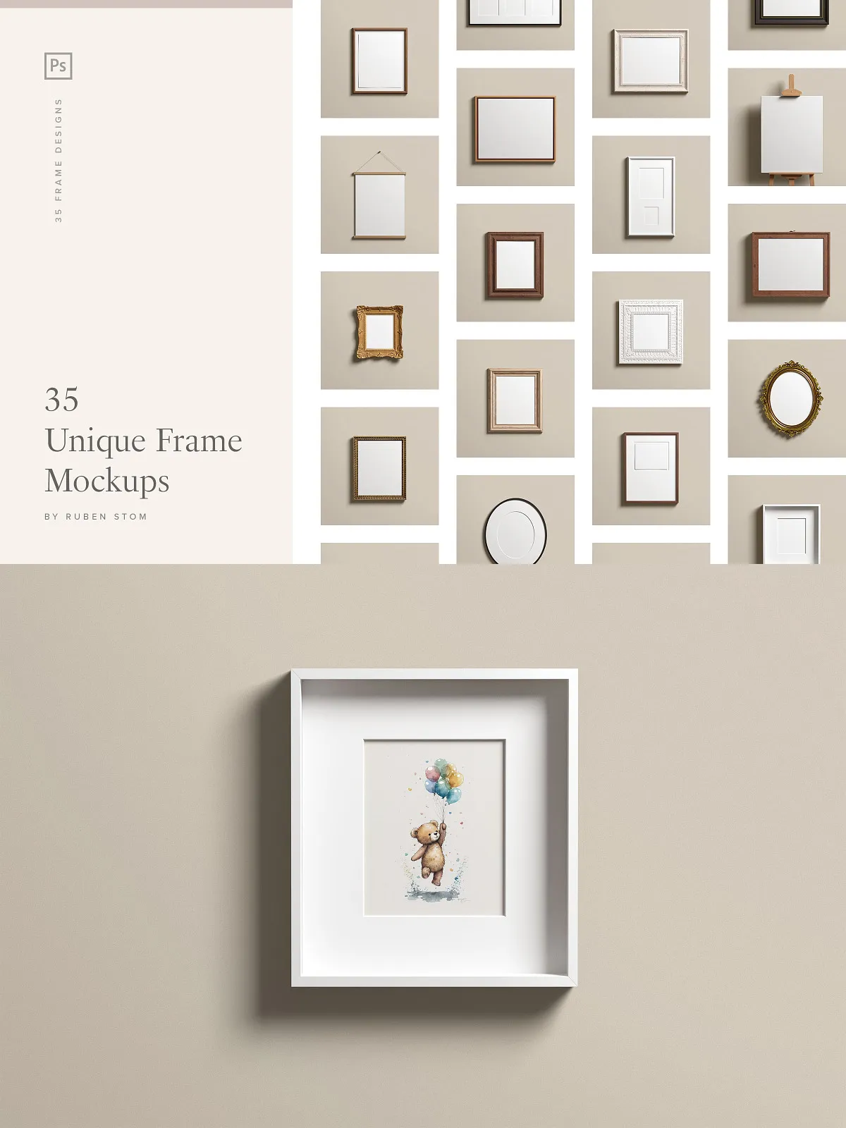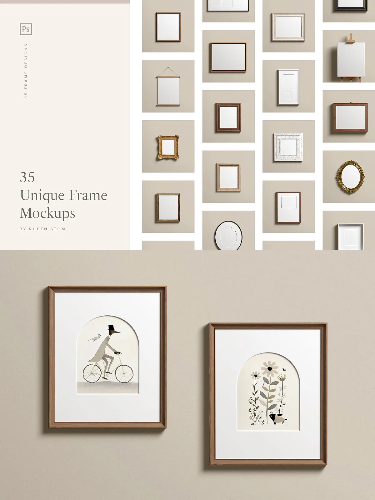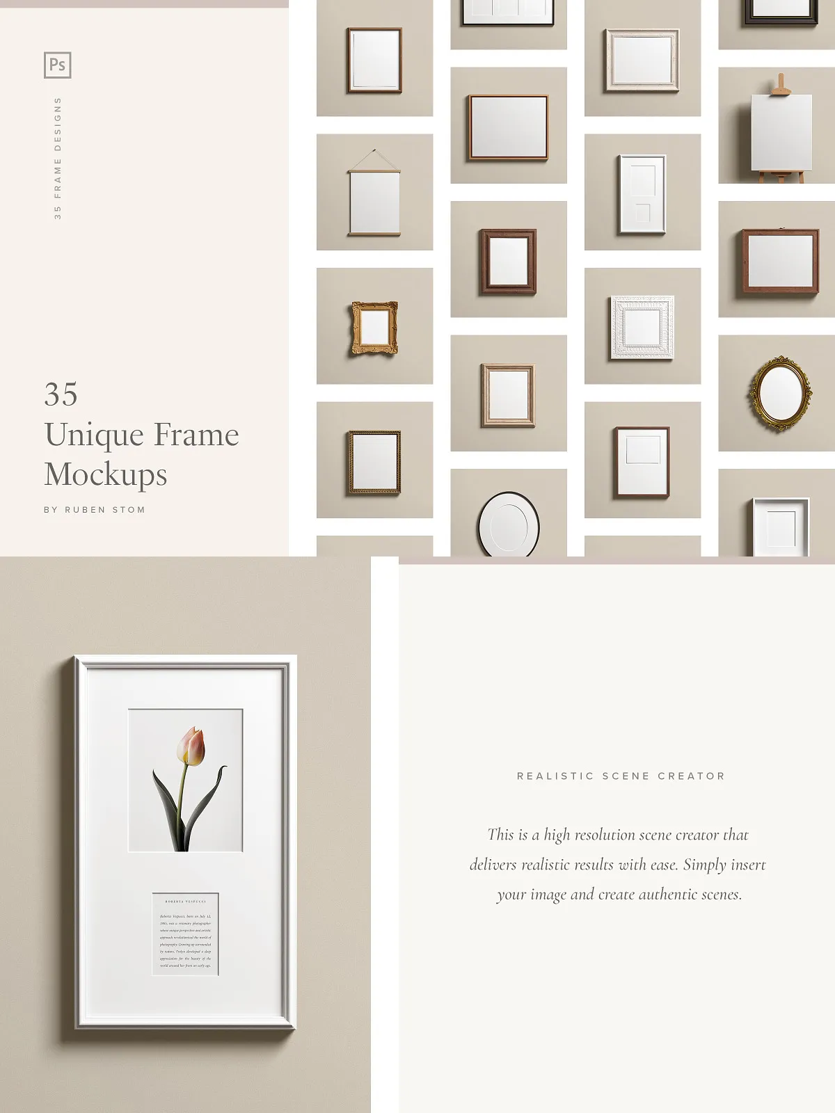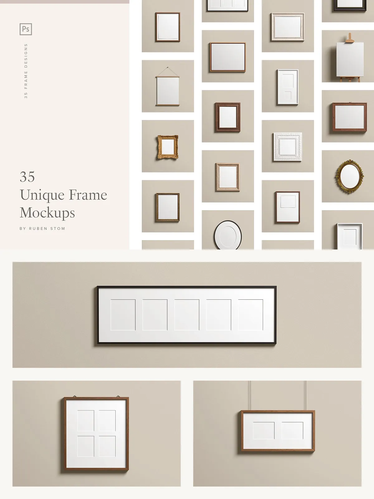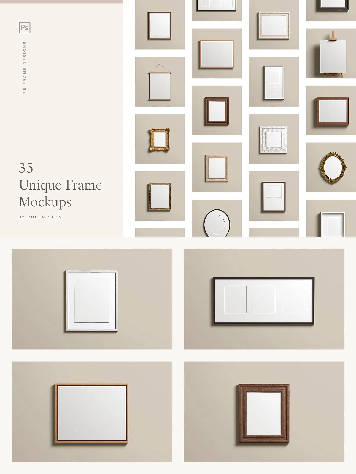 • 35 Unique Frame Mockups: 7 horizontal (5×4, 7×5), 27 vertical (4×5, 5×7), 1 square (1×1) – all high resolution