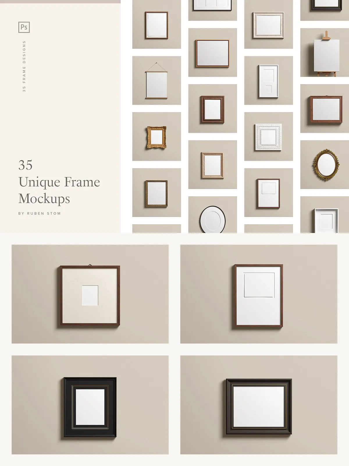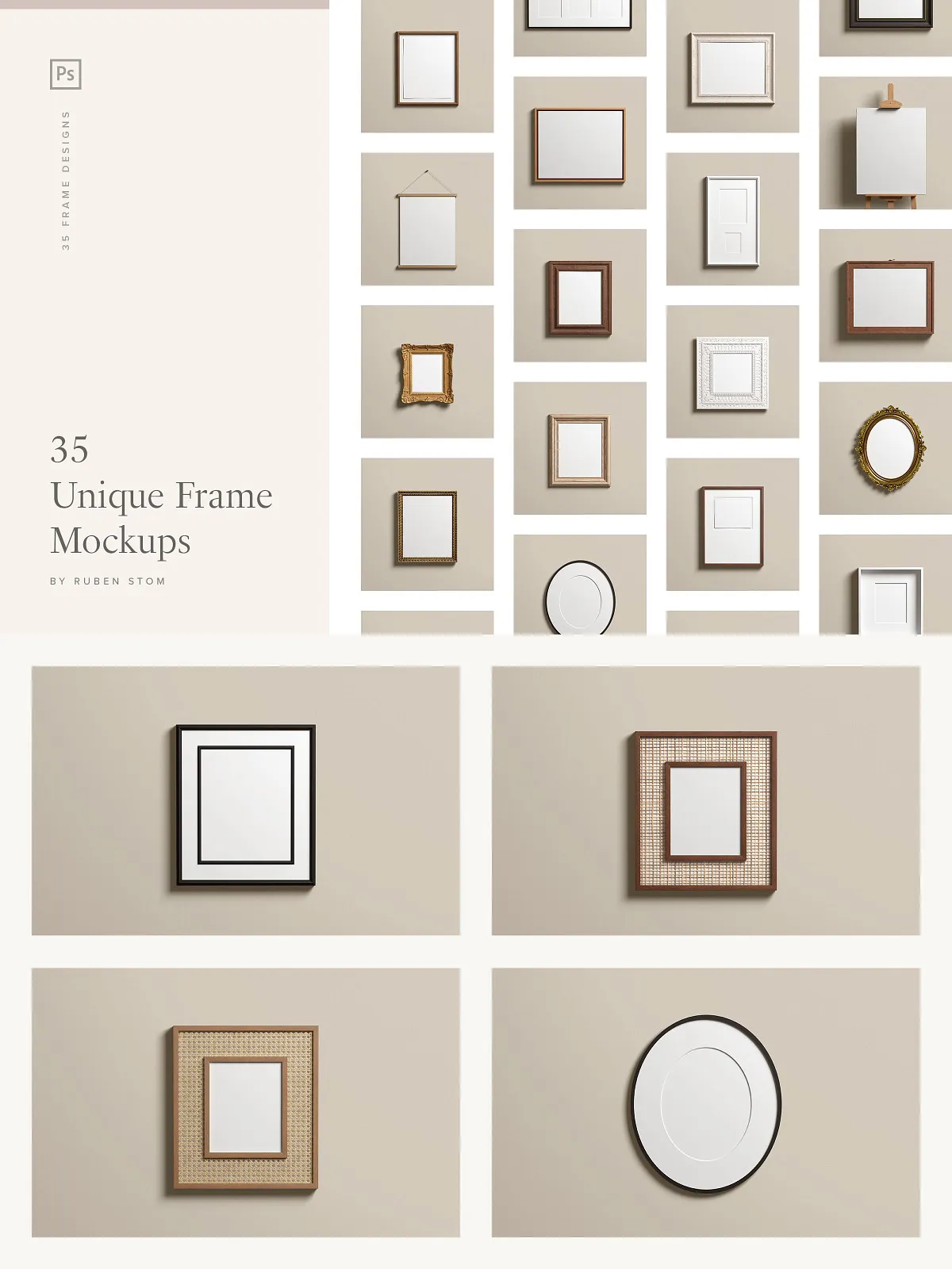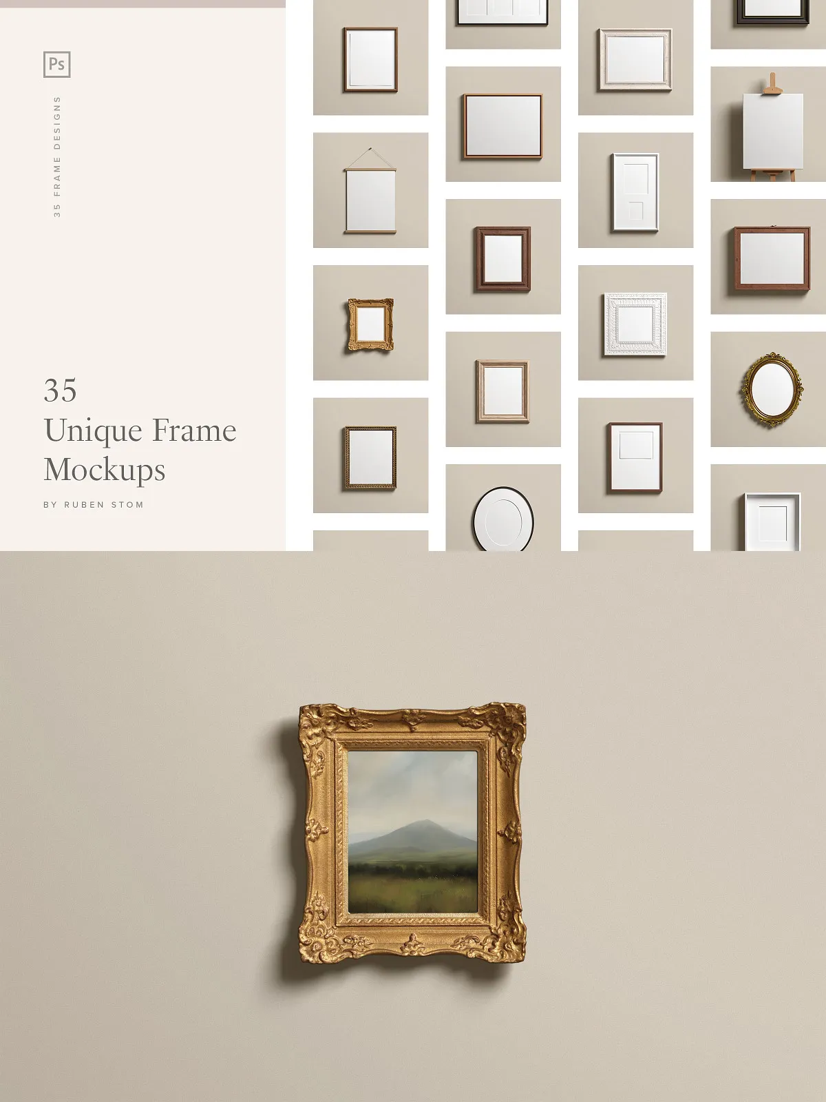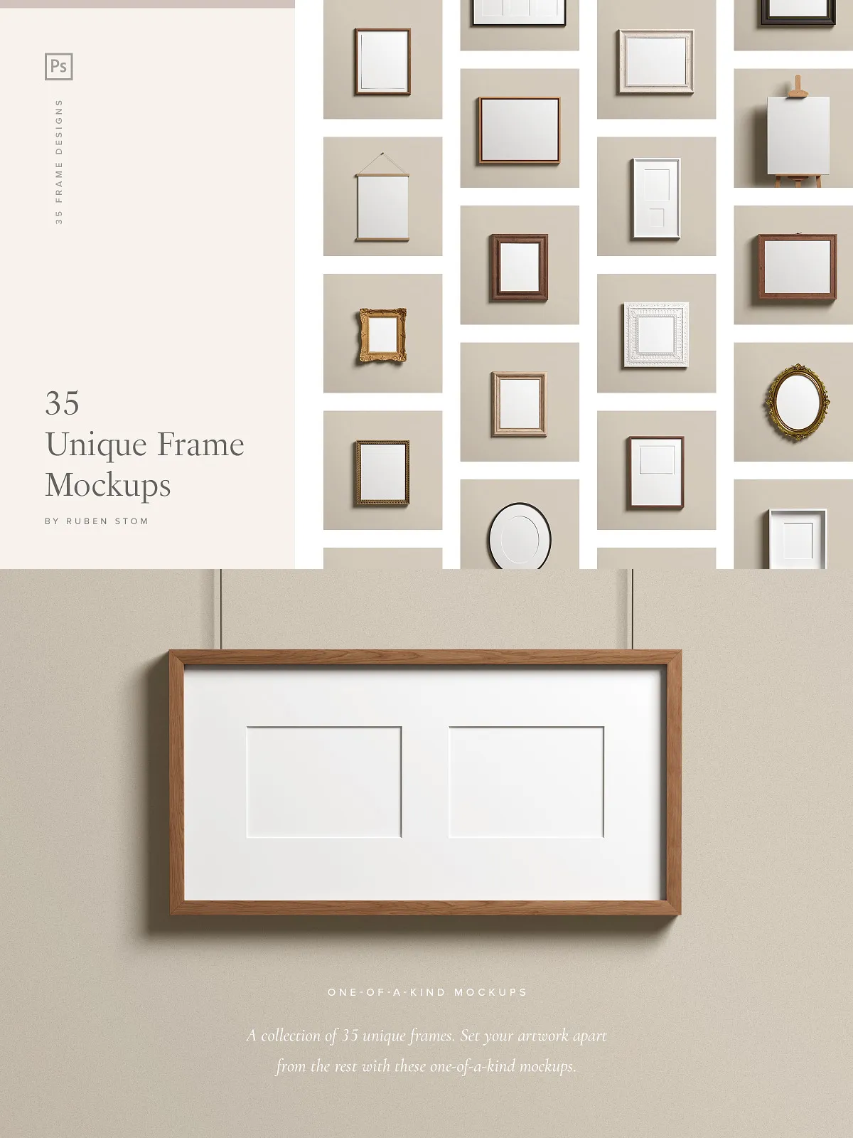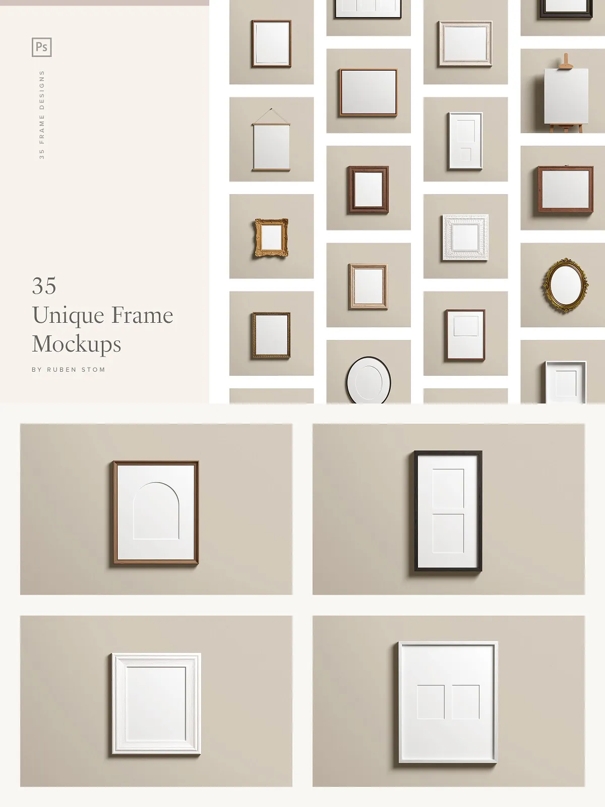 • 35 Unique Frame Mockups: 7 horizontal (5×4, 7×5), 27 vertical (4×5, 5×7), 1 square (1×1) – all high resolution