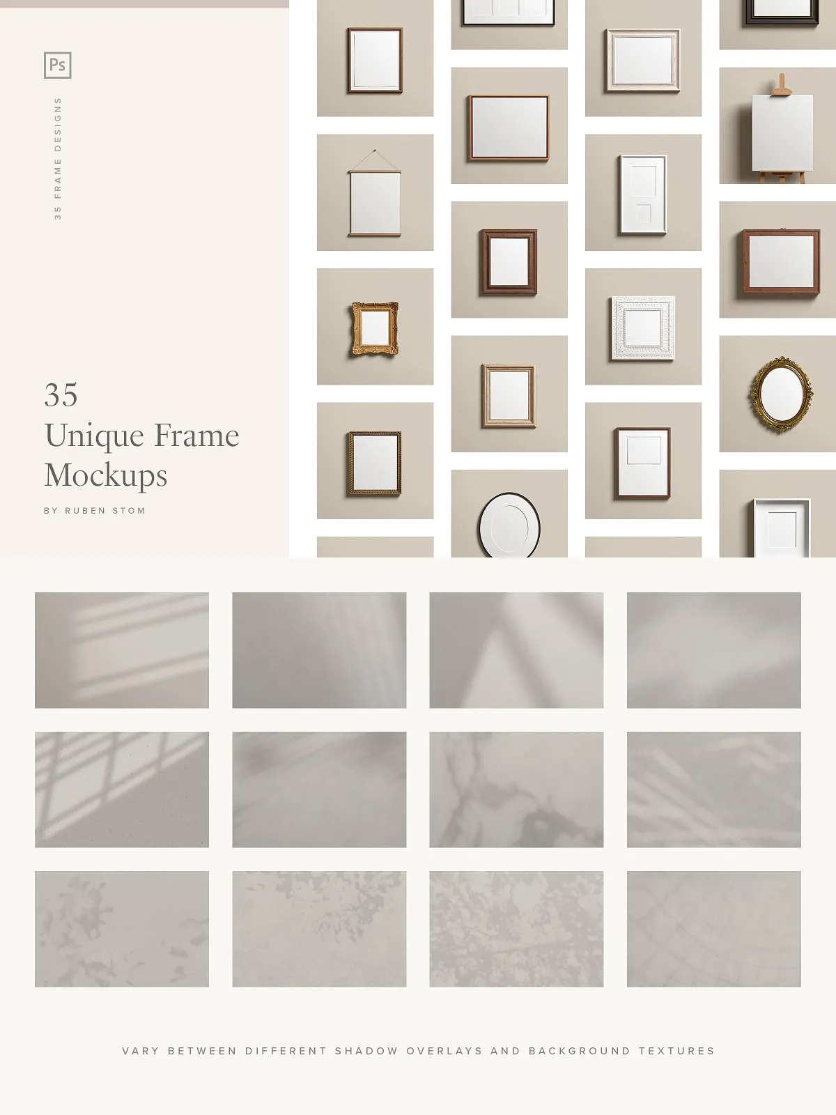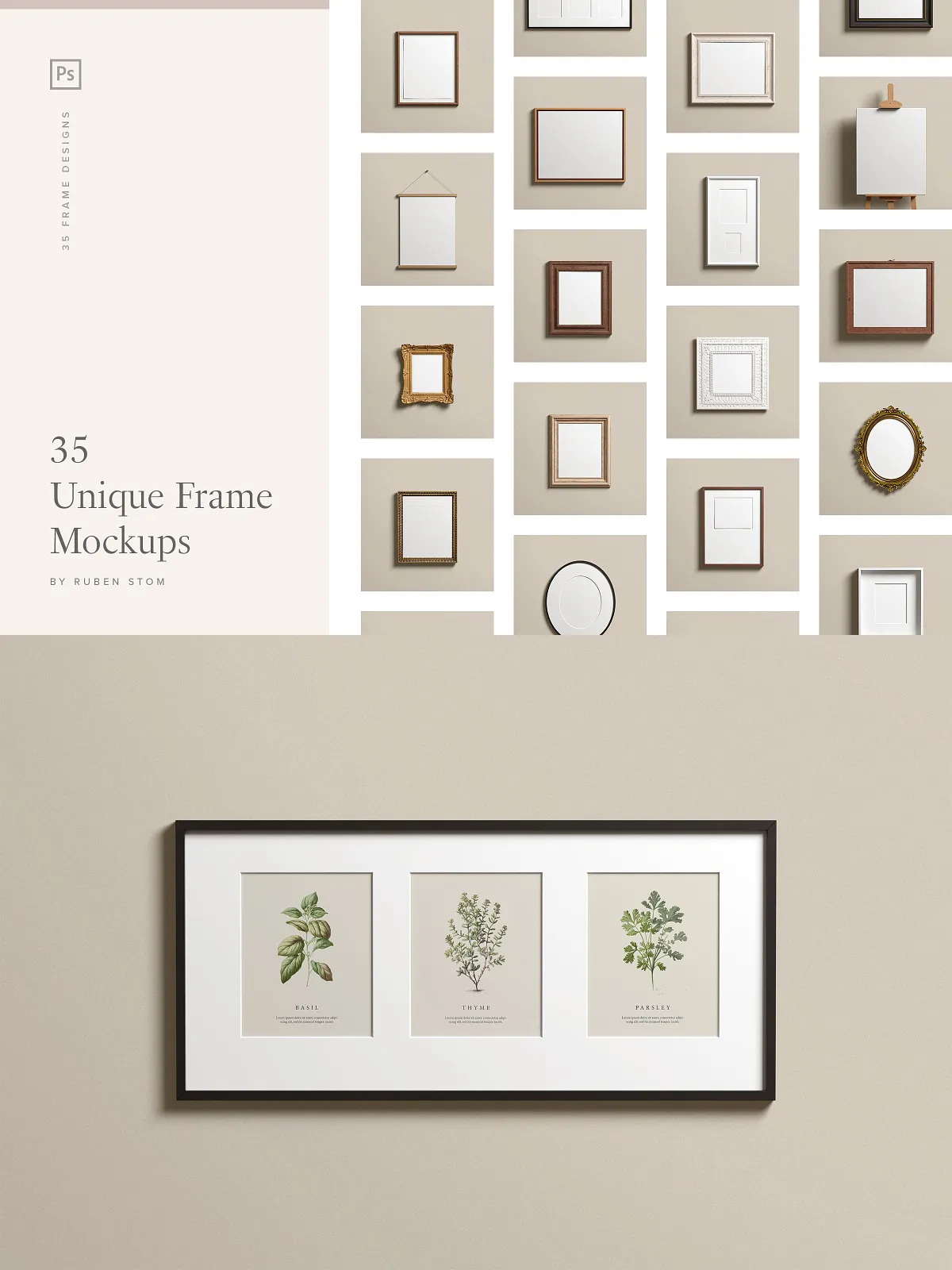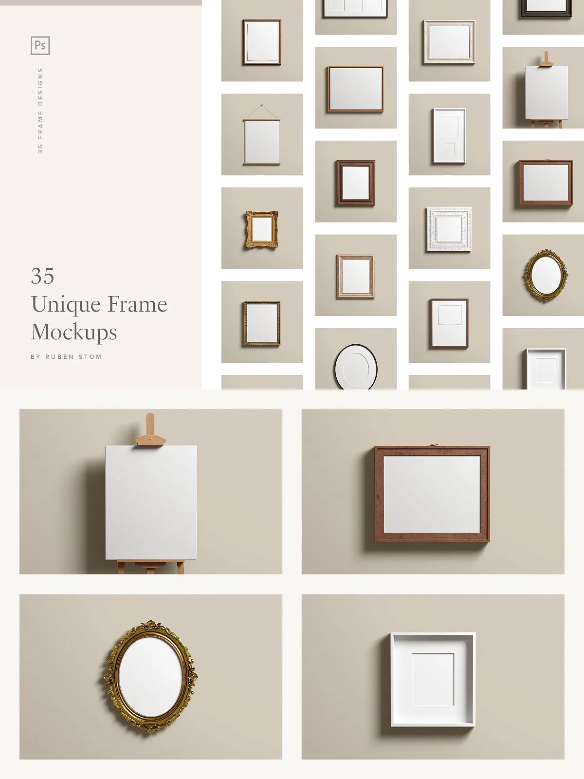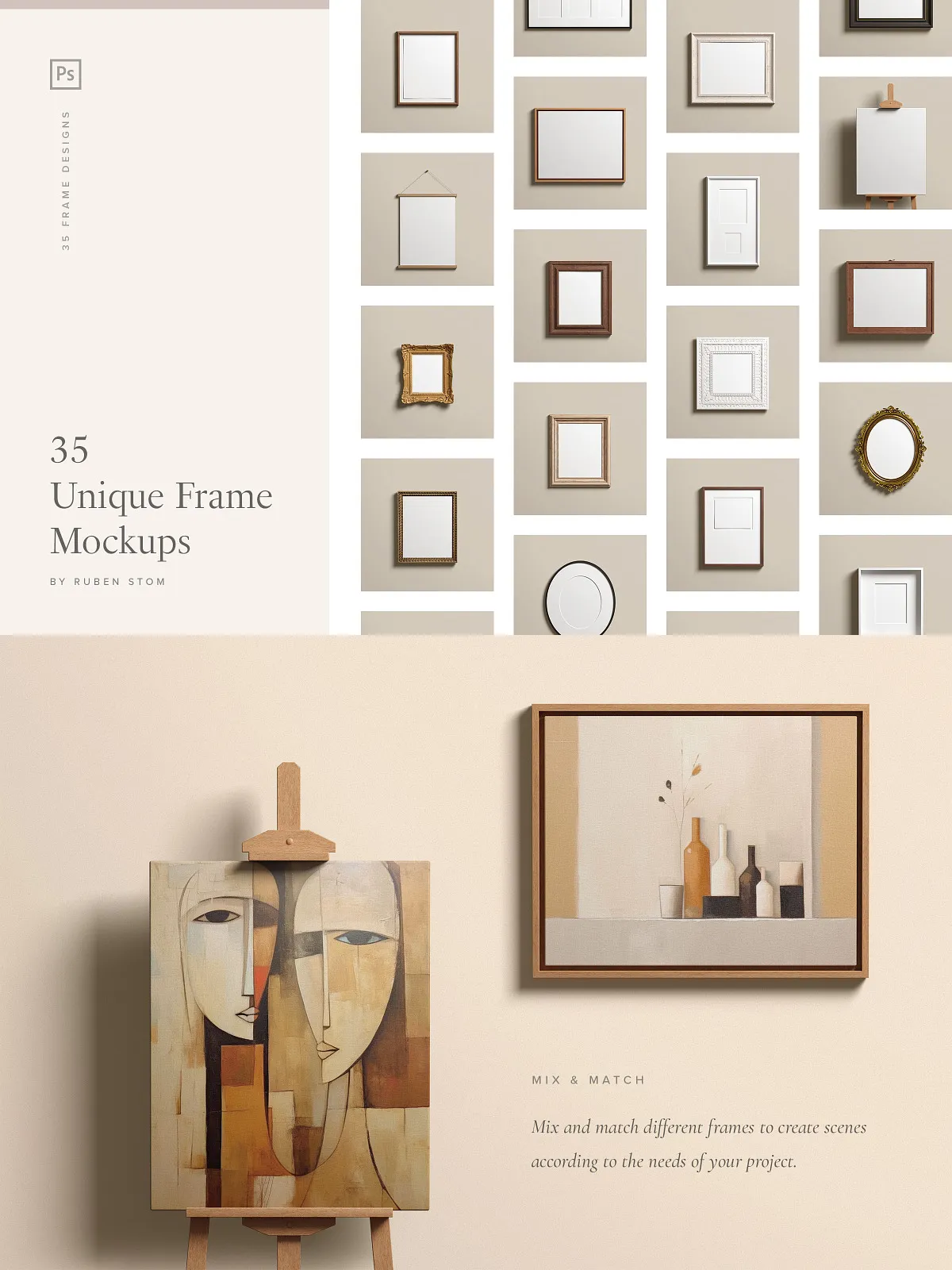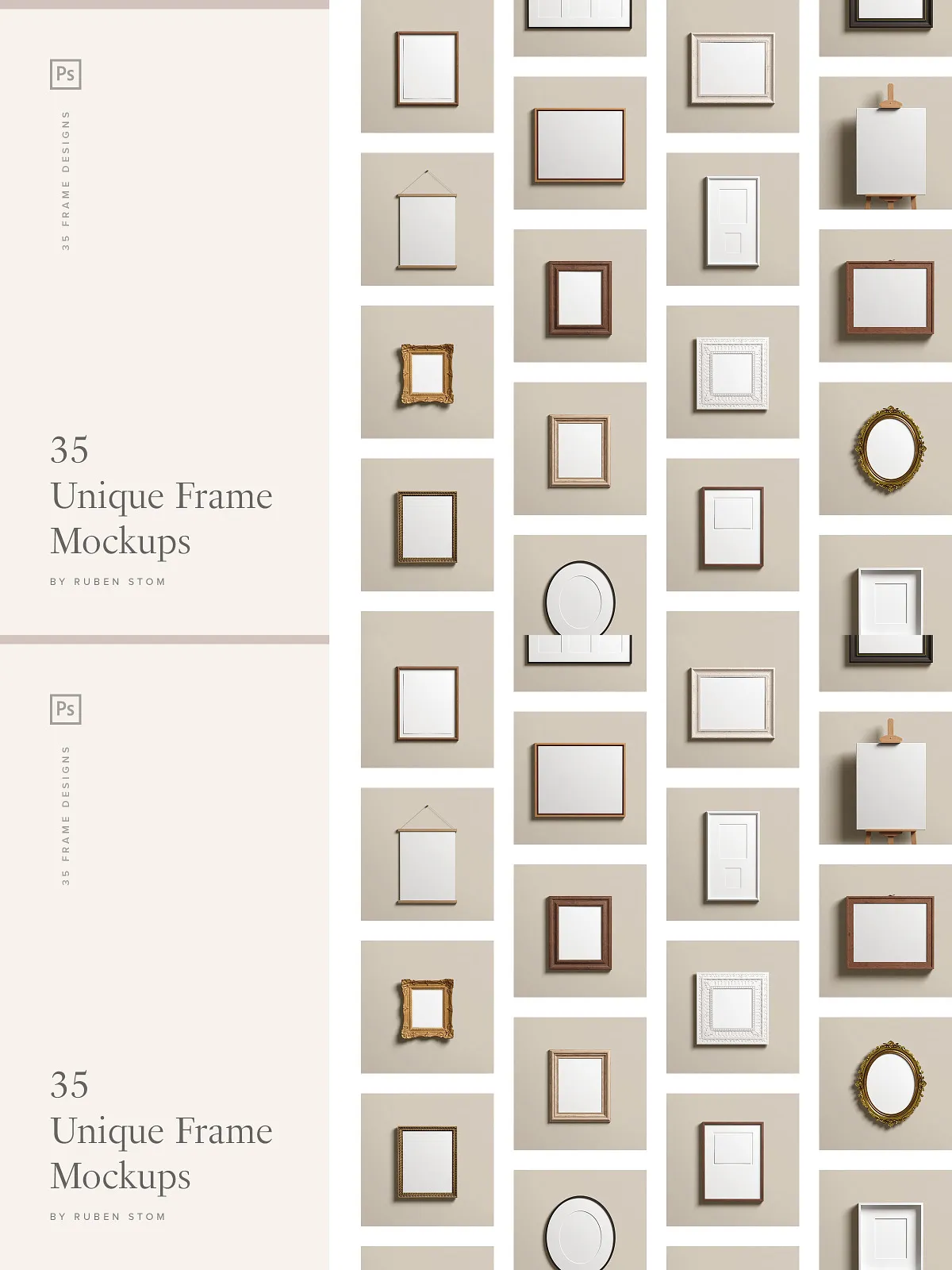 • 35 Unique Frame Mockups: 7 horizontal (5×4, 7×5), 27 vertical (4×5, 5×7), 1 square (1×1) – all high resolution
