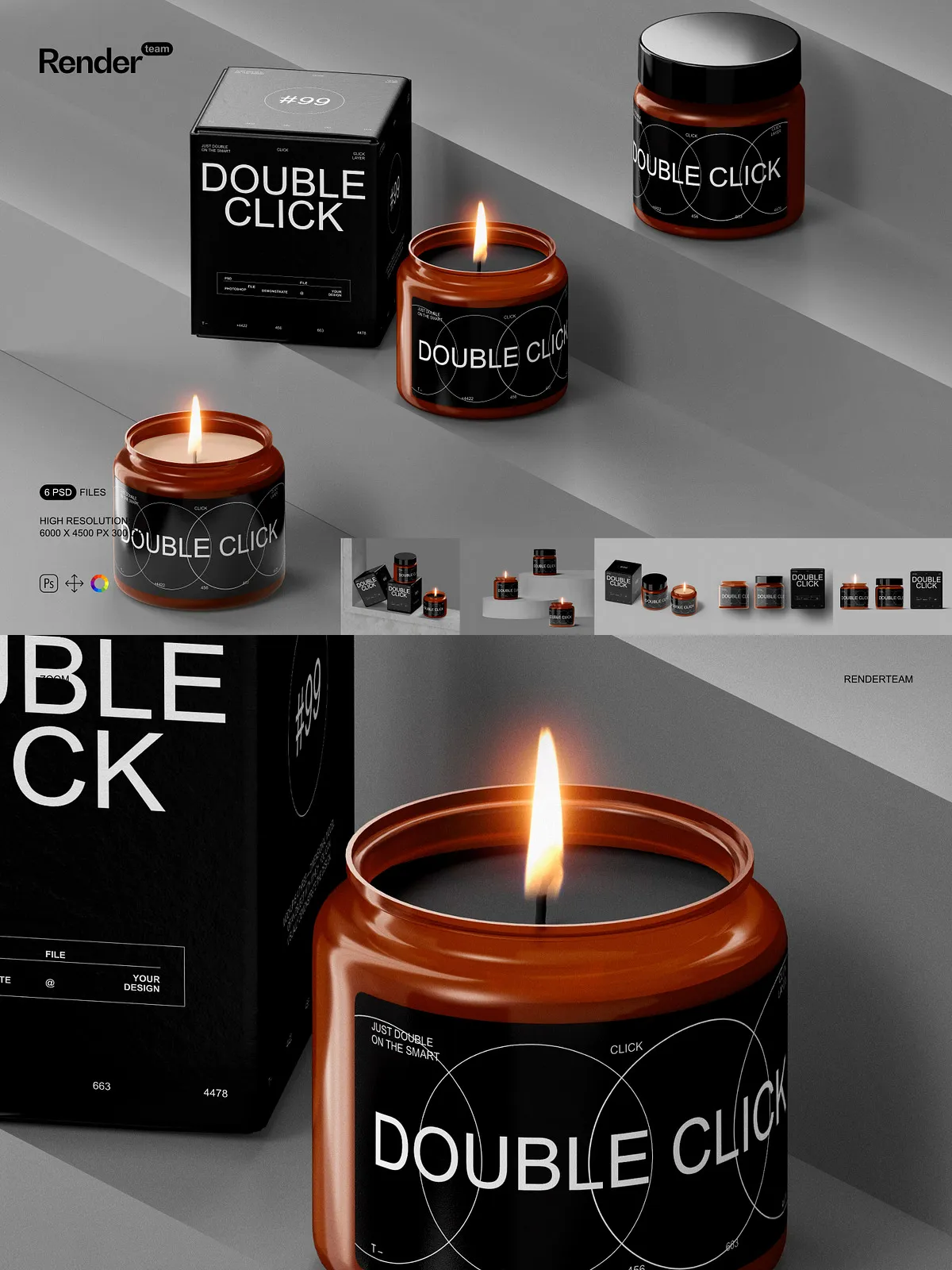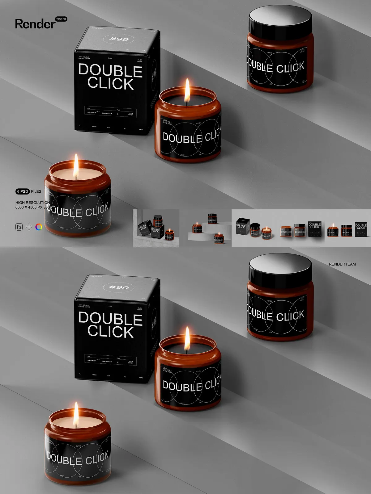 Build compelling visuals that go beyond the product. Position a single candle on a rustic wooden table with soft shadows, place multiple candles in a cozy living room setup, or cluster them in a minimalist studio environment to emphasize elegance. The modular nature of the mockups allows you to construct customized scenes that reflect your brand’s identity — from rustic charm to modern luxury.