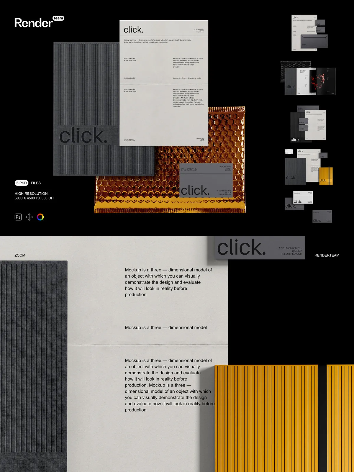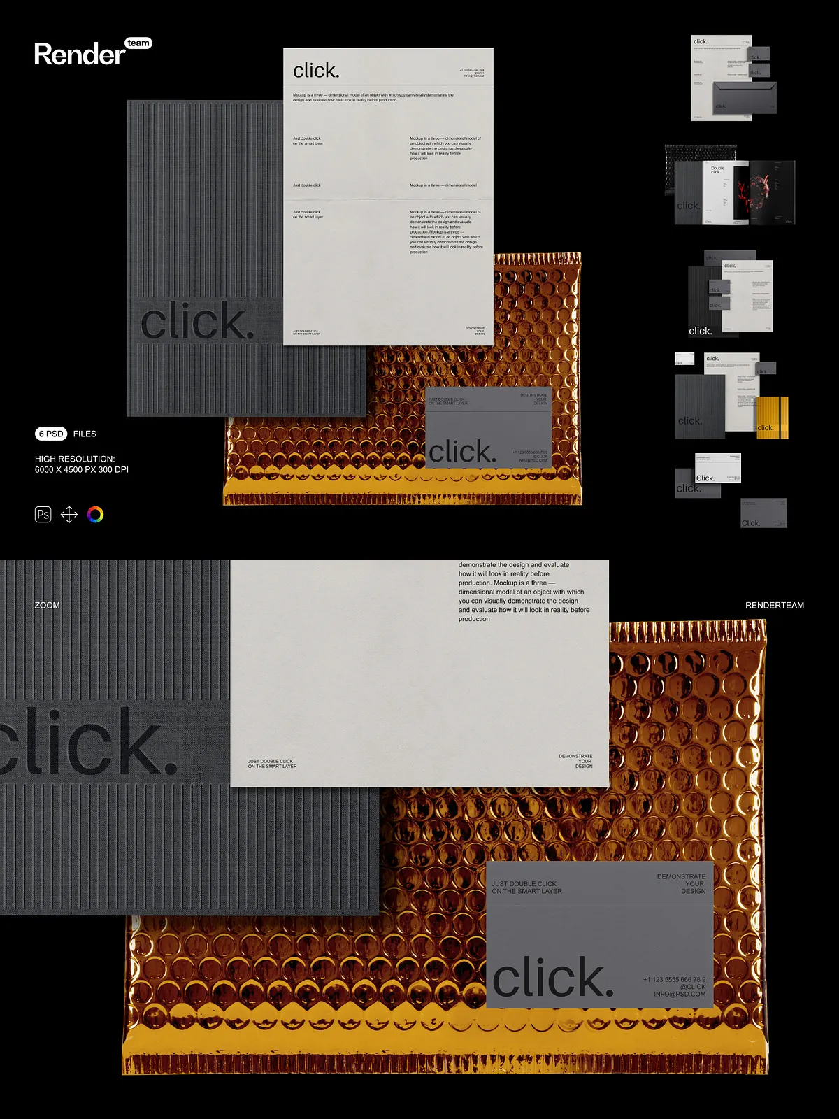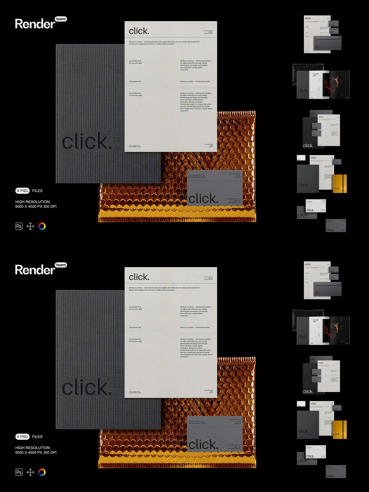 Experience lightning-fast, seamless customization using Photoshop’s powerful Smart Object technology. Double-click any design layer, insert your brand assets, adjust colors, scale content, and save—zero complexity, zero hassle. Unlike static images, these mockups preserve quality at any size, ensuring your branding materials look sharp whether displayed on a presentation screen or printed at large scale. Say goodbye to time-consuming masking and manual layering. This is editing that’s intuitive, efficient, and built for real-world workflow demands.