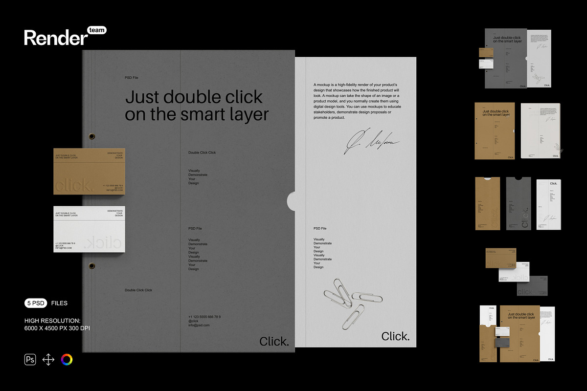 Deliver flawless visuals at the highest standard with images rendered at 6000×4500 pixels and 300 dpi. This ultra-high resolution captures every nuance—material texture, subtle reflections, fine gradients, and depth shadows—with exceptional clarity. Whether showcasing a sleek business card on a wooden surface or displaying your brand on a tablet screen, the details leap off the screen with photorealistic precision. These files are optimized for professional print, large-format displays, pitch decks, and marketing collateral where visual quality cannot be compromised.