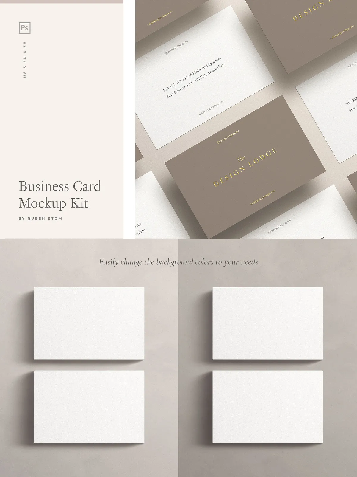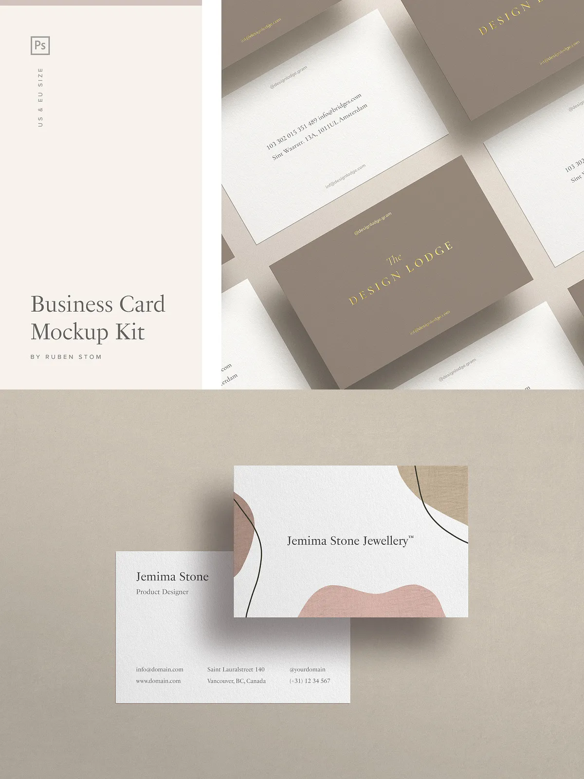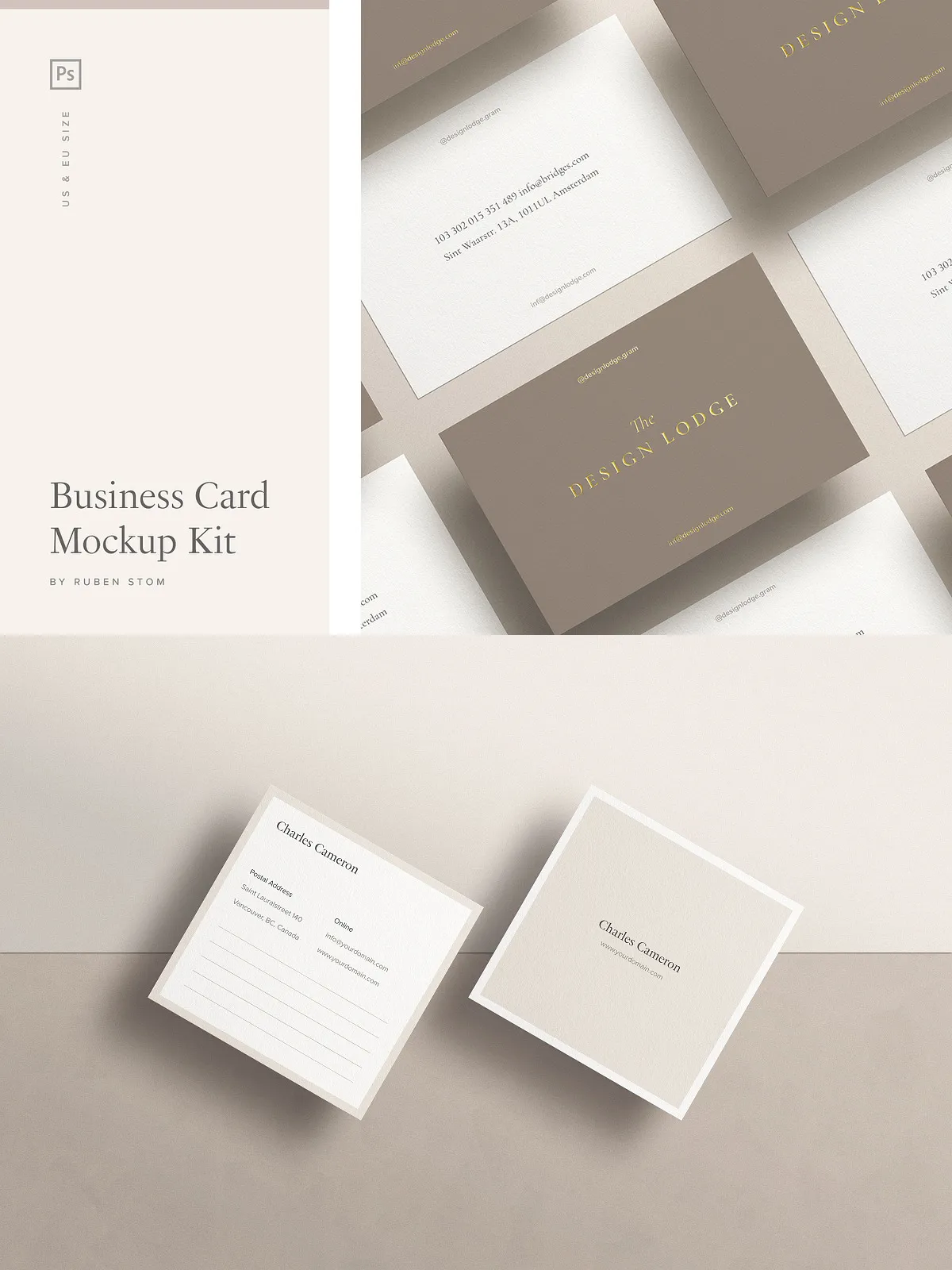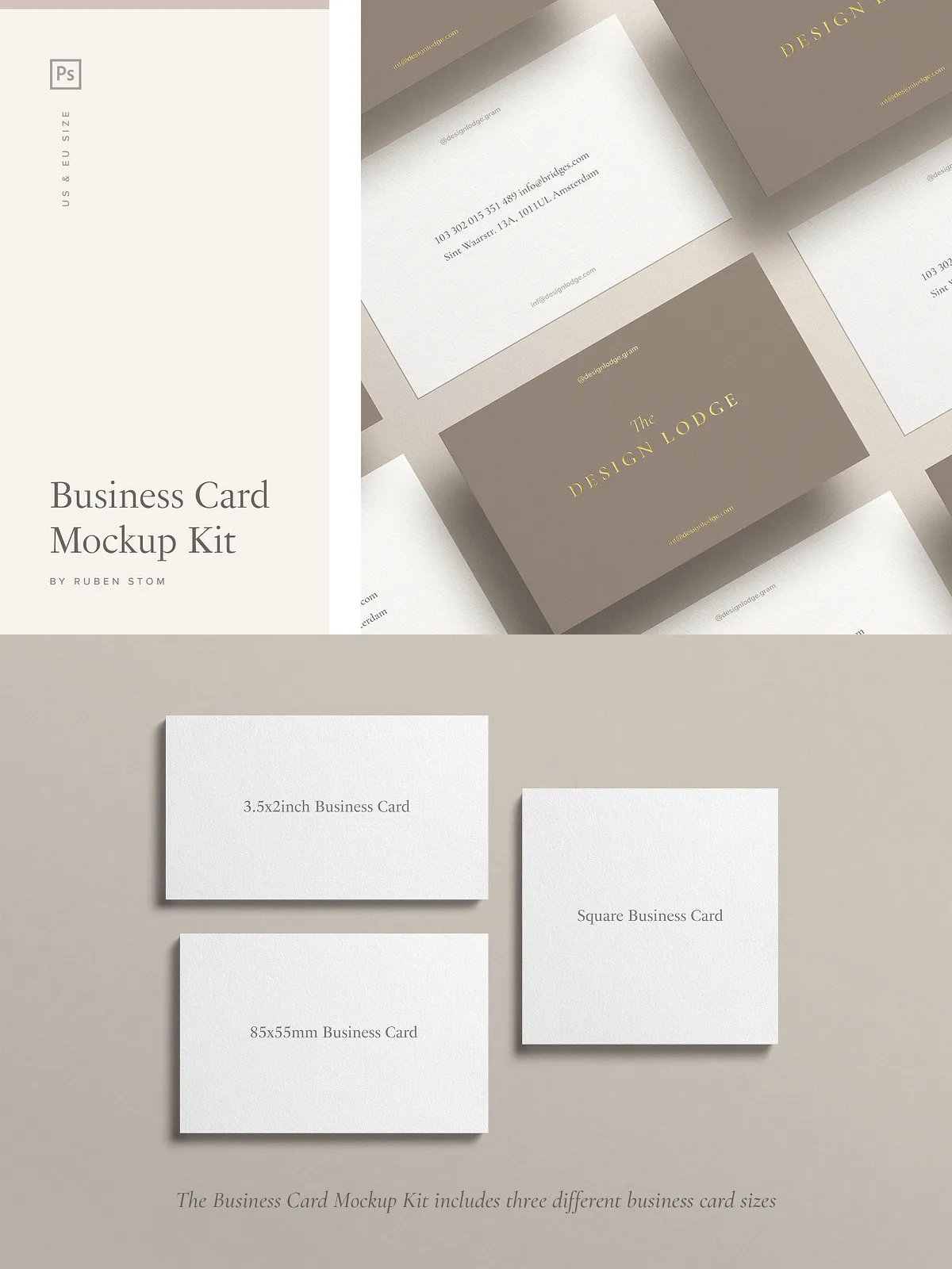 - Business card mockup in US size (3.5×2 inch)