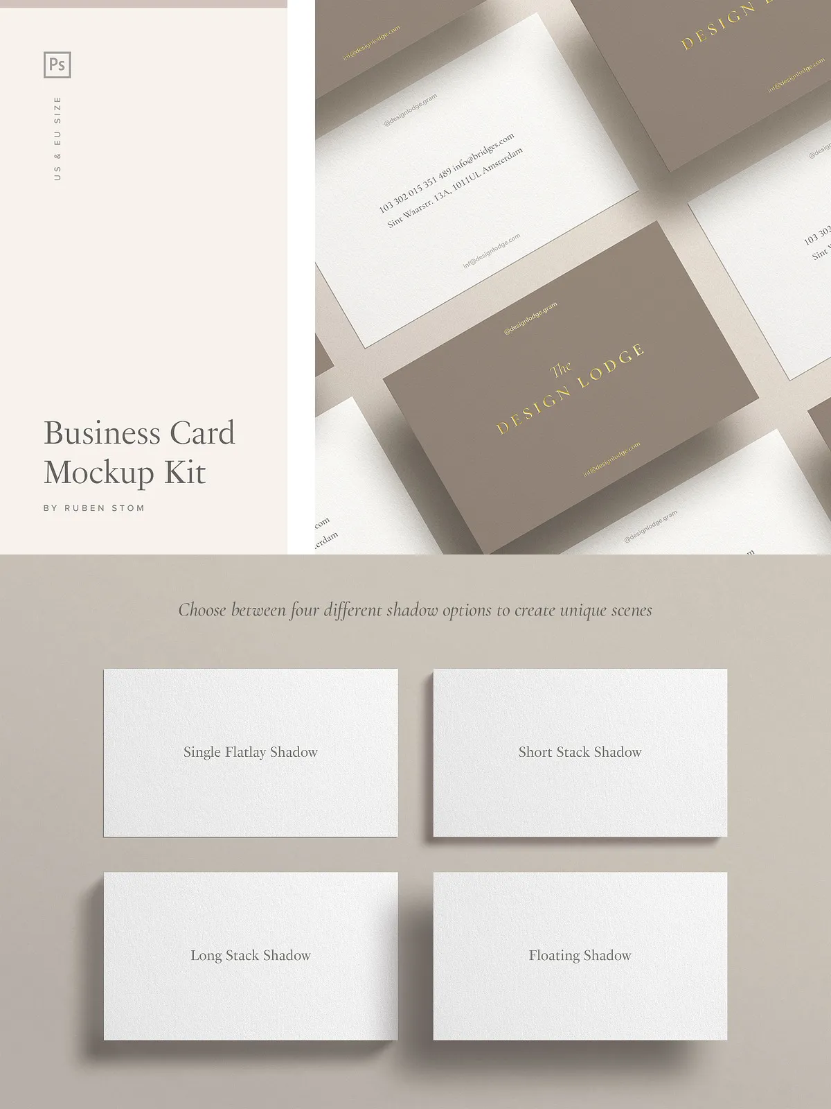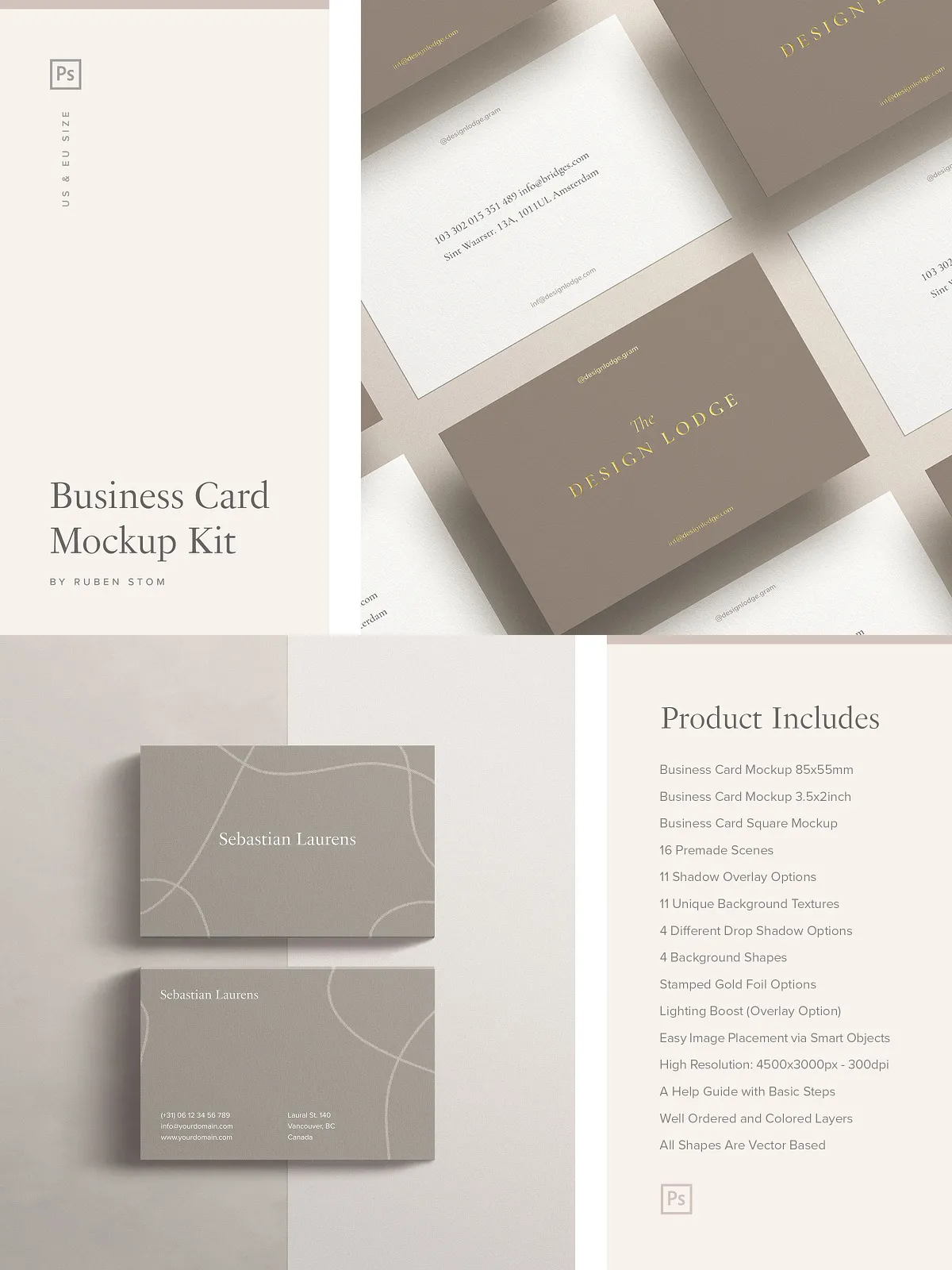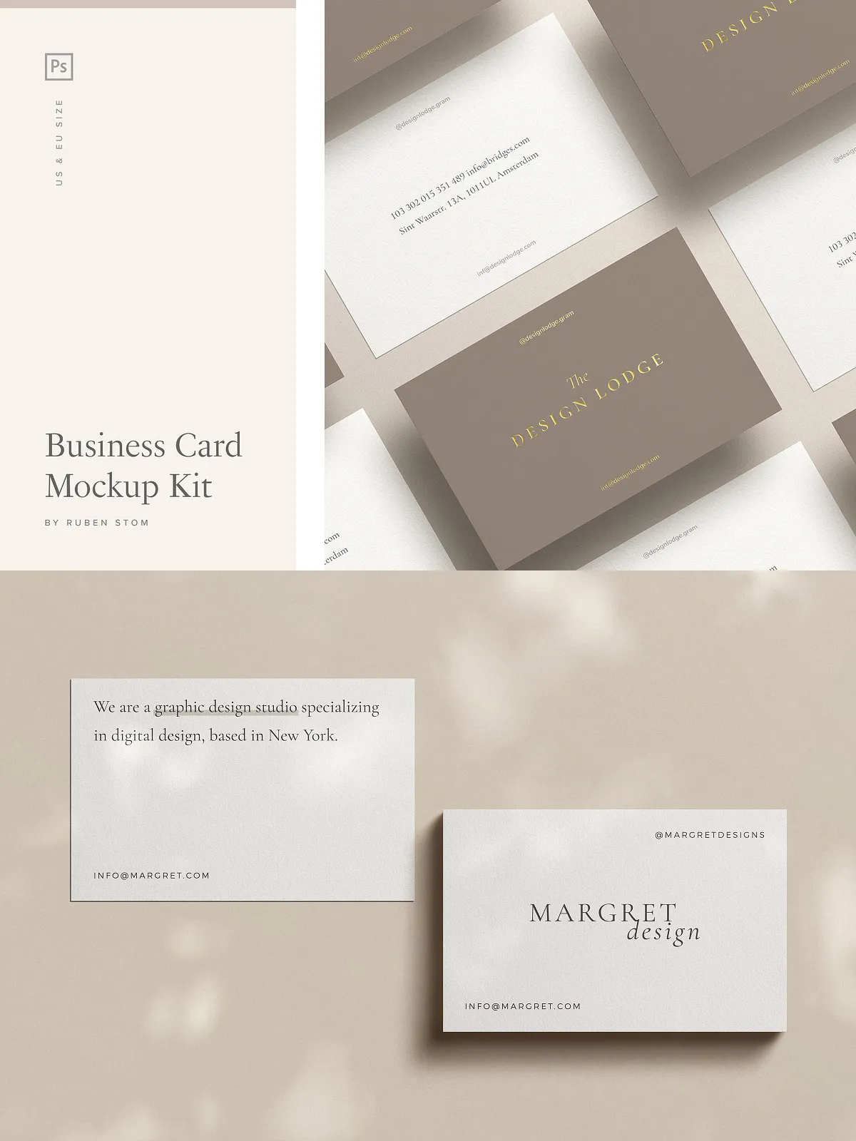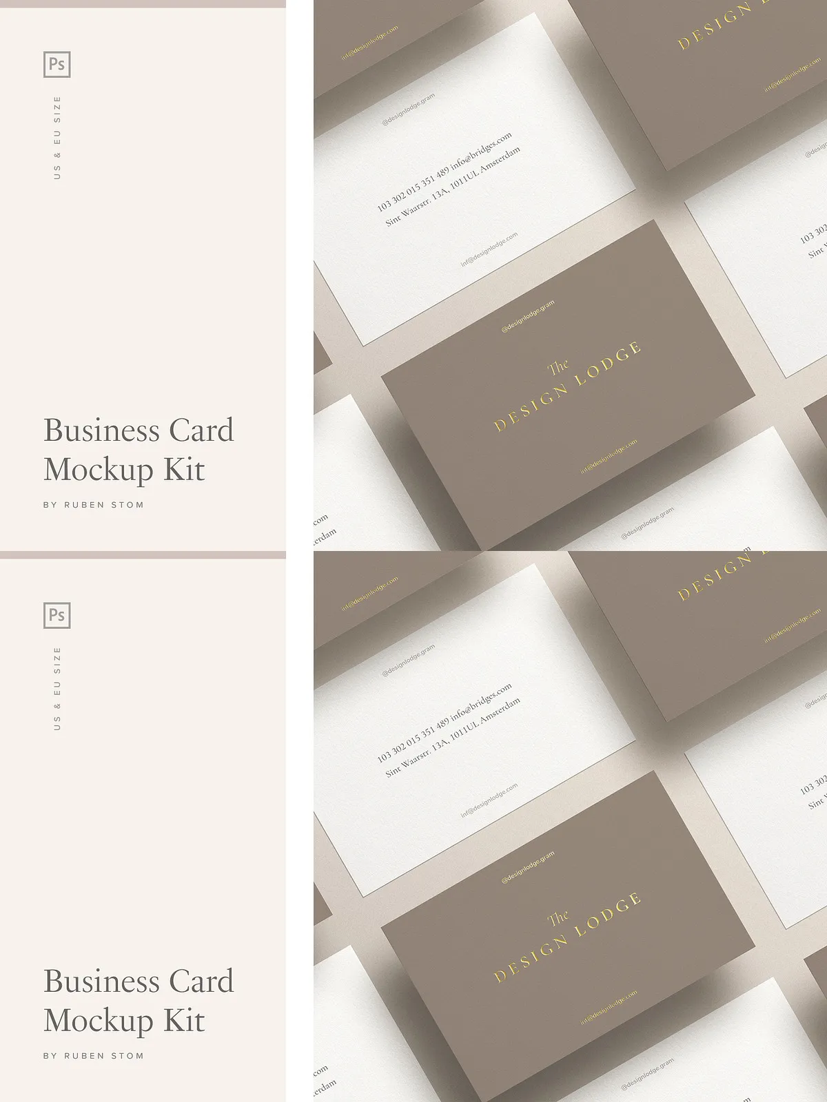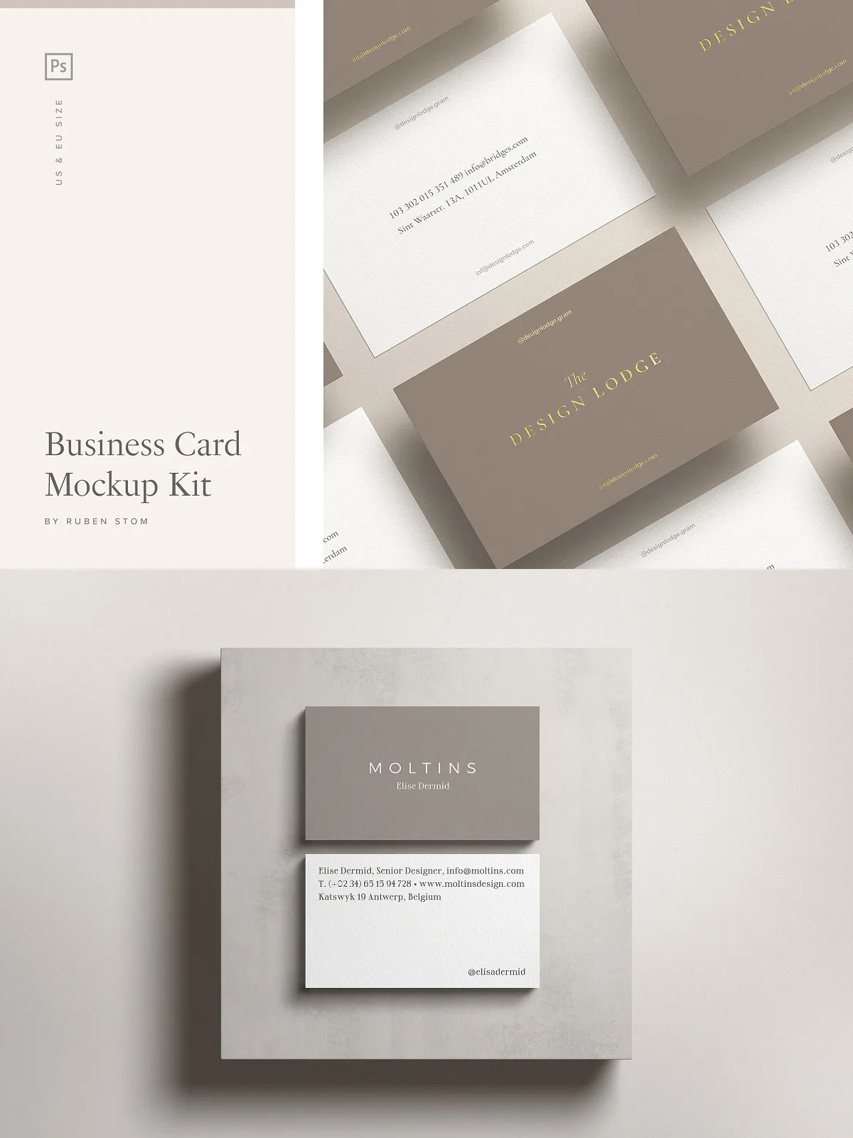 - Business card mockup in US size (3.5×2 inch)