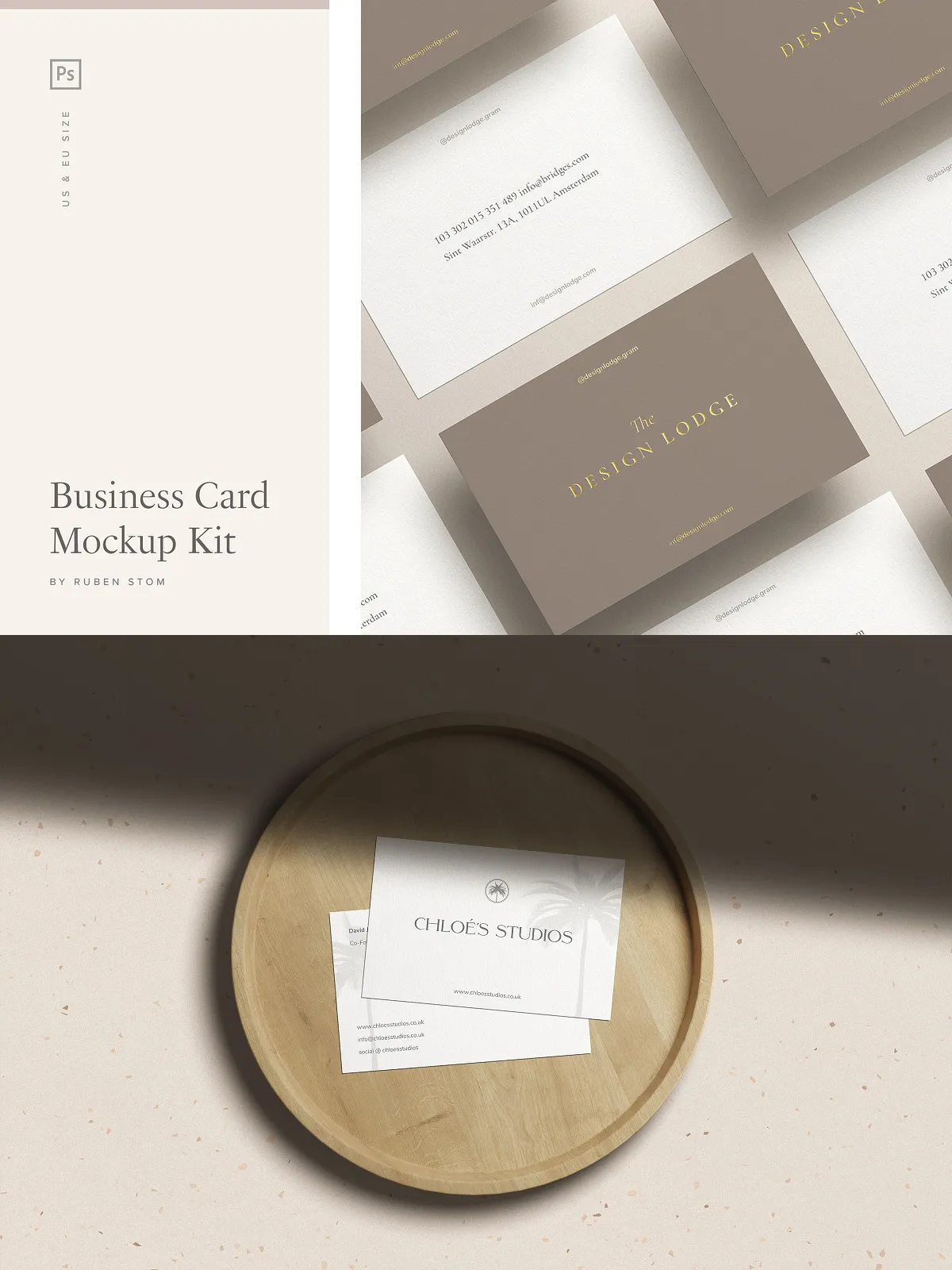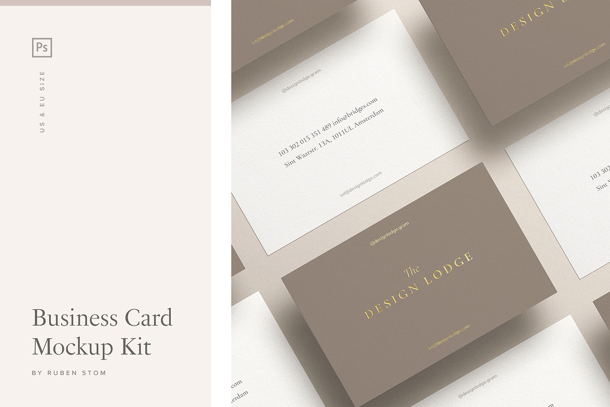 - Business card mockup in EU size (85×55 mm)