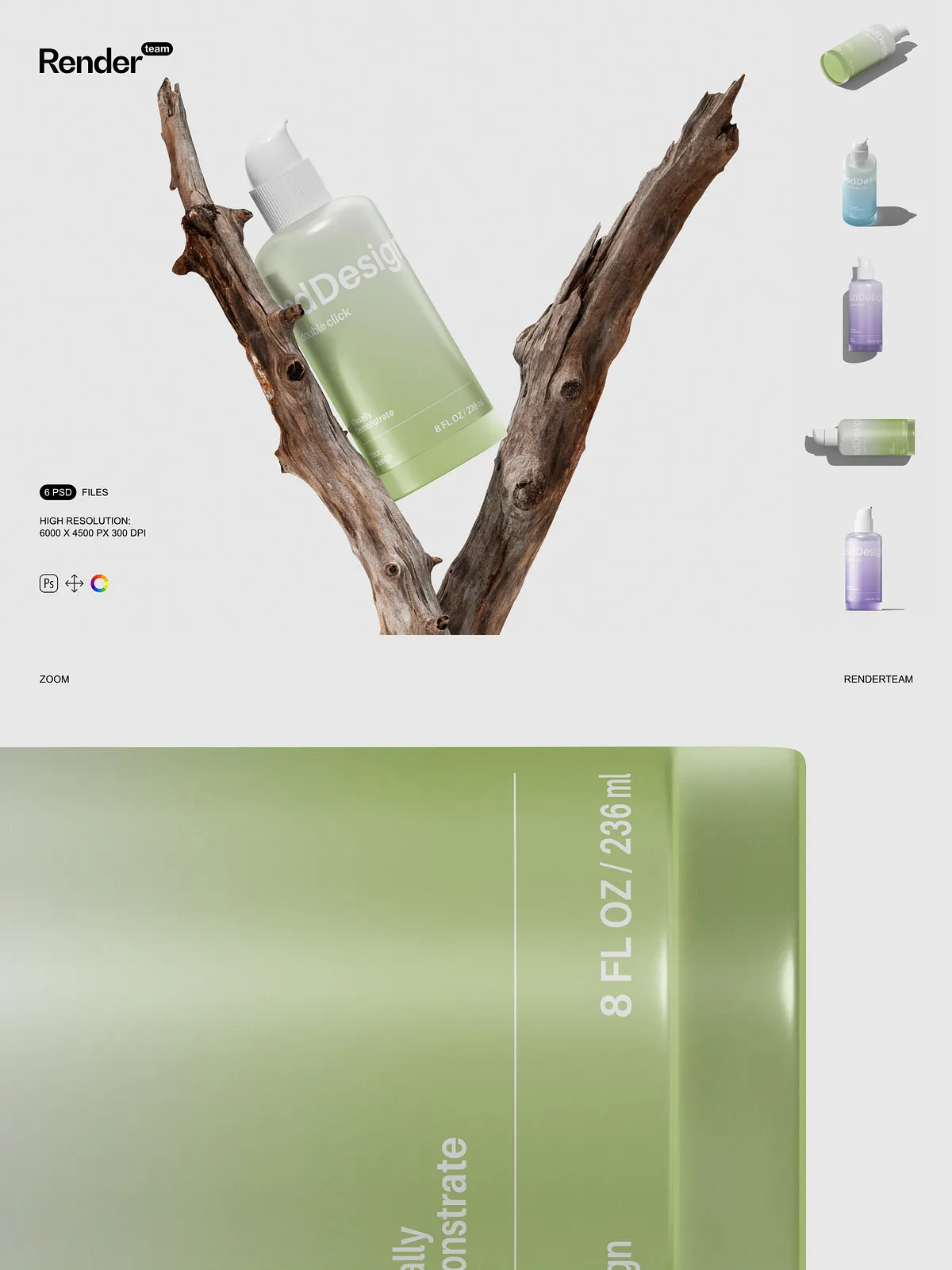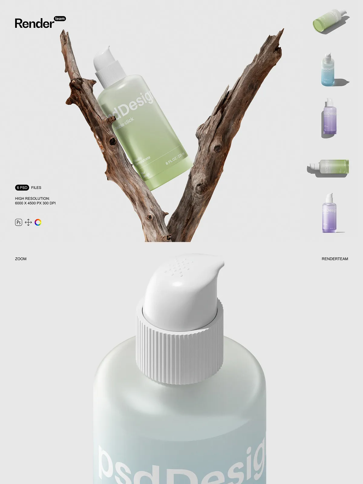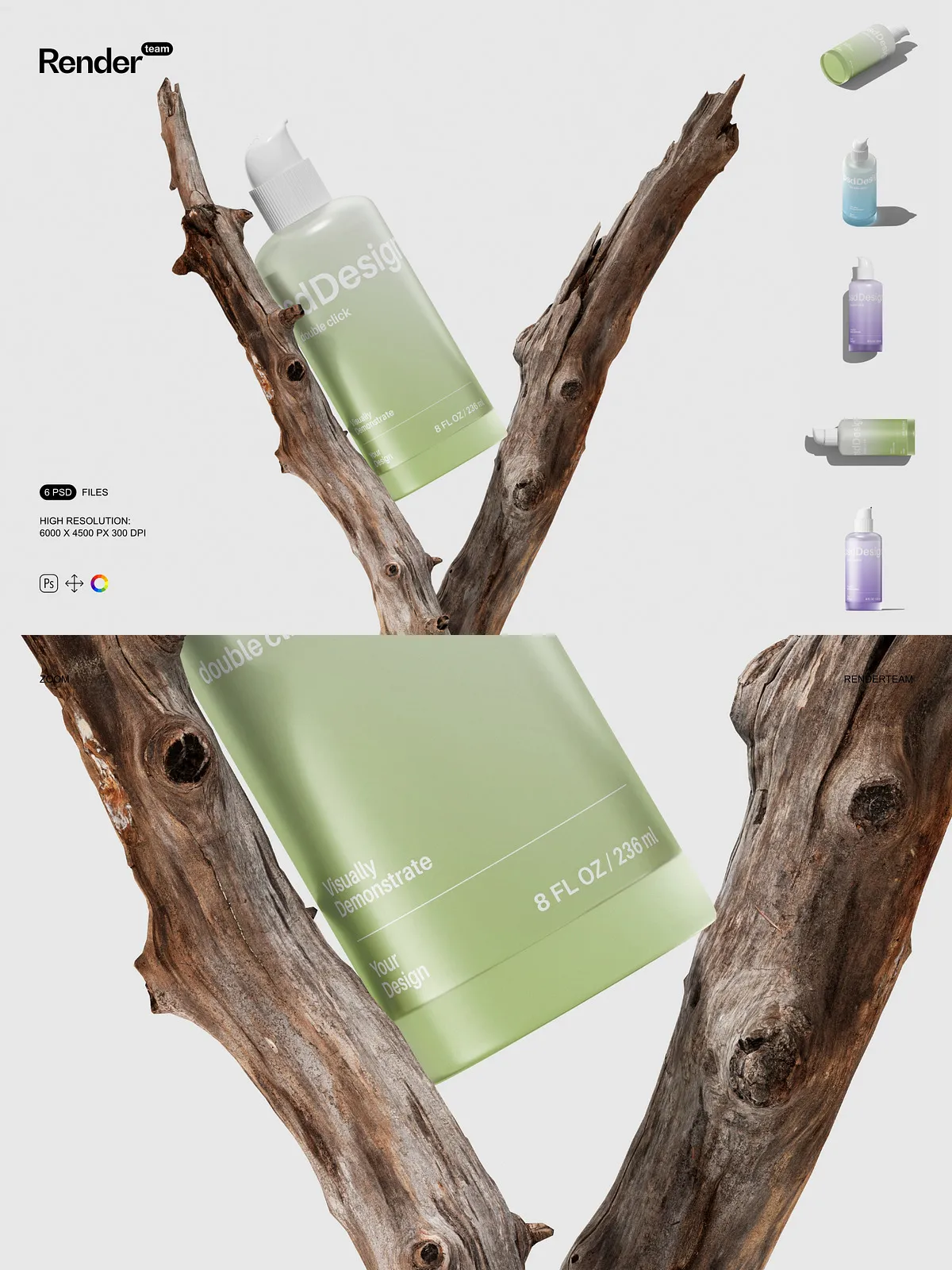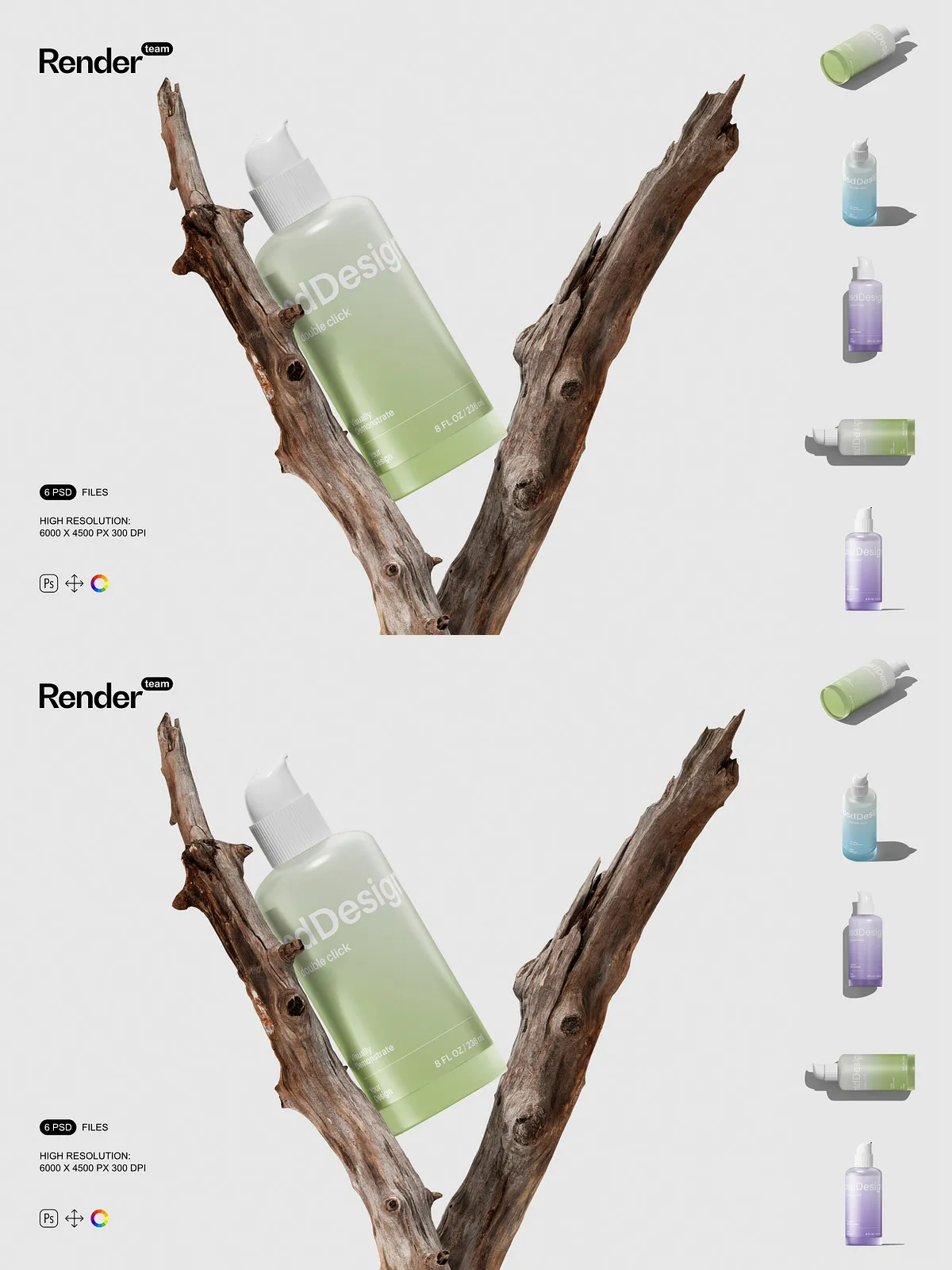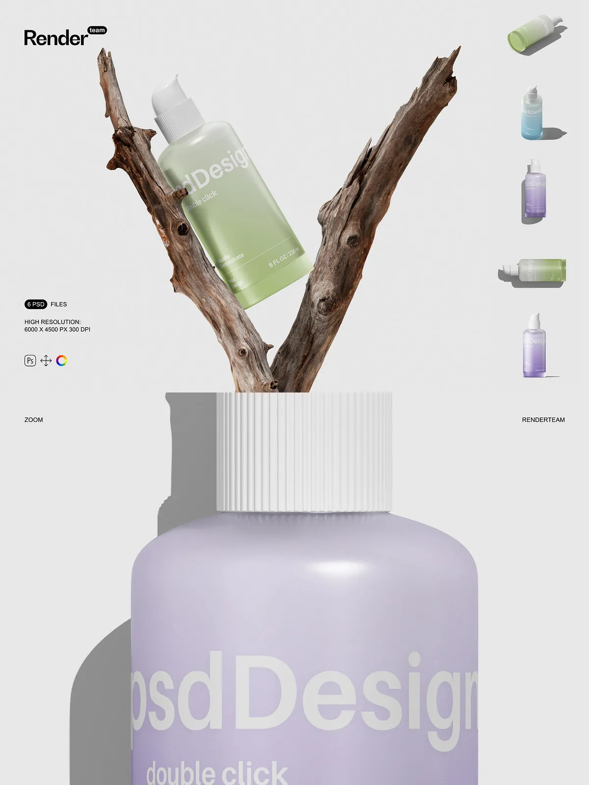 The Cosmetic Bottle Mockup Set delivers five meticulously crafted, fully layered PSD files designed to showcase your cosmetic bottle and packaging designs with realism and polish. Each mockup uses Smart Objects and organized color layers so you can apply your label artwork and color schemes quickly and non-destructively. The files come at high resolution (6000 × 4500 px, 300 dpi) to preserve texture detail and typography clarity for both web previews and print-ready proofs. Whether you prepare product presentation images for client reviews, online stores, or portfolio displays, this set helps you produce consistent, high-quality visuals that emphasize material, finish, and scale.