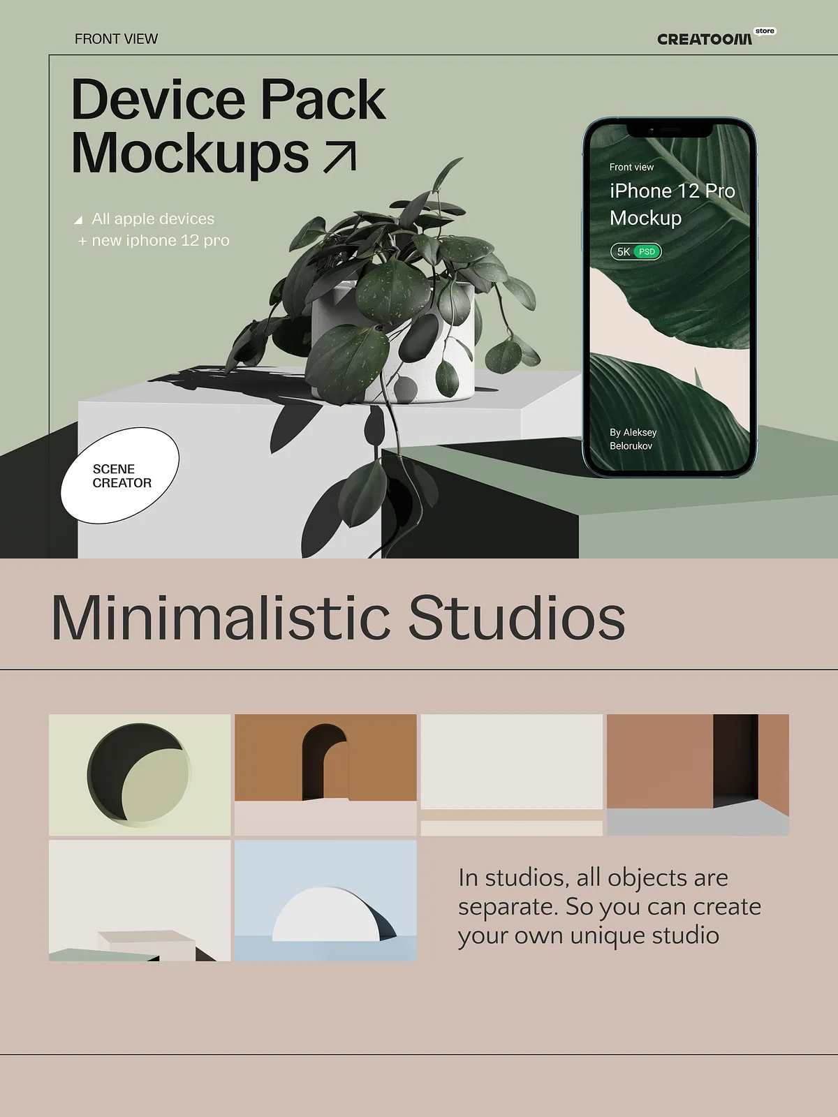 These studios aren’t static—they’re modular, dynamic environments that adapt to your design needs. Combine them with any of the 64 front-view devices to generate an almost infinite number of professional-quality scenes.