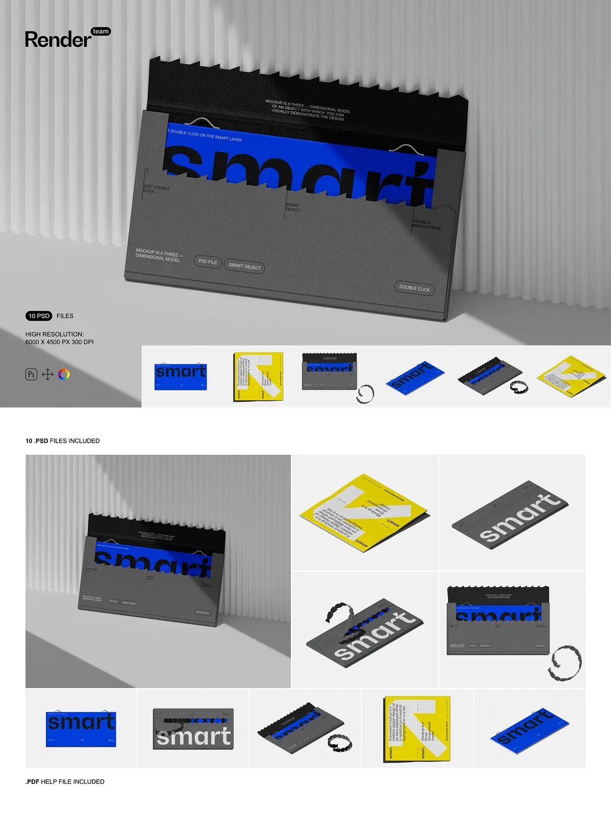 - 10 fully layered and editable PSD mockups across varied professional environments