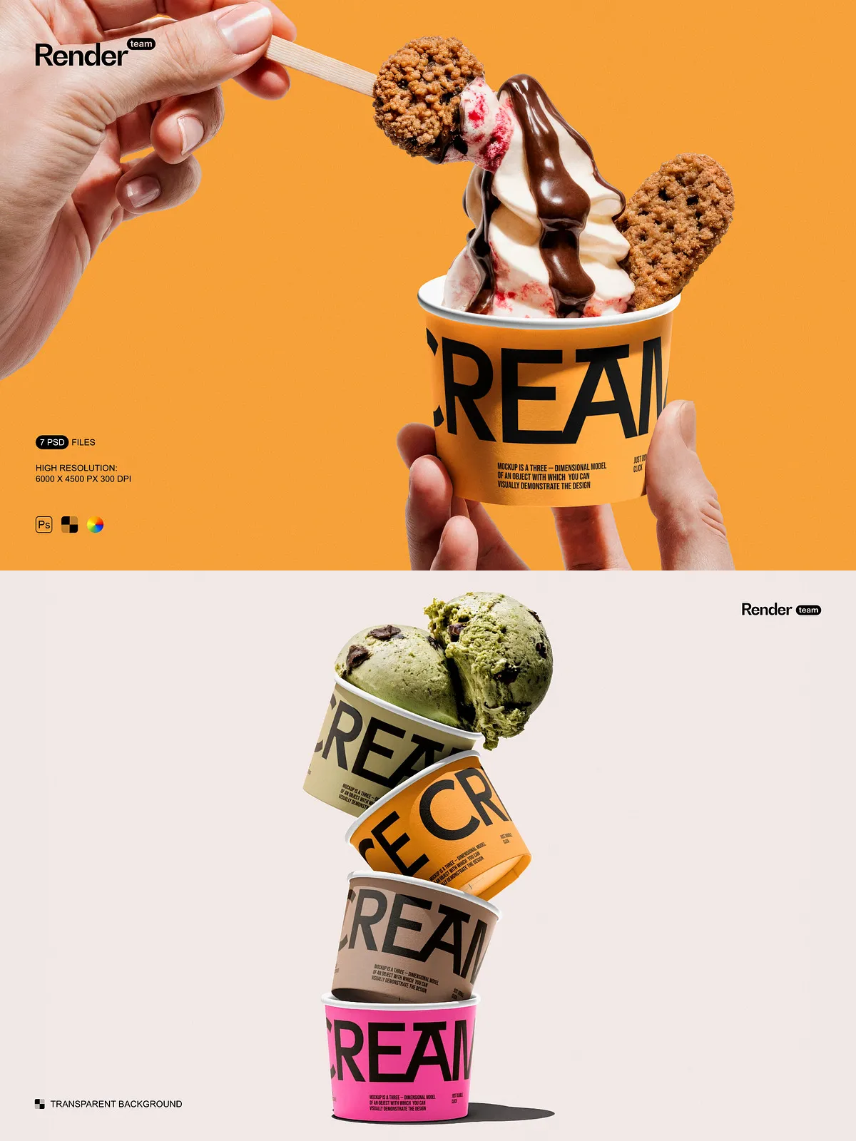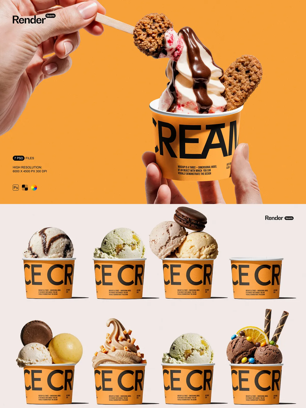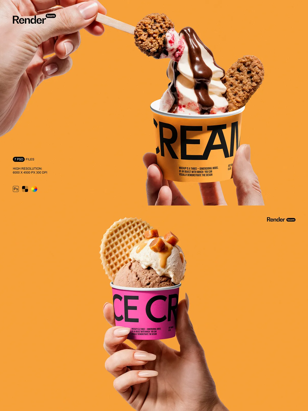 With seven distinct layouts—from single and double scoop designs to creative in-hand and table-top scenes—this set gives you the freedom to present your ice cream brand in diverse, engaging contexts. Highlight your product’s texture, flavor, and appeal in lifestyle settings that connect emotionally with your audience, making your marketing content feel authentic and irresistible.