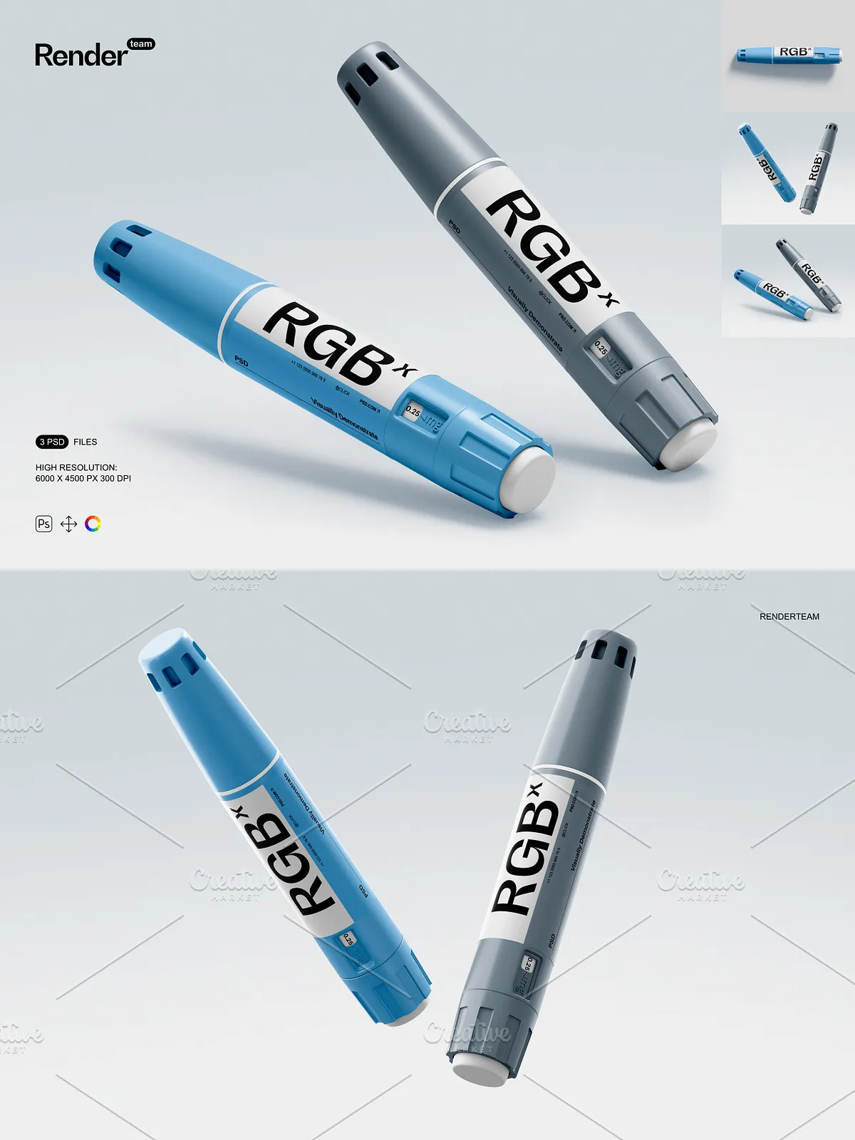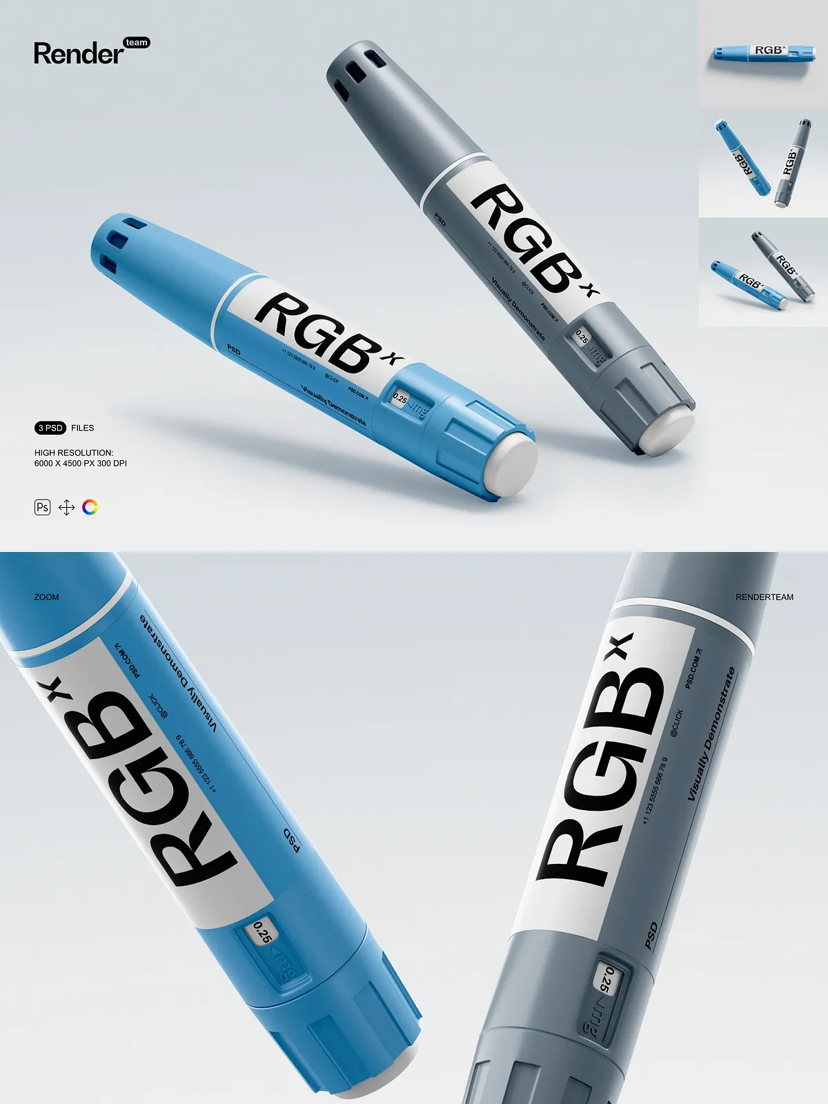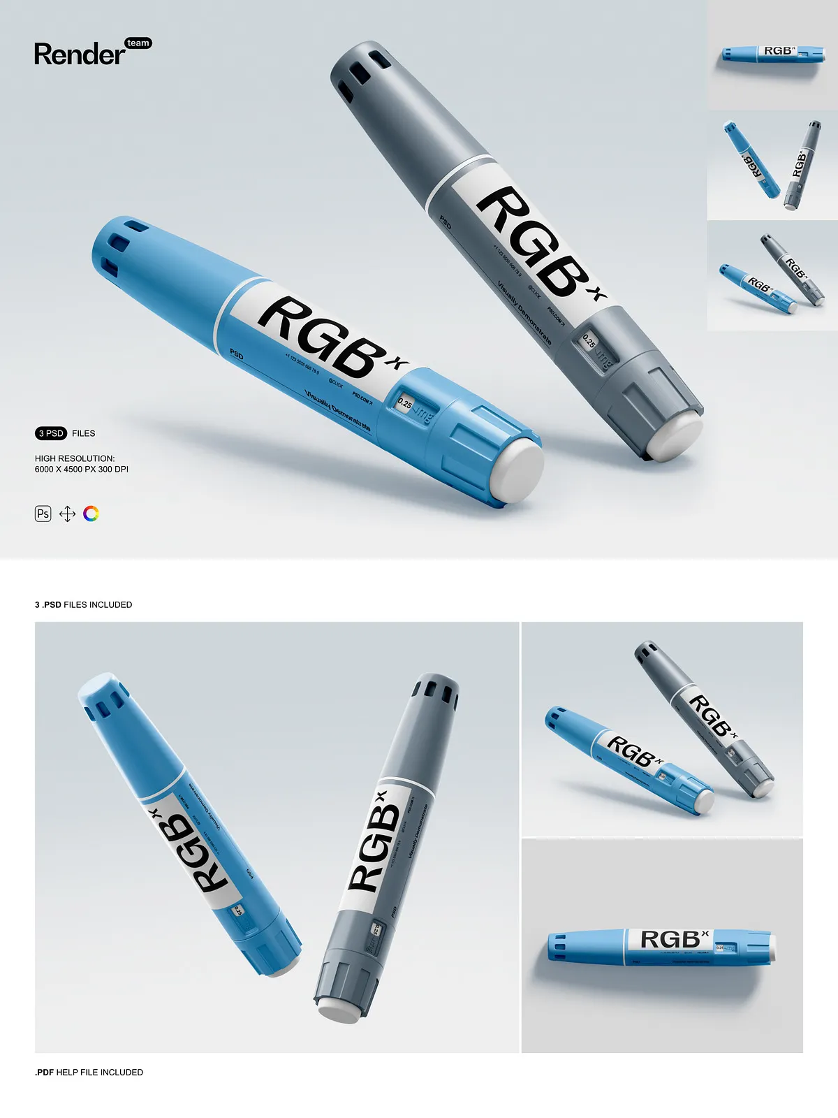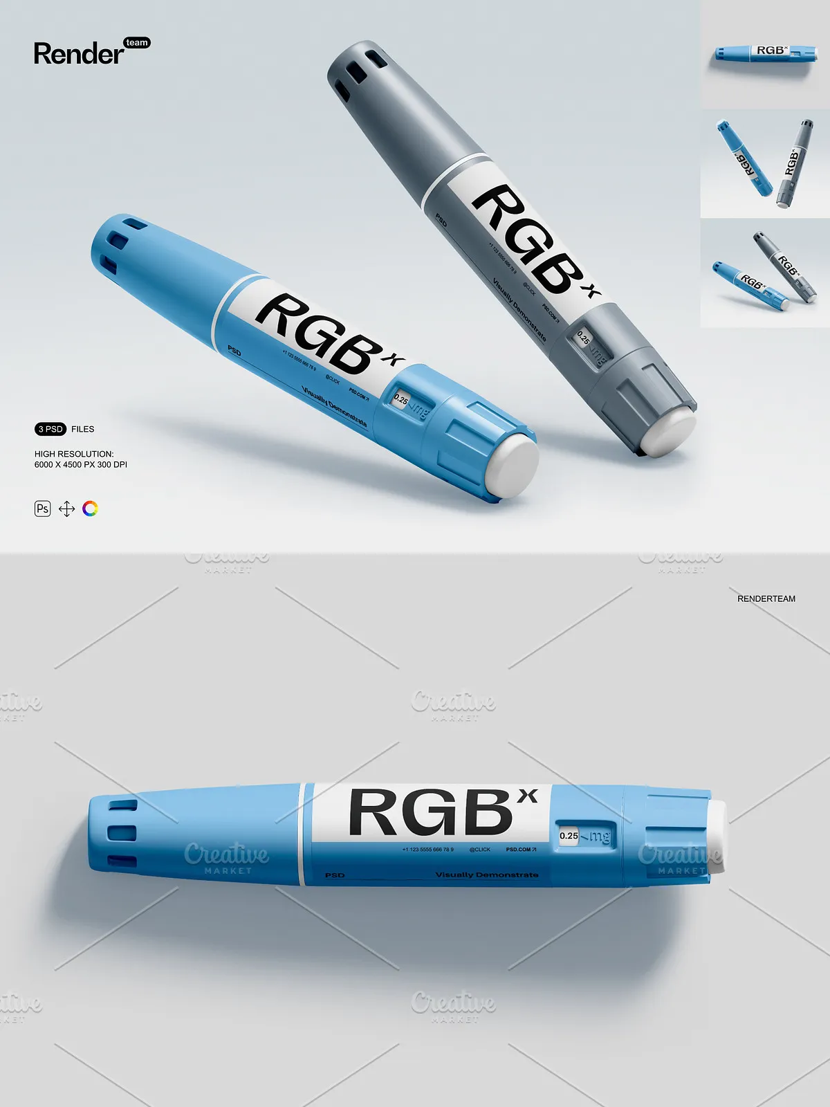 • 3 meticulously crafted PSD templates featuring insulin pens in diverse environments: clinical consultation rooms, home medication stations, and medical supply counters