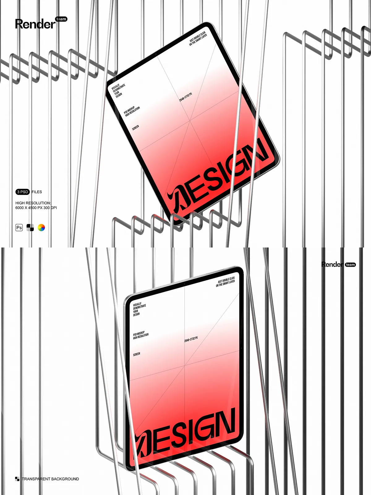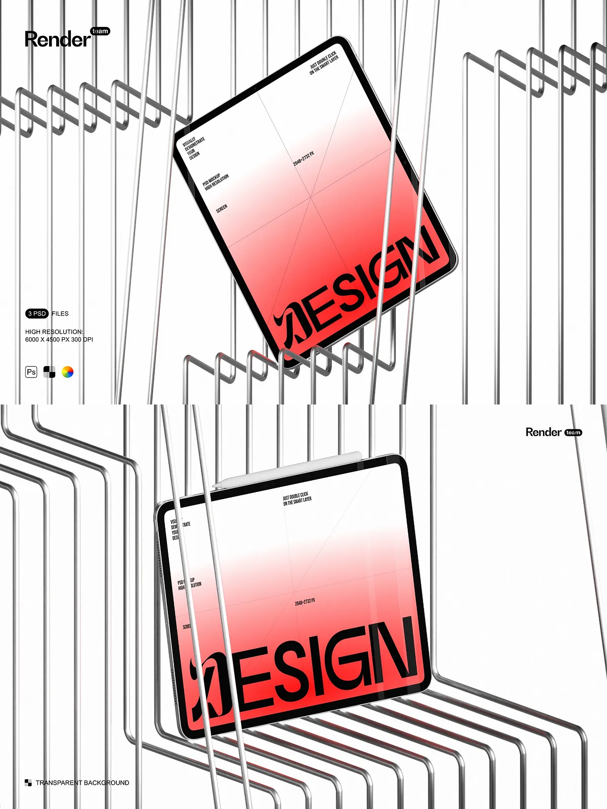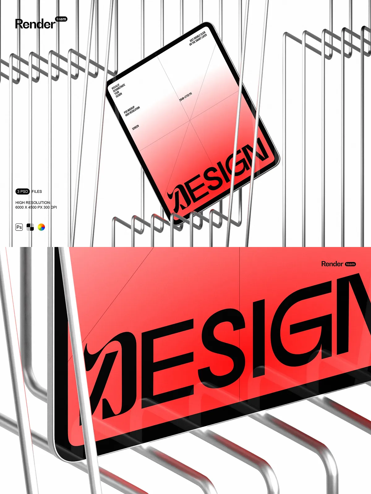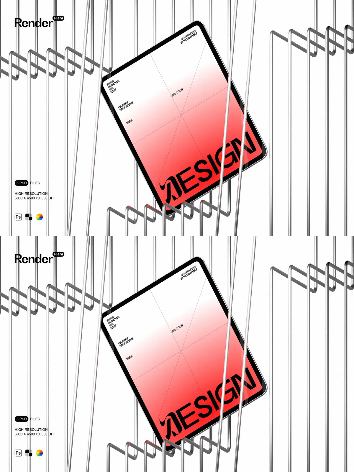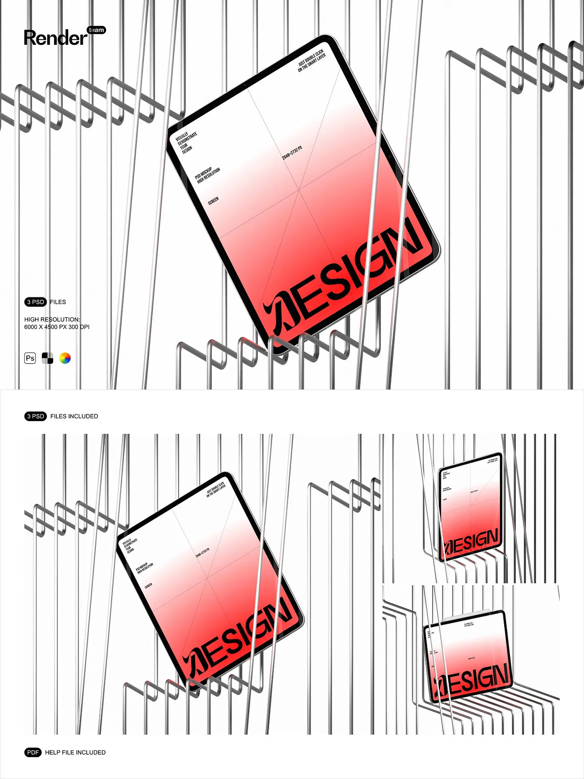 - Three editable PSD mockup files (.PSD, 6000×4500 px, 300 DPI)