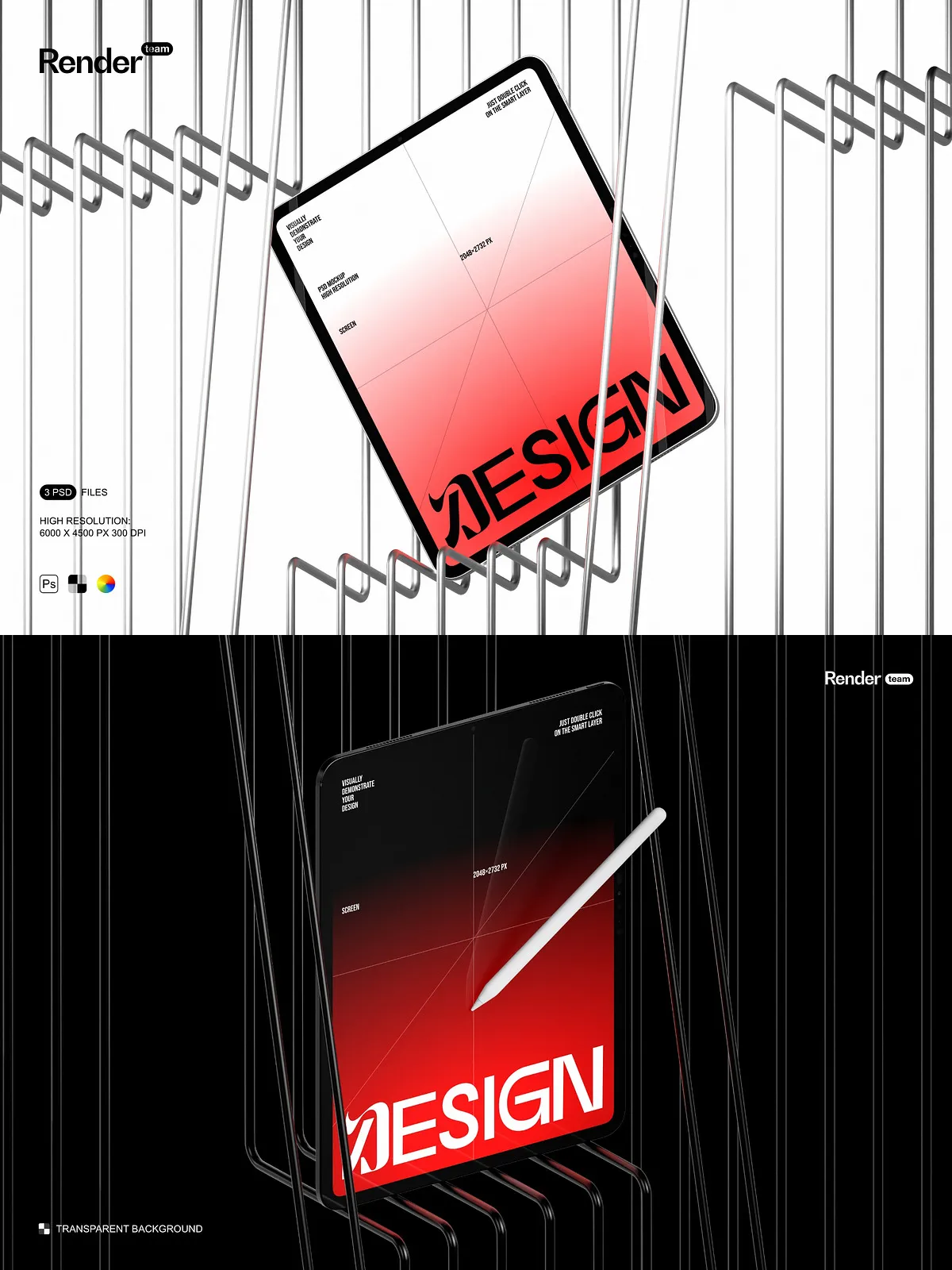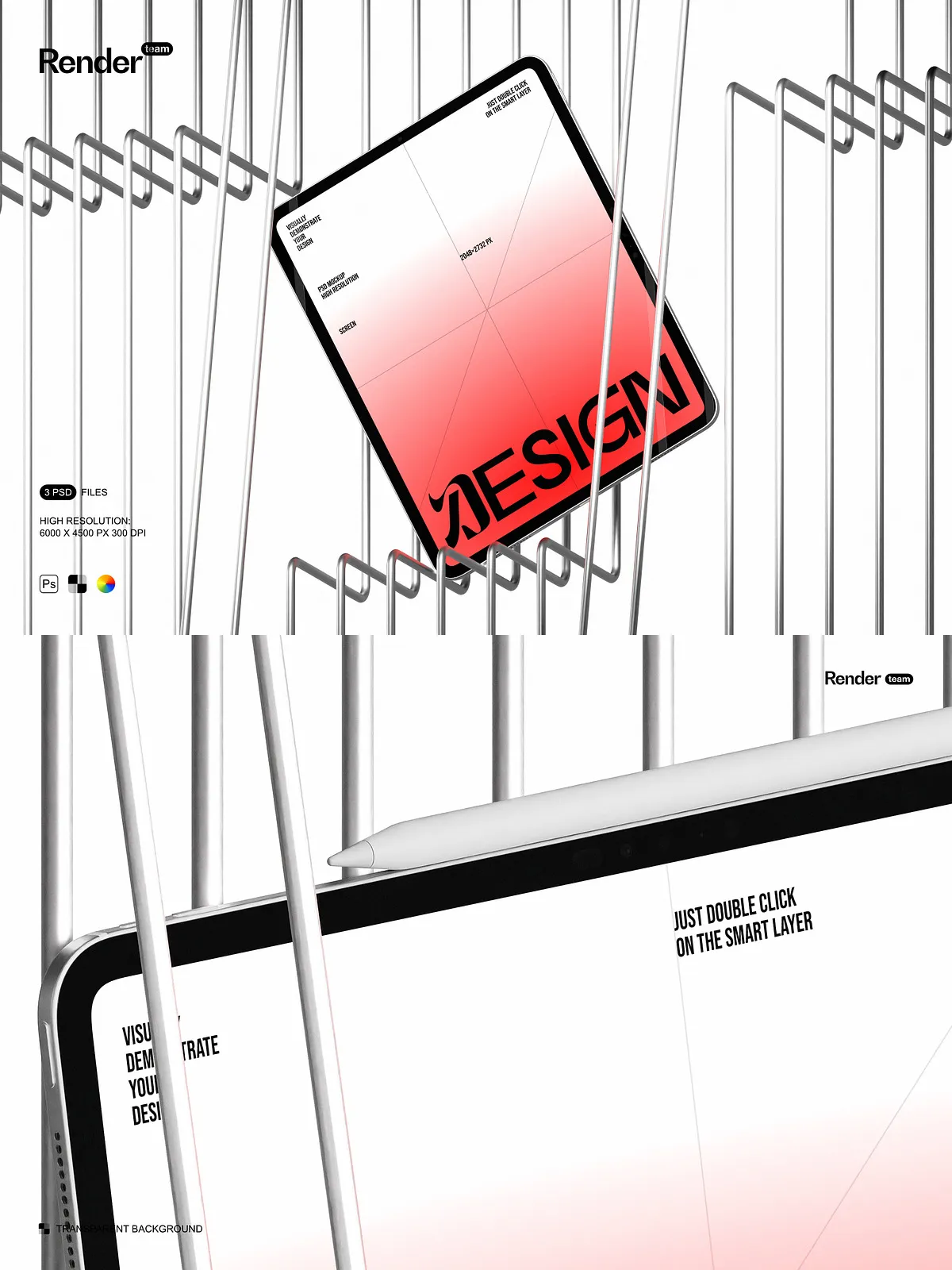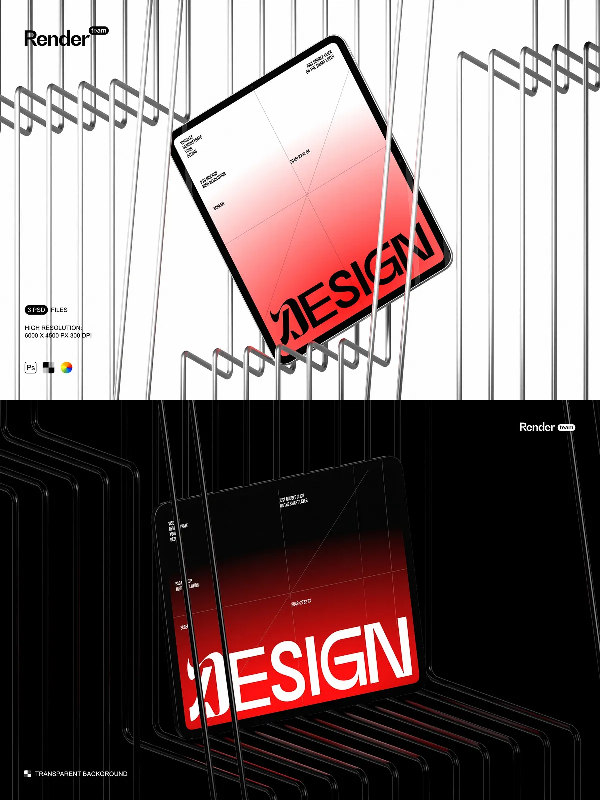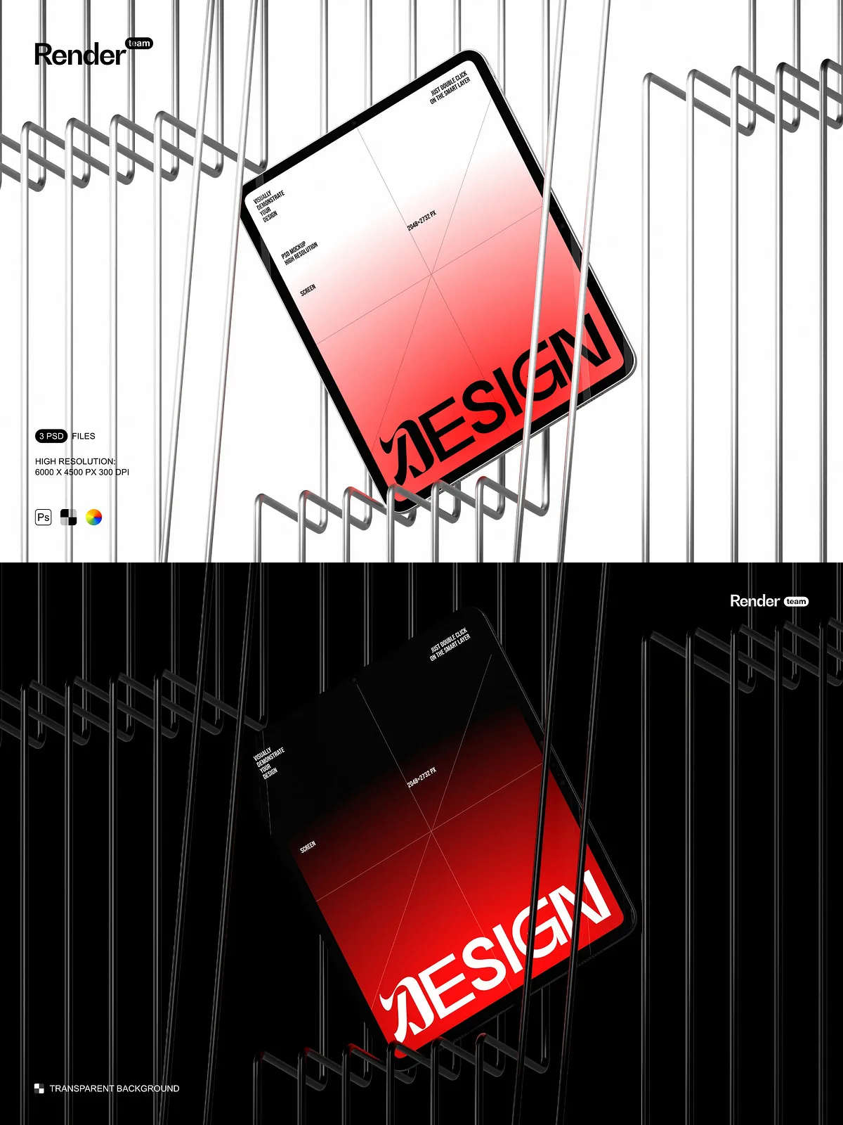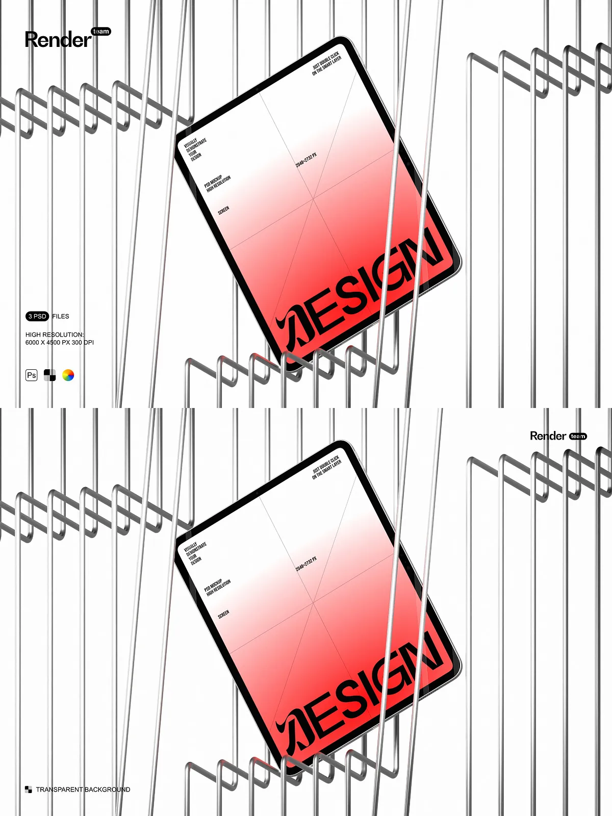 - Three editable PSD mockup files (.PSD, 6000×4500 px, 300 DPI)