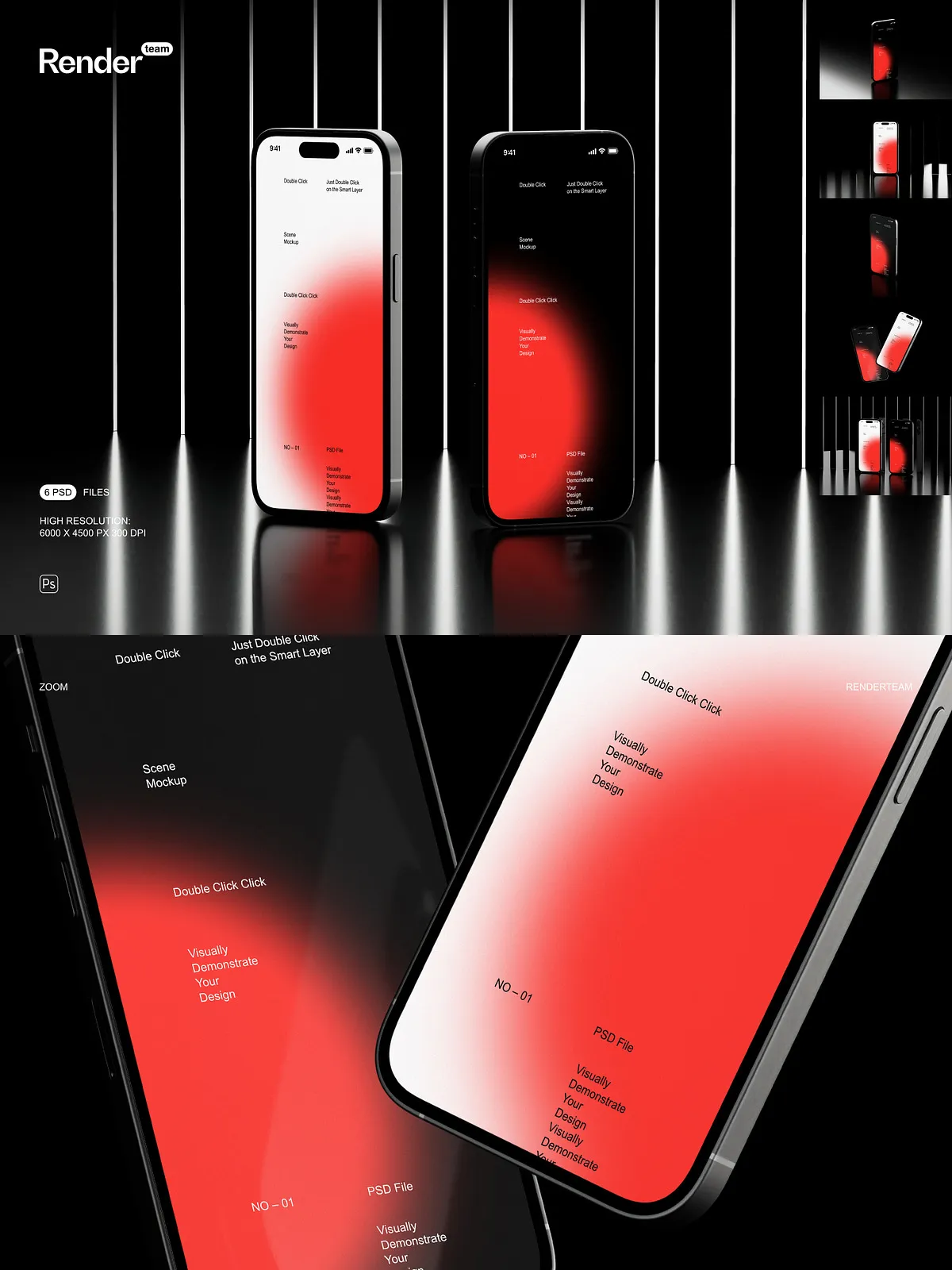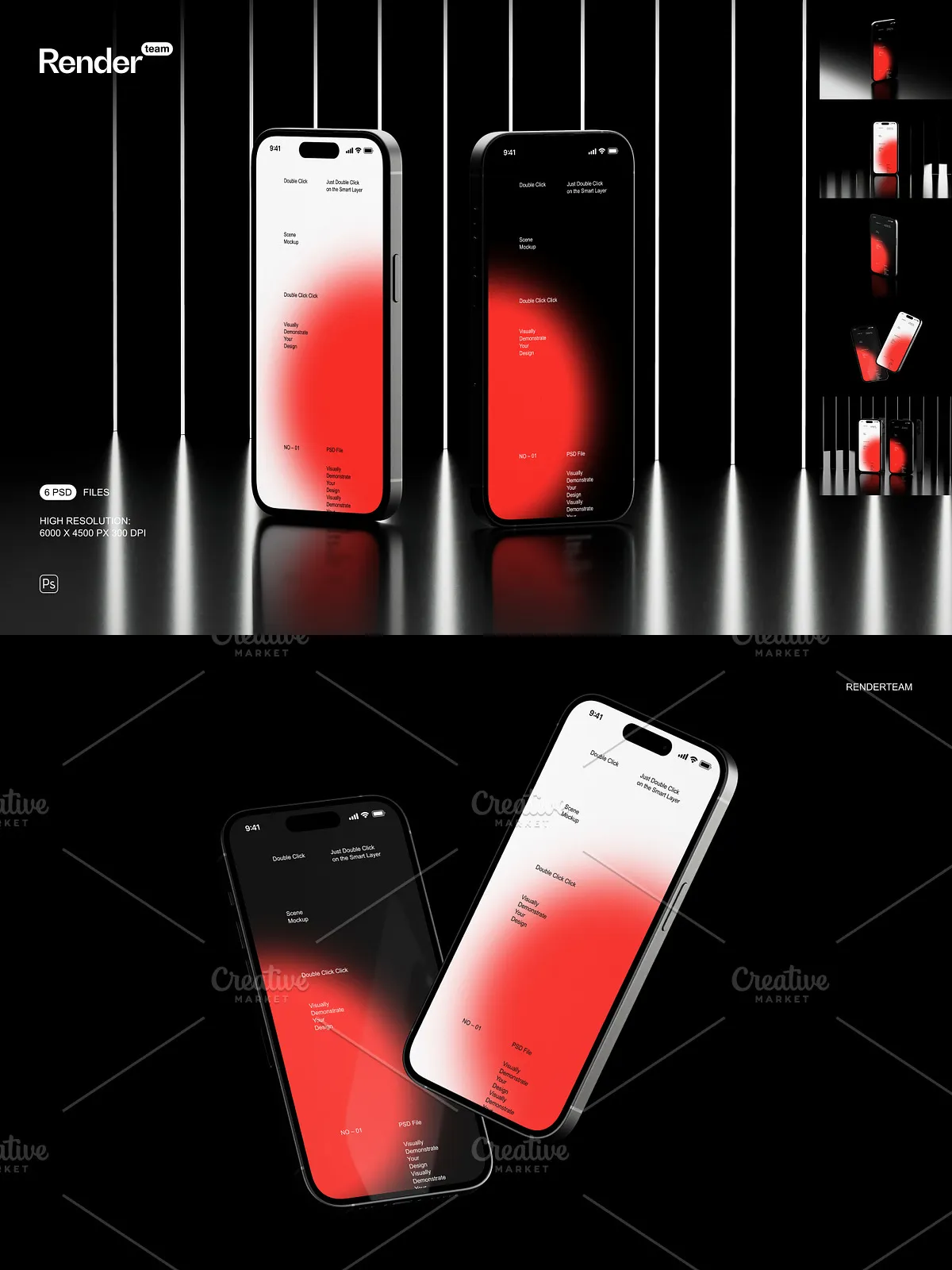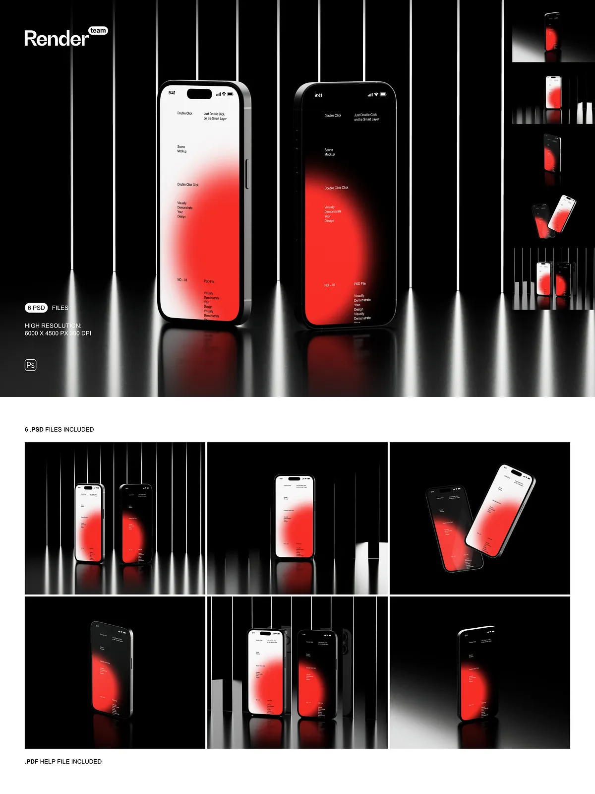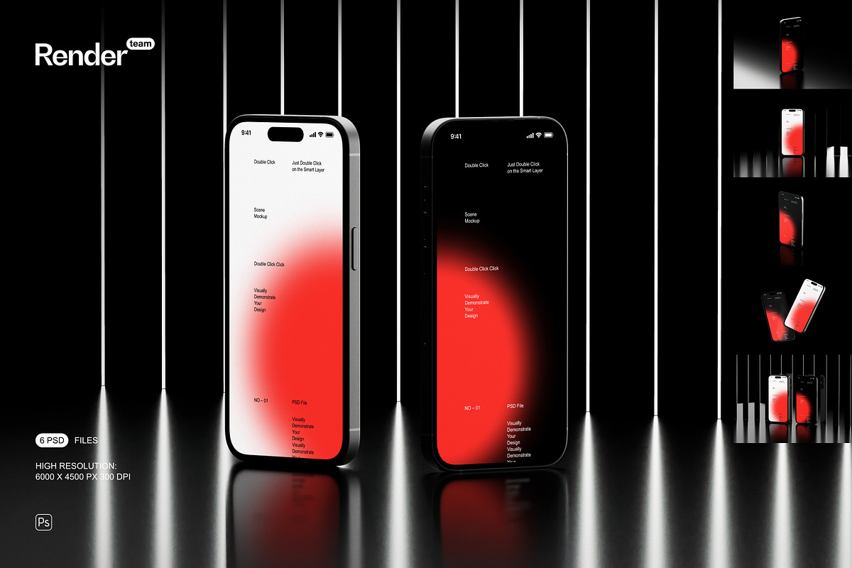 The iPhone 14 Pro Mockup Set is a collection of six meticulously crafted PSD templates designed to help designers, developers, and product teams present mobile interfaces with clarity and impact. Each mockup is layered and fully editable, enabling you to replace screen artwork through Smart Objects, adjust color layers, and compose polished presentation images without rebuilding scenes from scratch. Use these mockups to showcase app screens, UI concepts, web previews, or marketing visuals in a consistent, professional style.