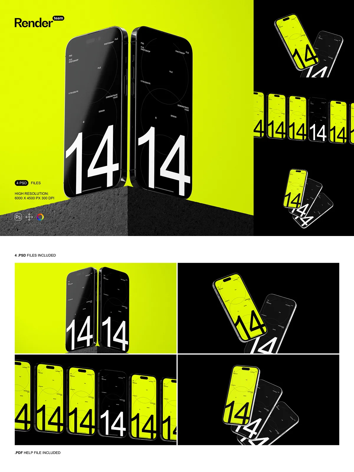- Comprehensive PDF help file with step-by-step editing guides, layer structure breakdowns, export recommendations, and compatibility notes for Adobe Photoshop CC 2018 and newer