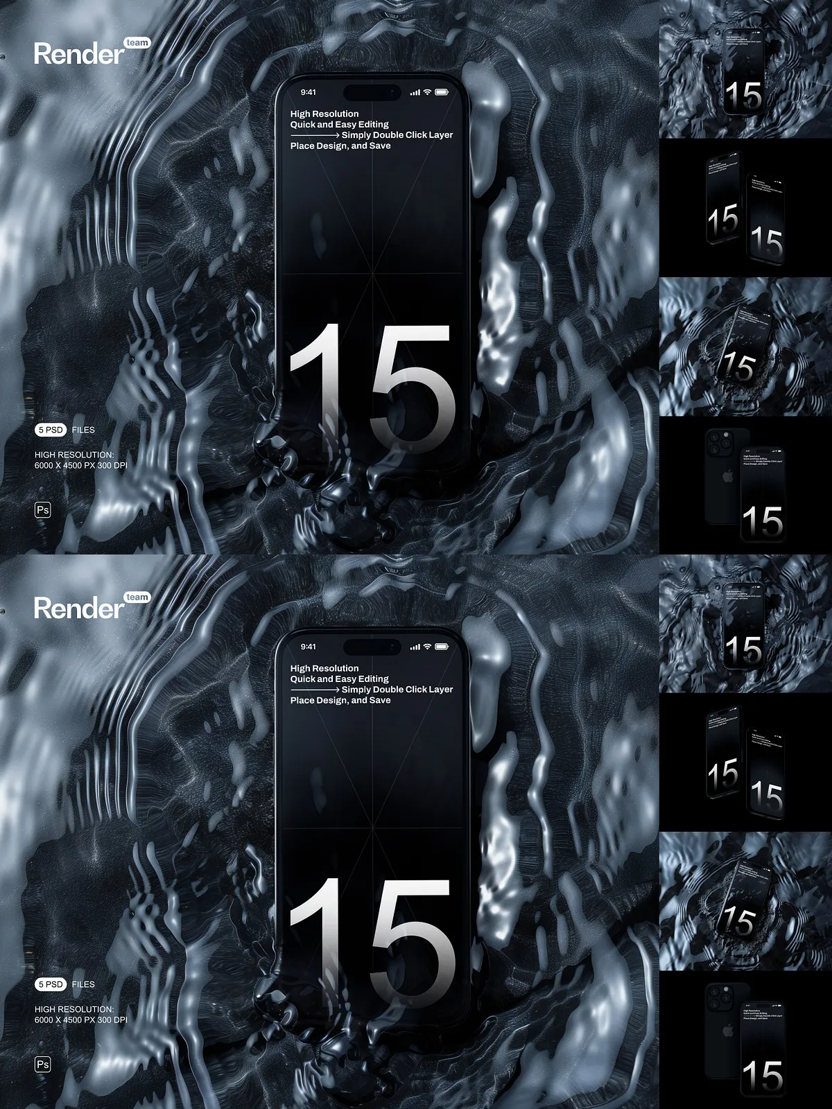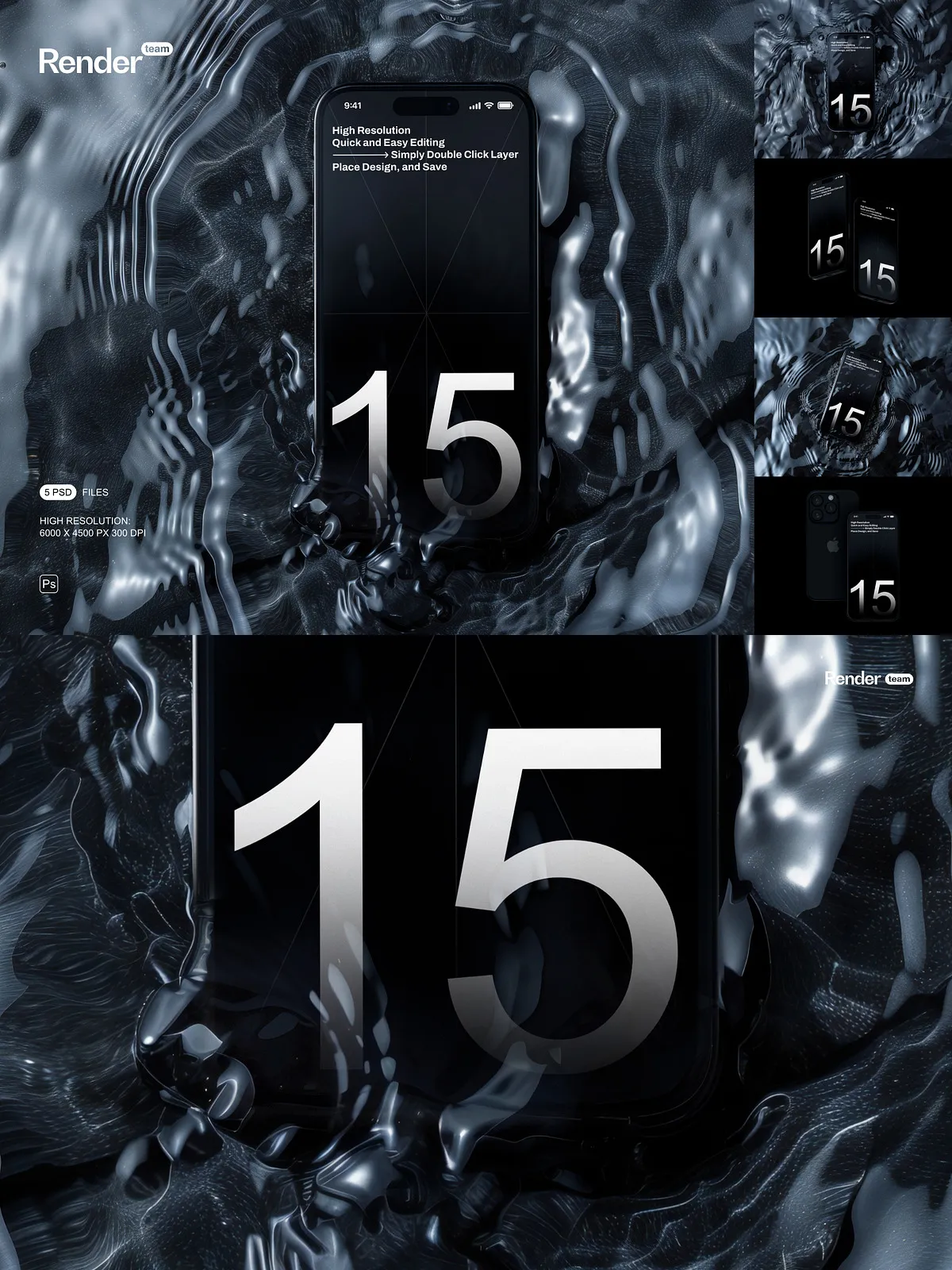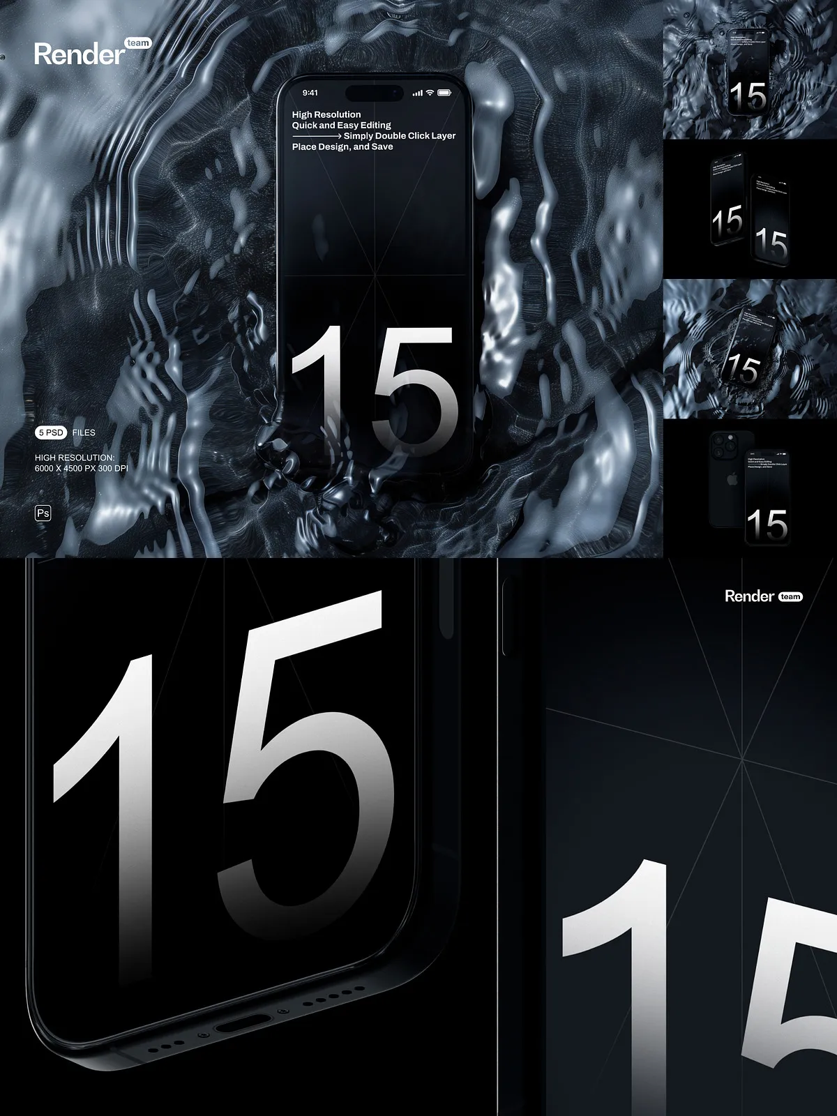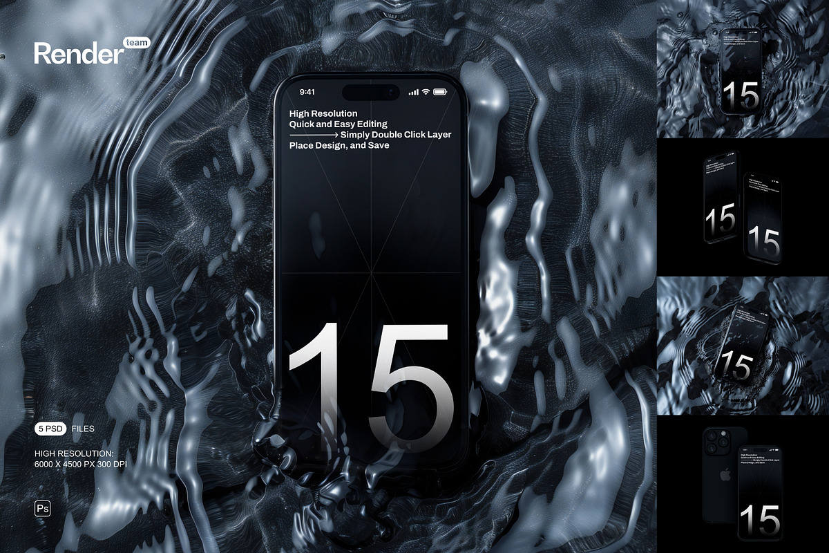 Unleash the full potential of your mobile application designs, website interfaces, and digital artwork with the iPhone 15 Pro Mockup Set. This premium collection boasts 5 meticulously crafted, layered, and fully editable PSD files, engineered to showcase your custom designs with unparalleled clarity and photorealistic precision. Whether you’re a seasoned UI/UX designer, an innovative app developer, or a forward-thinking marketing professional, these mockups provide the ultimate platform to bring your creative visions to life on the highly anticipated iPhone 15 Pro.