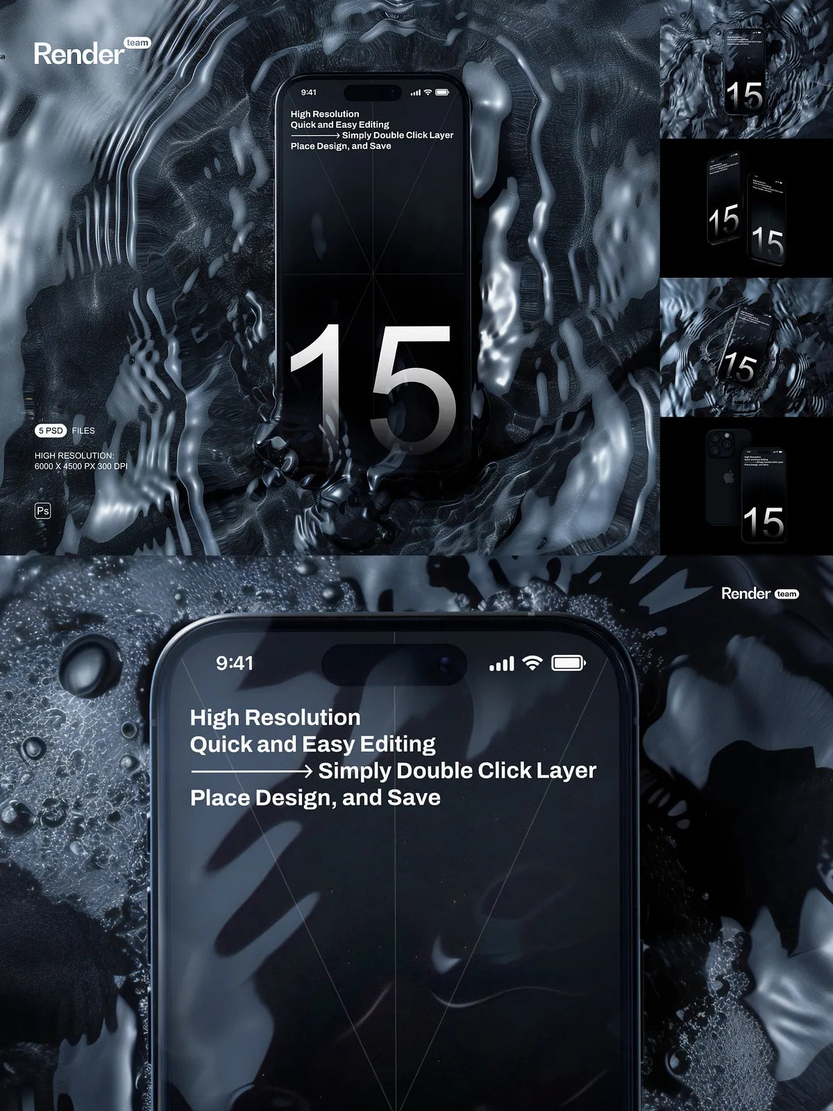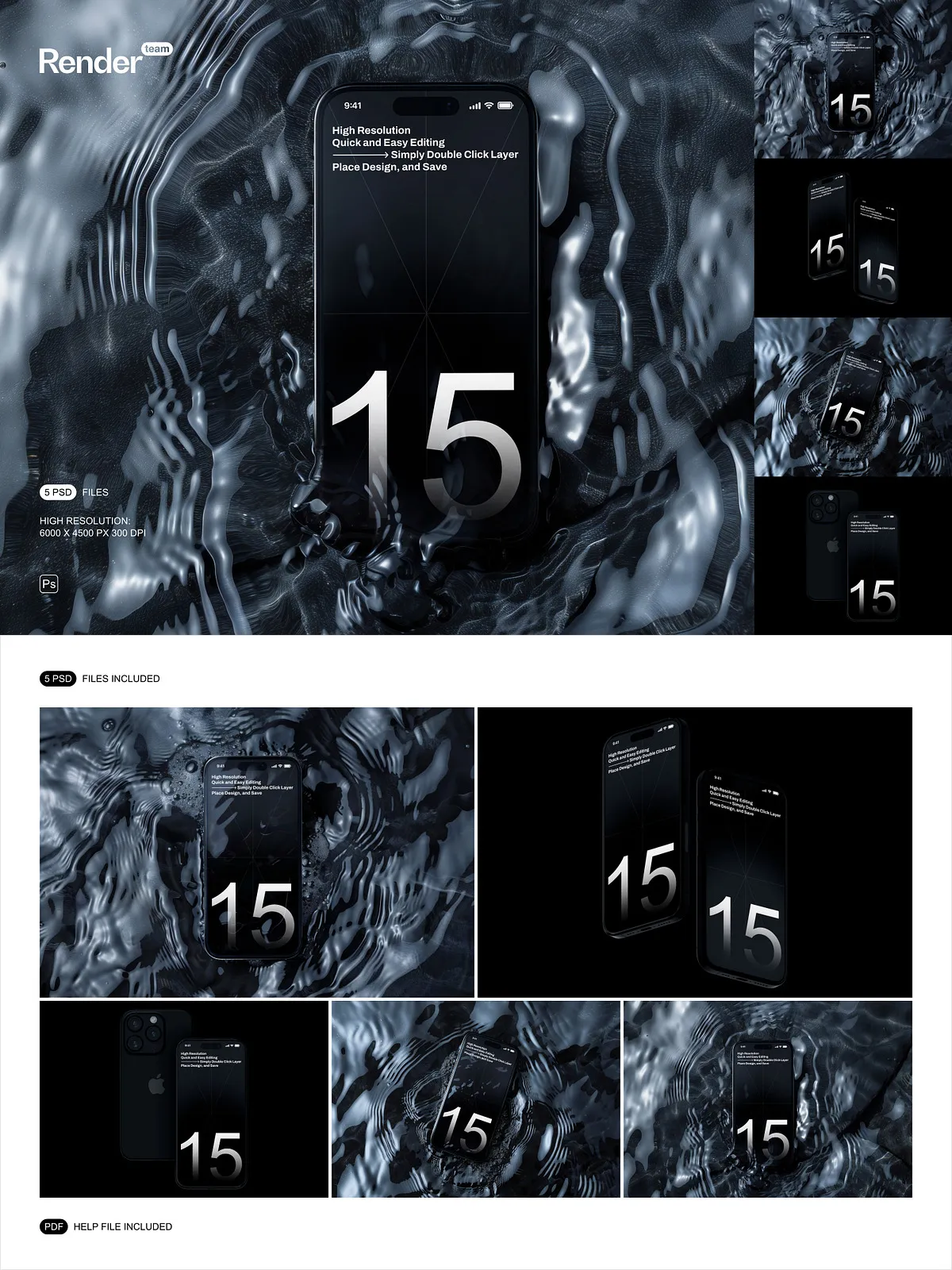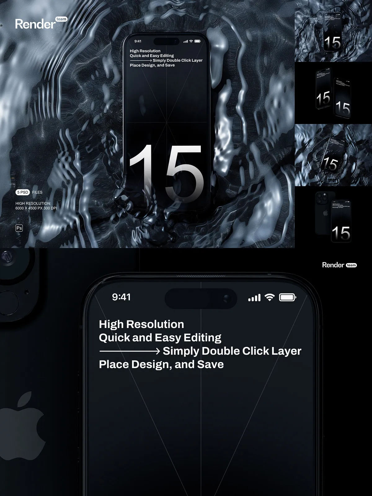 Unleash the full potential of your mobile application designs, website interfaces, and digital artwork with the iPhone 15 Pro Mockup Set. This premium collection boasts 5 meticulously crafted, layered, and fully editable PSD files, engineered to showcase your custom designs with unparalleled clarity and photorealistic precision. Whether you’re a seasoned UI/UX designer, an innovative app developer, or a forward-thinking marketing professional, these mockups provide the ultimate platform to bring your creative visions to life on the highly anticipated iPhone 15 Pro.
