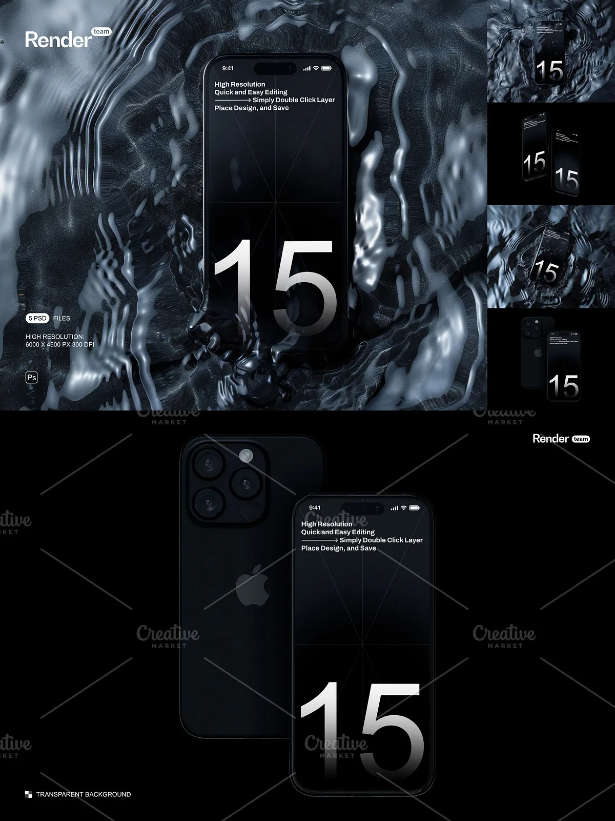 - Fully isolated device elements and adjustable shadows – Gain absolute creative control. Easily reposition the iPhone 15 Pro within the scene, resize elements, or fine-tune the intensity and direction of shadows to create dramatic visual effects and heighten the sense of realism.
