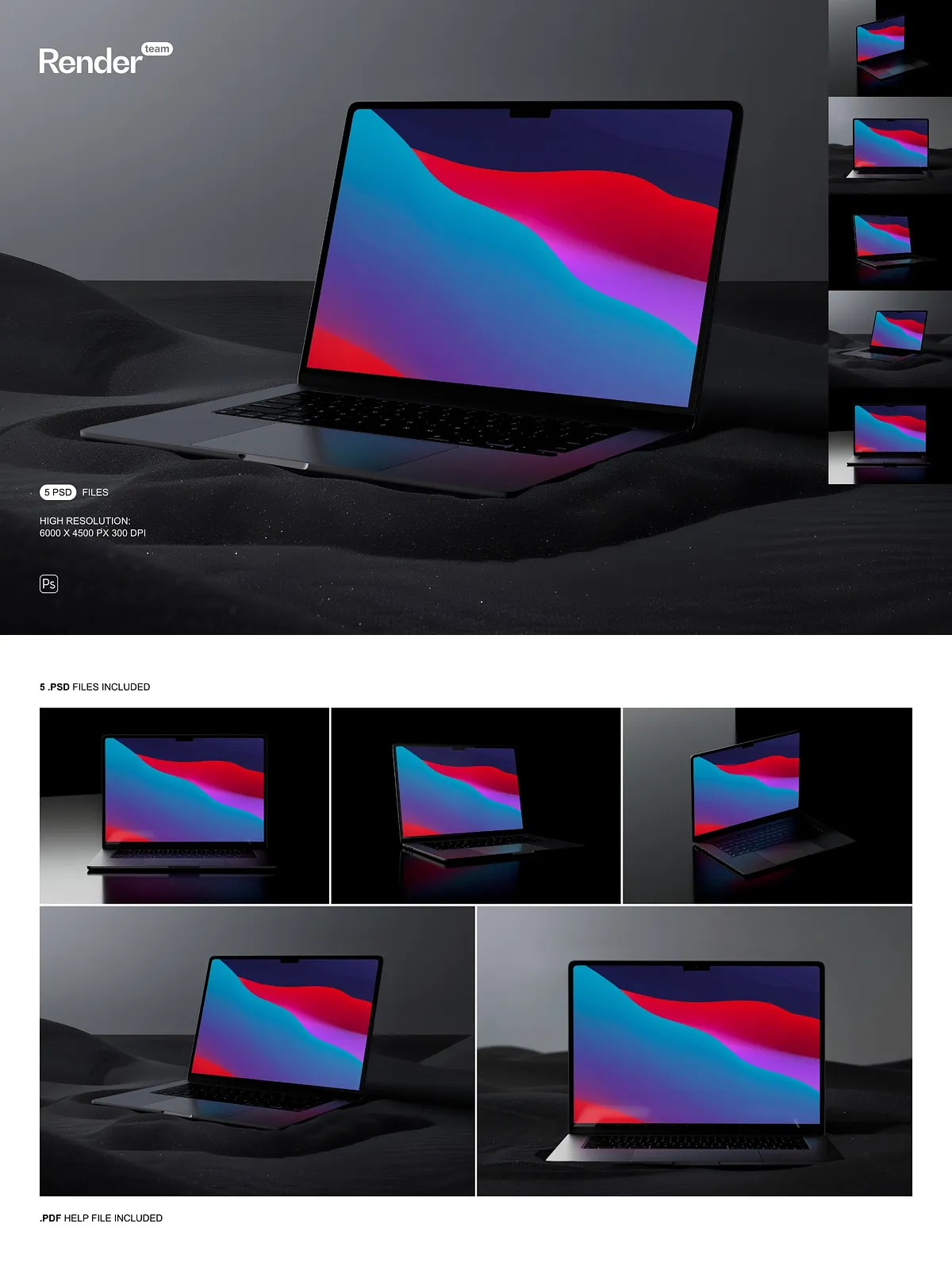 • 5 fully layered PSD mockup files ready for Smart Object replacement