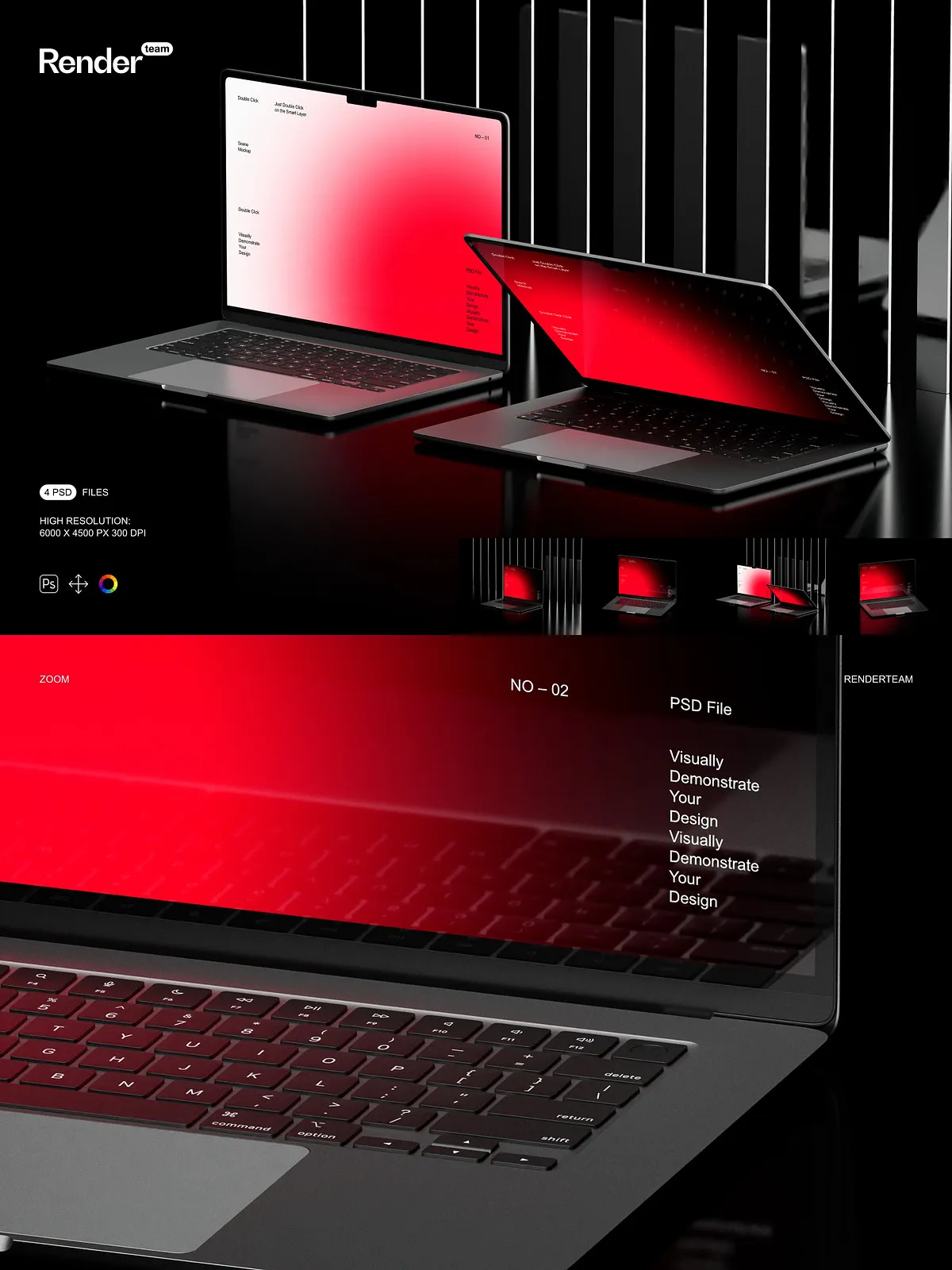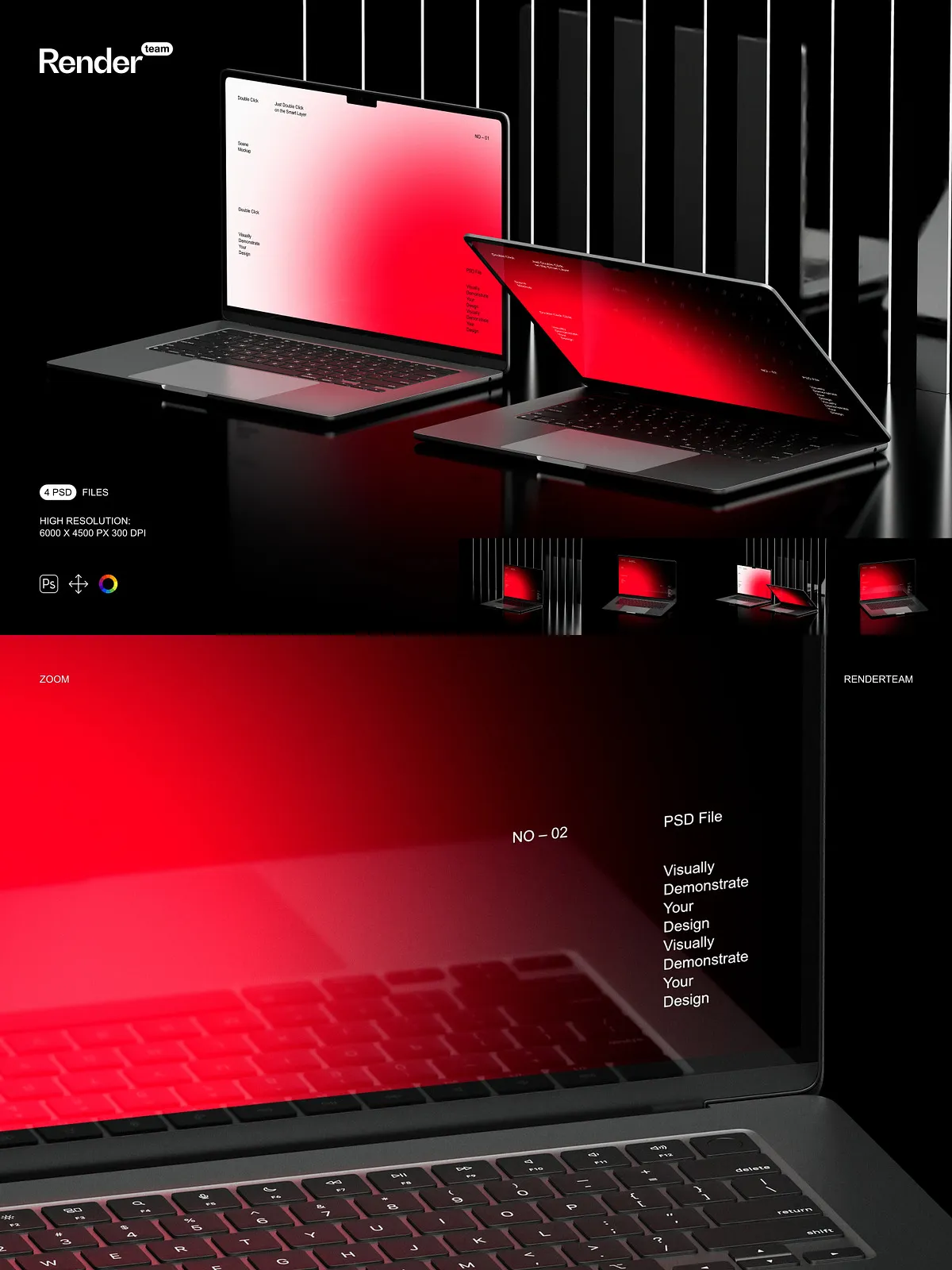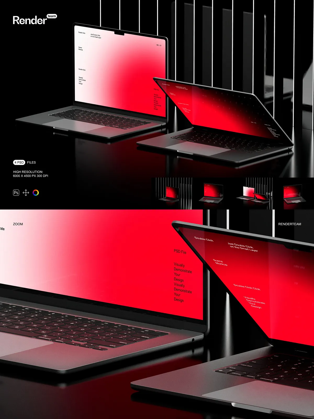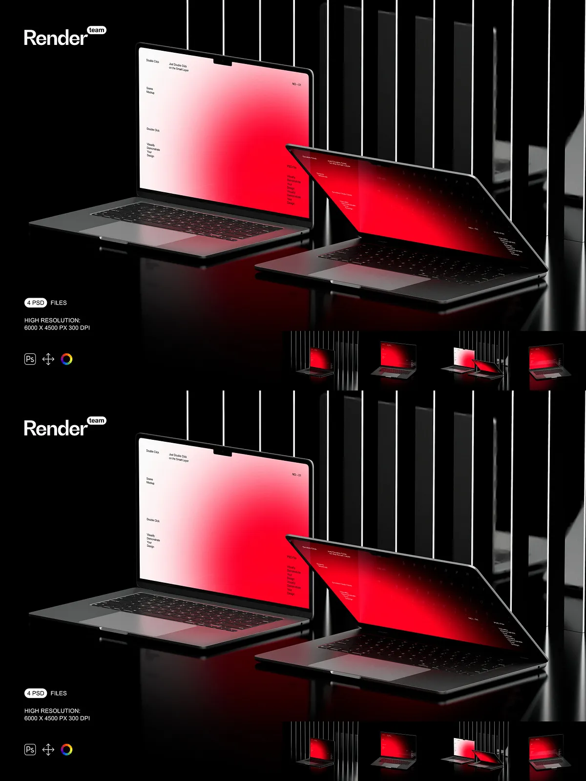 Experience seamless design integration through the revolutionary Smart Object feature. Our intuitive workflow allows you to effortlessly embed your design into the MacBook Air screen with just a few clicks. Simply double-click on the designated Smart Object layer, place your artwork, save, and watch your design instantly conform to the device’s screen—perfectly scaled, accurately perspective-corrected, and impeccably rendered. This streamlined process eliminates time-consuming manual adjustments, freeing you to focus on creativity rather than complex technicalities.