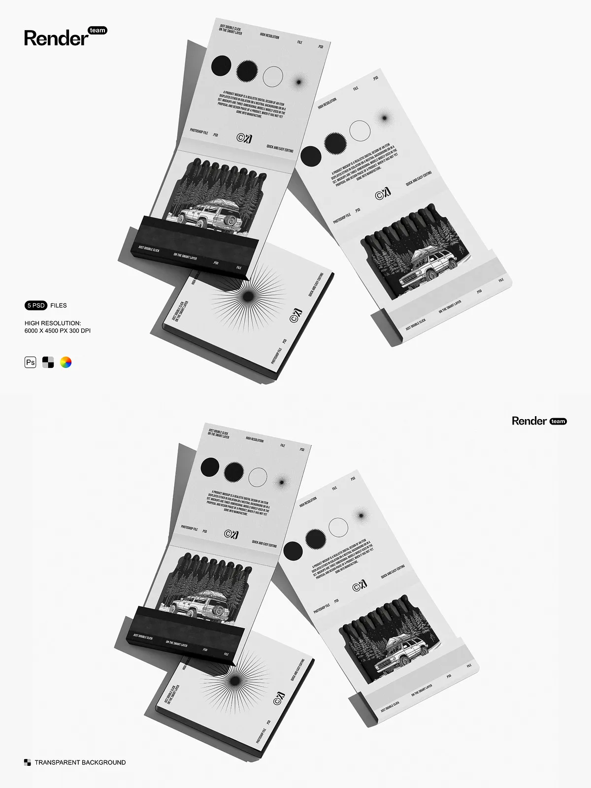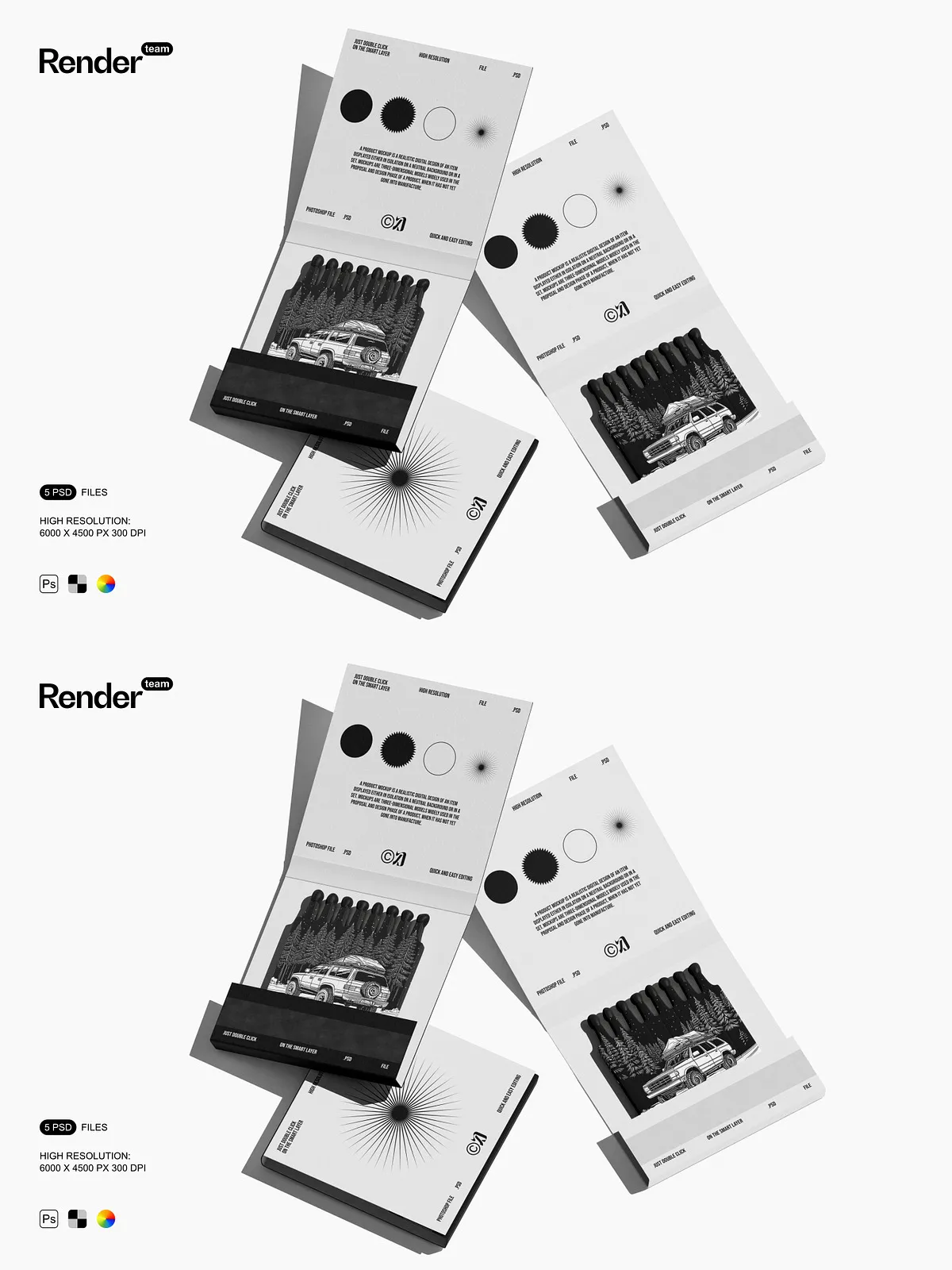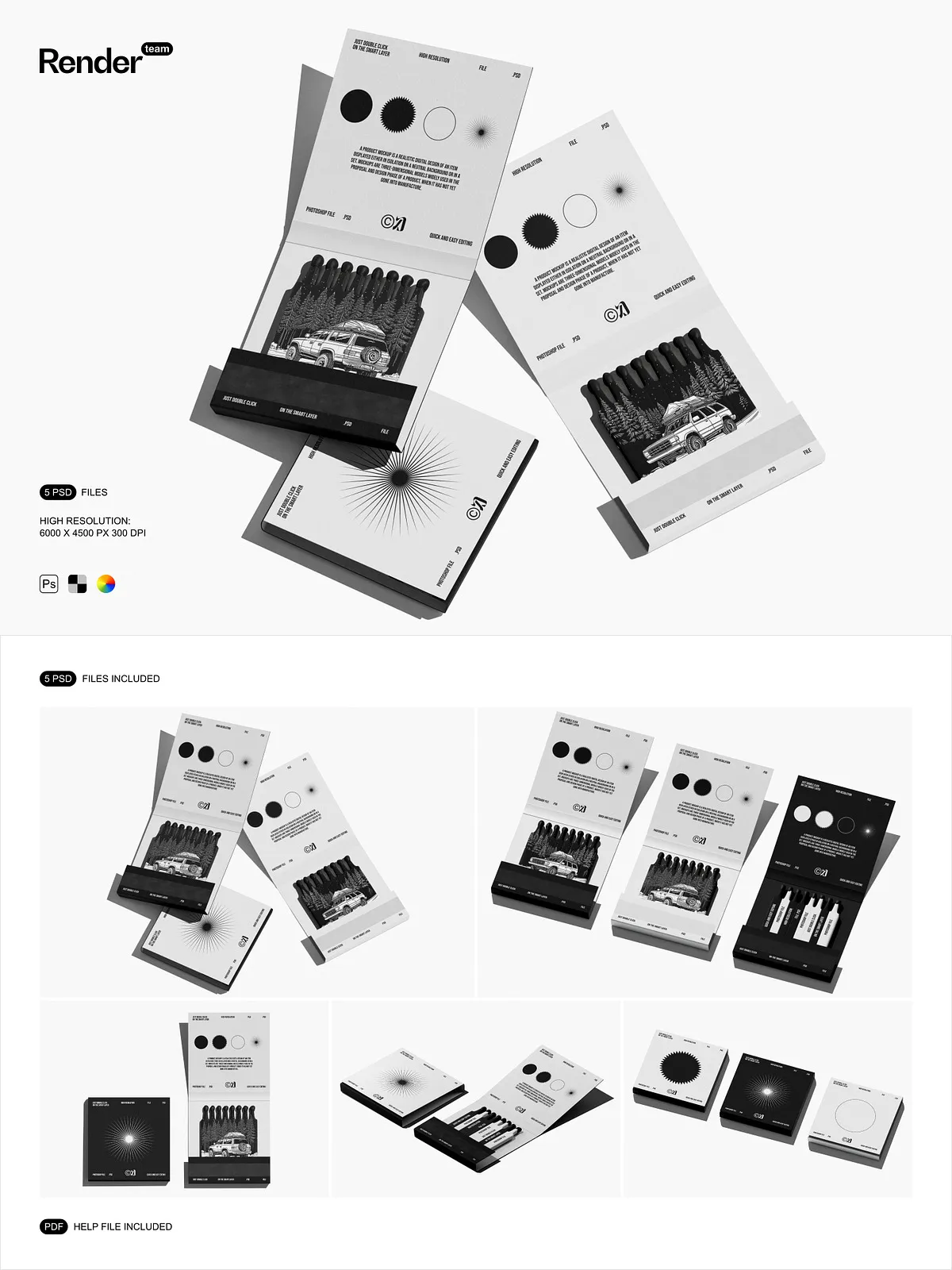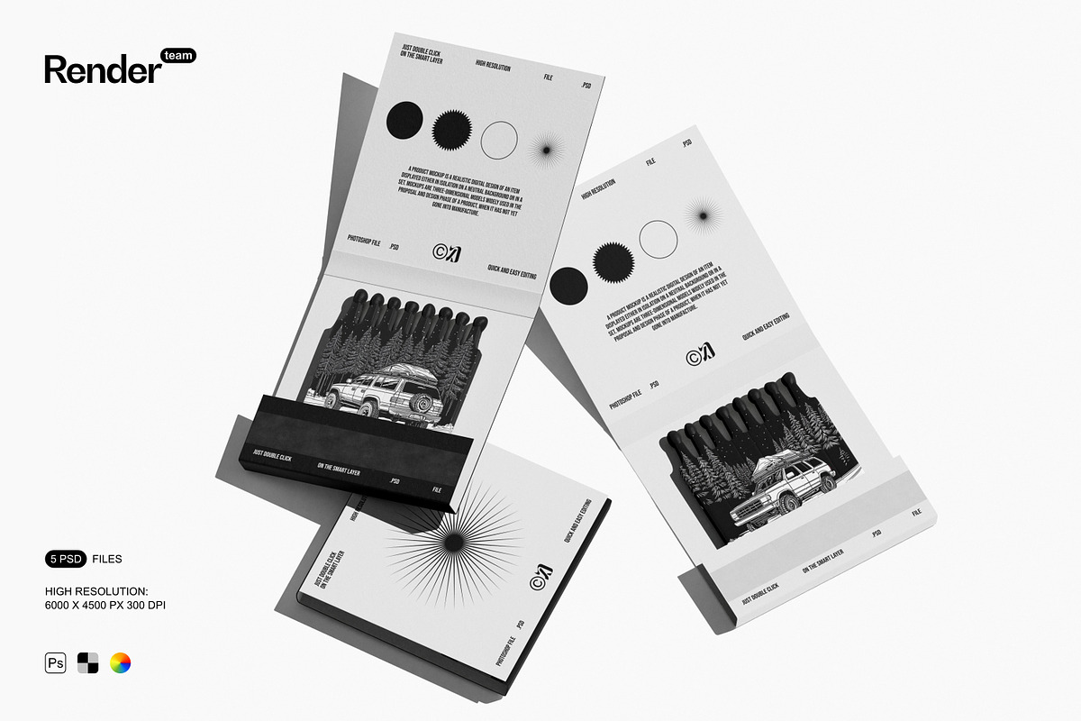 Use these mockups to create compelling visuals for product listings, social media posts, branding kits, campaign mockups, and client presentations. They provide instant visual credibility, helping customers connect with your brand on a deeper level. Whether launching a new matchbox line or showcasing a packaging redesign, the Matches Mockup Set ensures your vision stands out with clarity, confidence, and creative power.