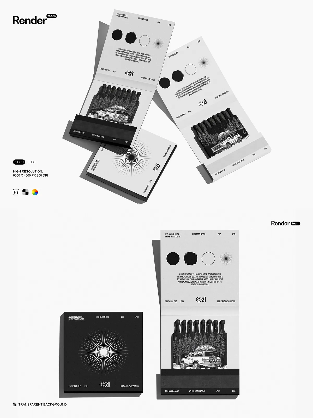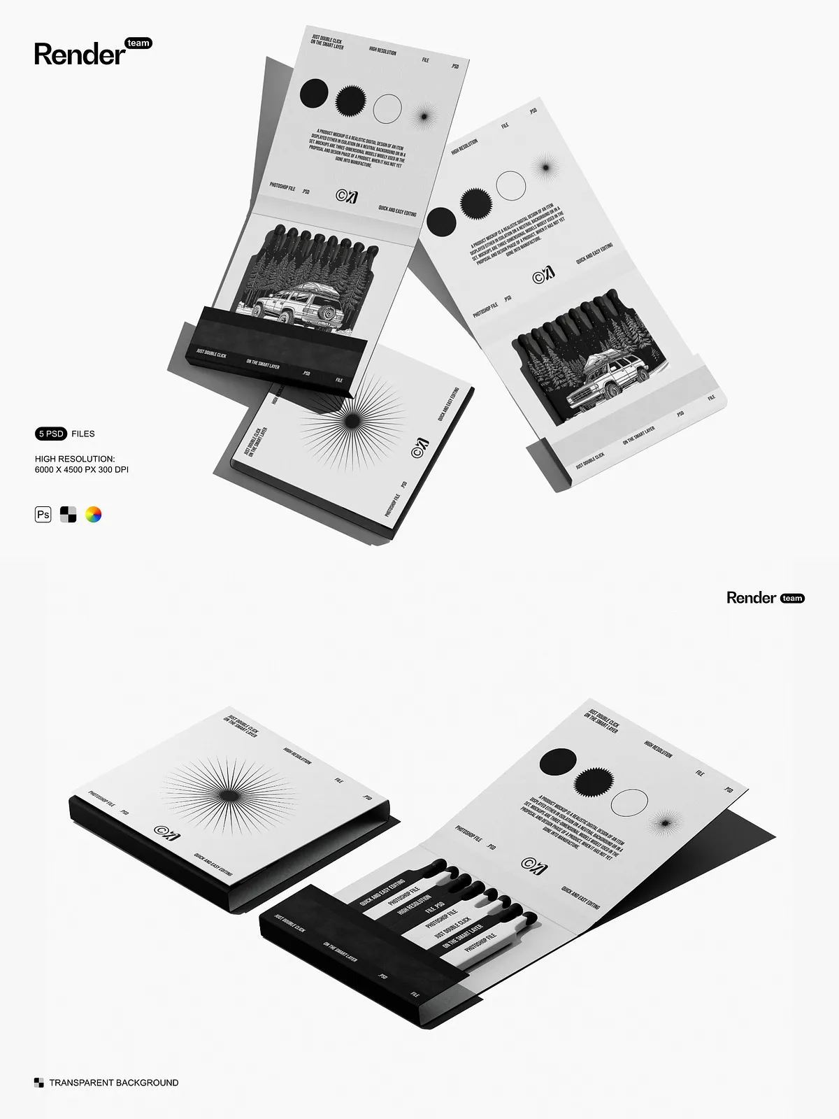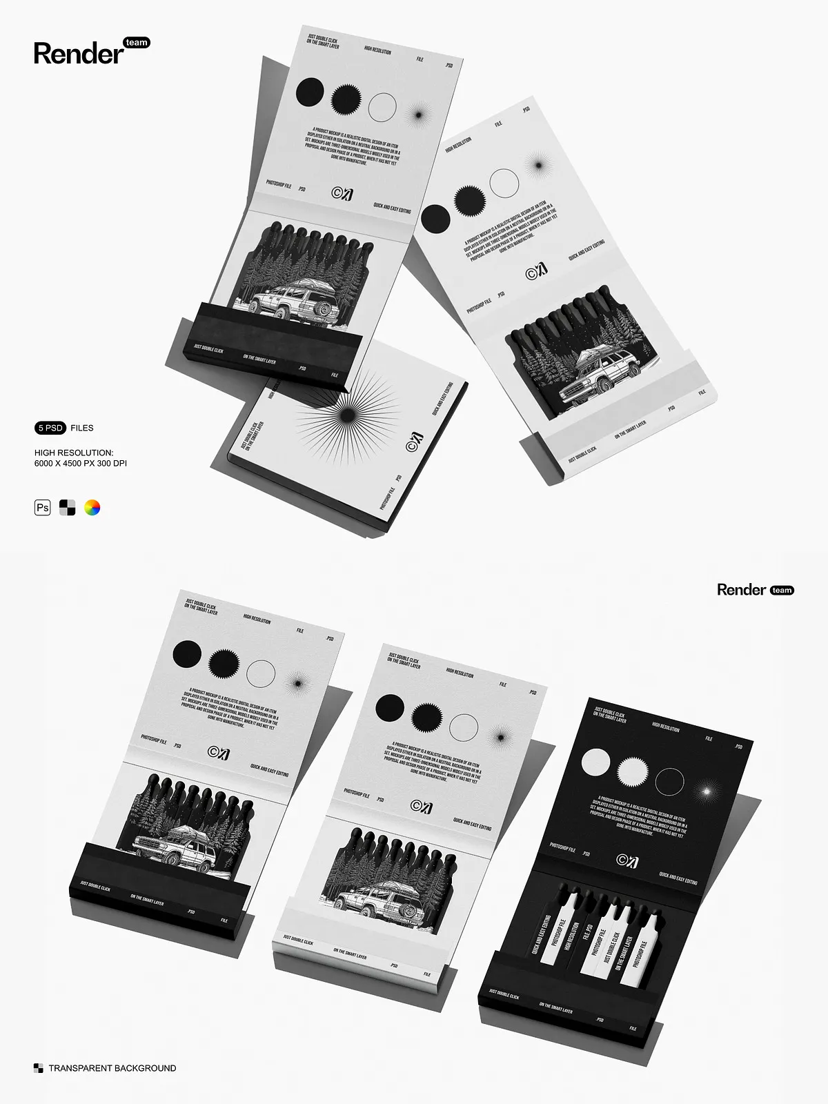Use these mockups to create compelling visuals for product listings, social media posts, branding kits, campaign mockups, and client presentations. They provide instant visual credibility, helping customers connect with your brand on a deeper level. Whether launching a new matchbox line or showcasing a packaging redesign, the Matches Mockup Set ensures your vision stands out with clarity, confidence, and creative power.