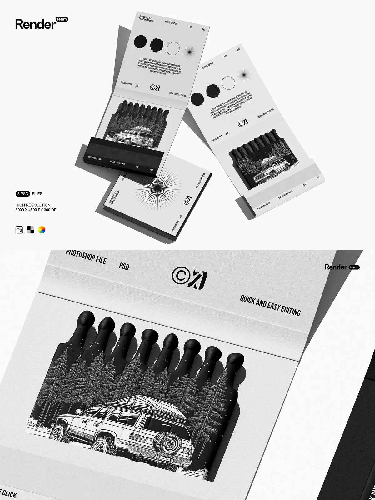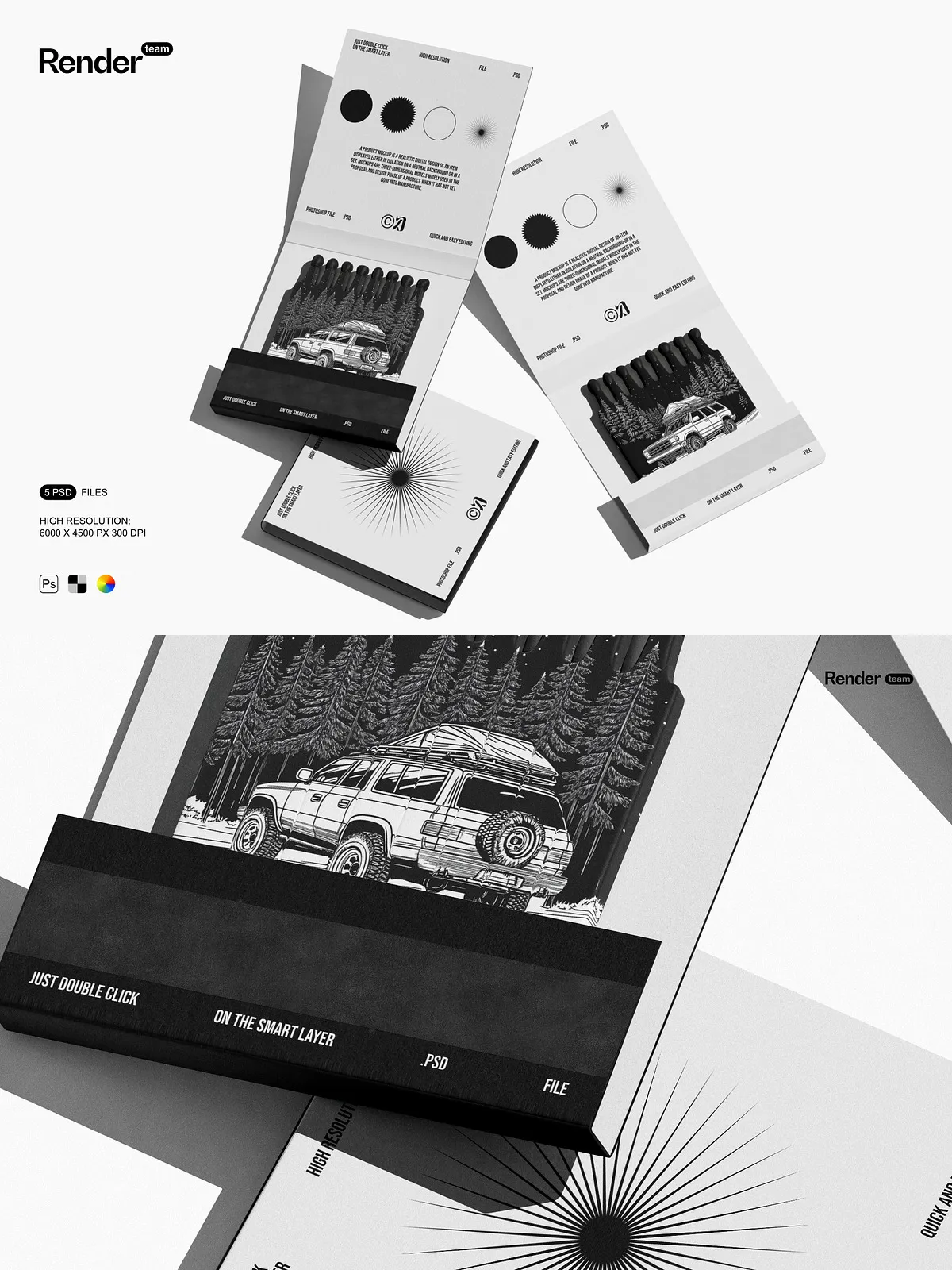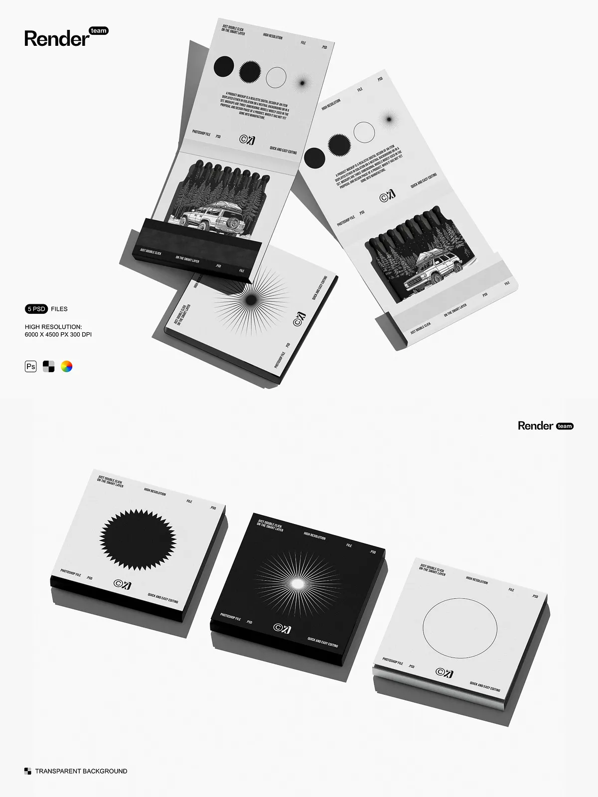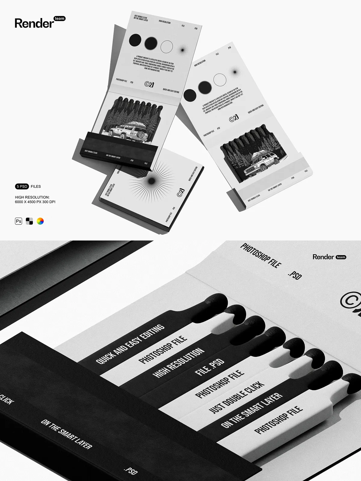 Use these mockups to create compelling visuals for product listings, social media posts, branding kits, campaign mockups, and client presentations. They provide instant visual credibility, helping customers connect with your brand on a deeper level. Whether launching a new matchbox line or showcasing a packaging redesign, the Matches Mockup Set ensures your vision stands out with clarity, confidence, and creative power.