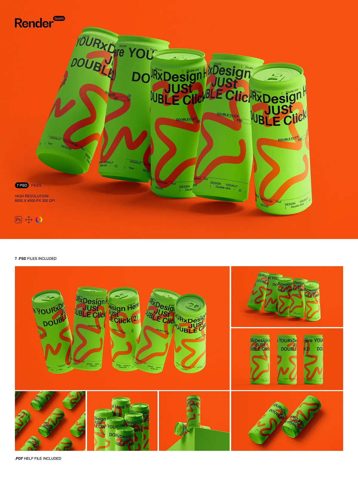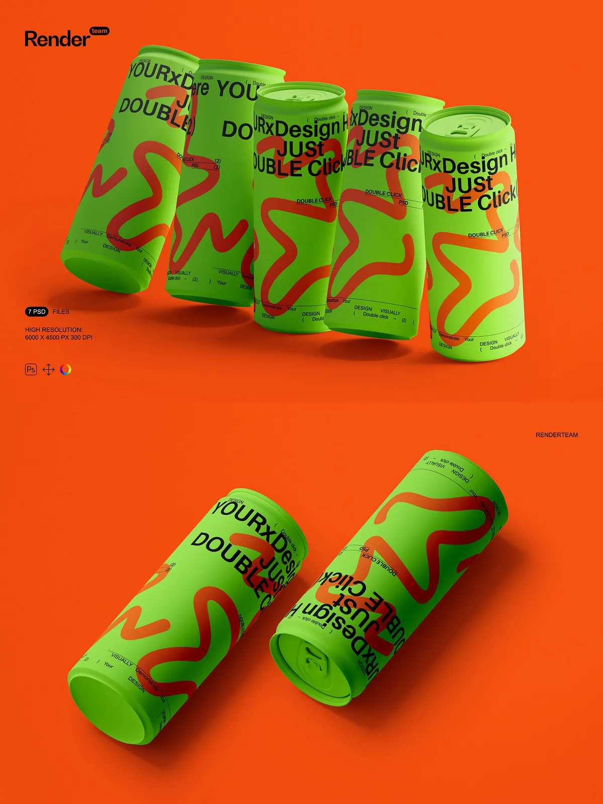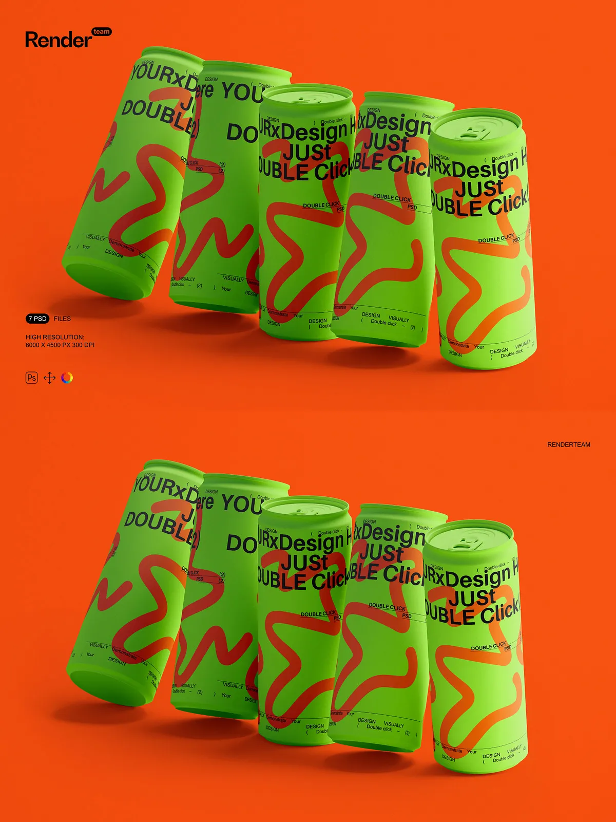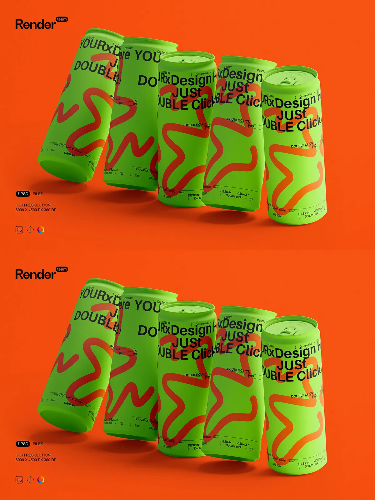 Explore a diverse range of presentation styles with seven distinct setups, each designed to highlight your product in a different setting. From single can displays to dynamic group arrangements, these scenes help you showcase your design from multiple angles, ensuring a compelling visual narrative.