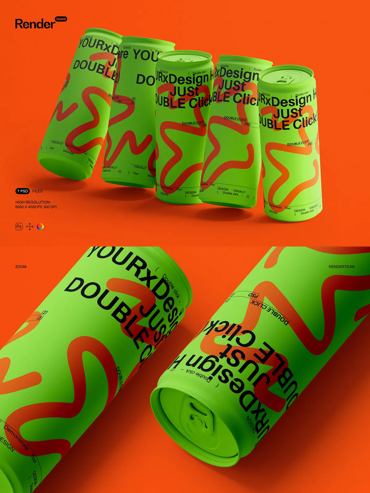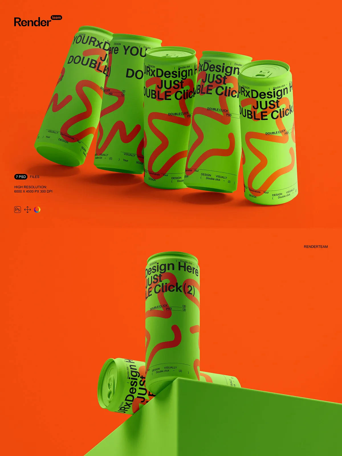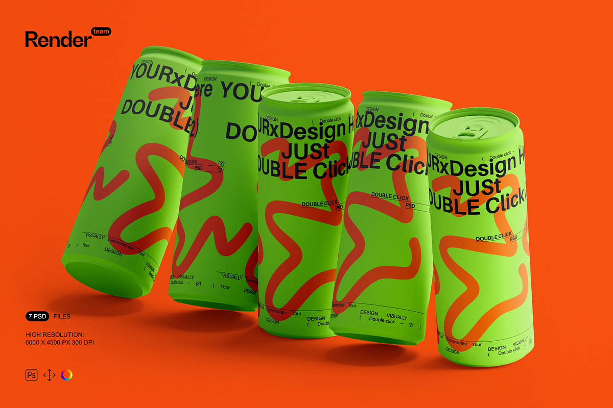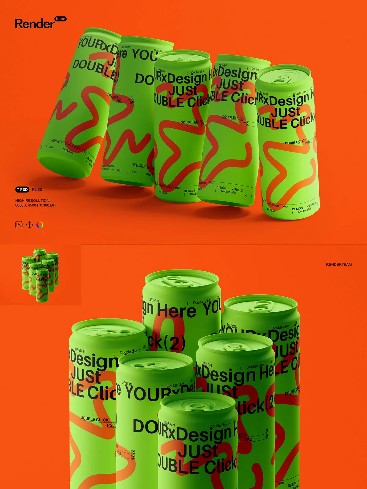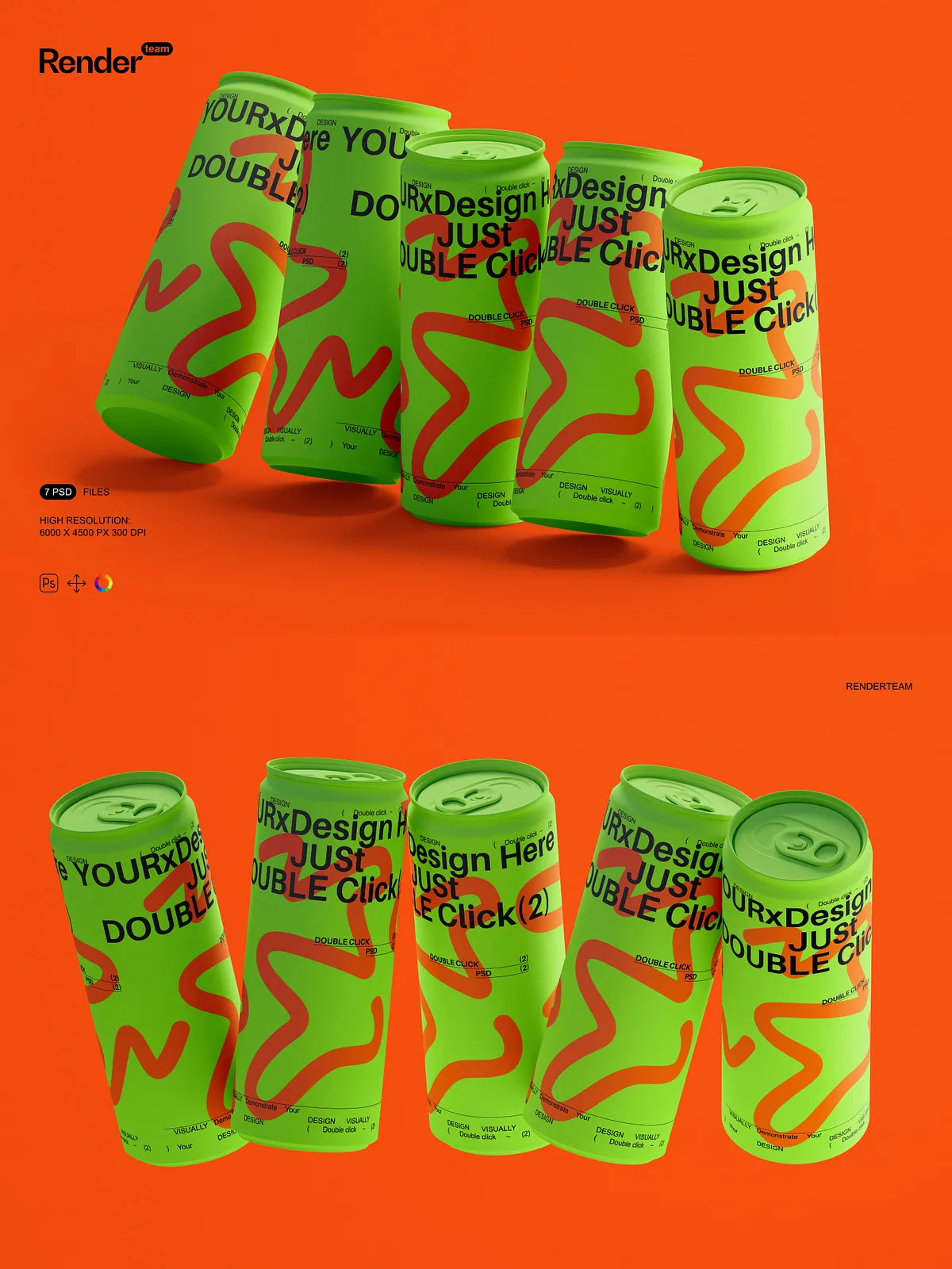 Explore a diverse range of presentation styles with seven distinct setups, each designed to highlight your product in a different setting. From single can displays to dynamic group arrangements, these scenes help you showcase your design from multiple angles, ensuring a compelling visual narrative.