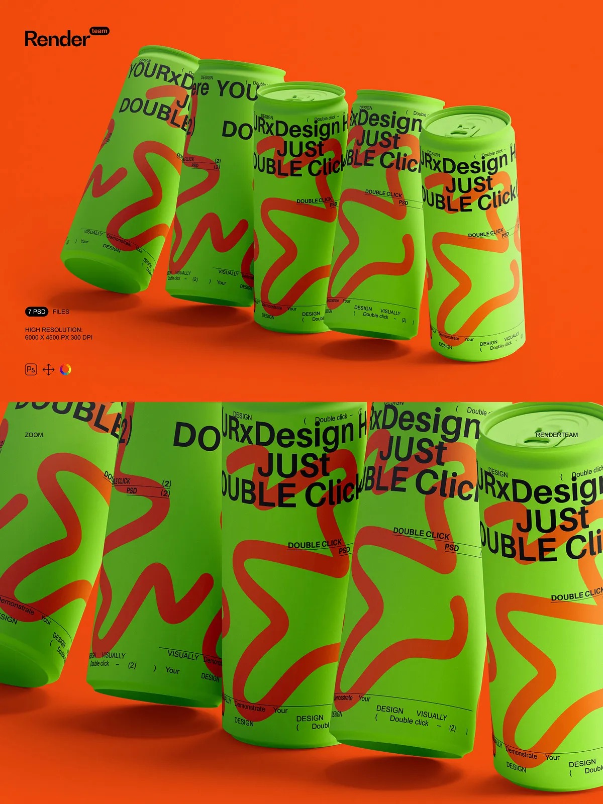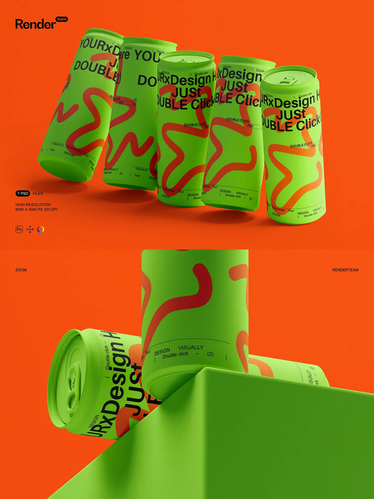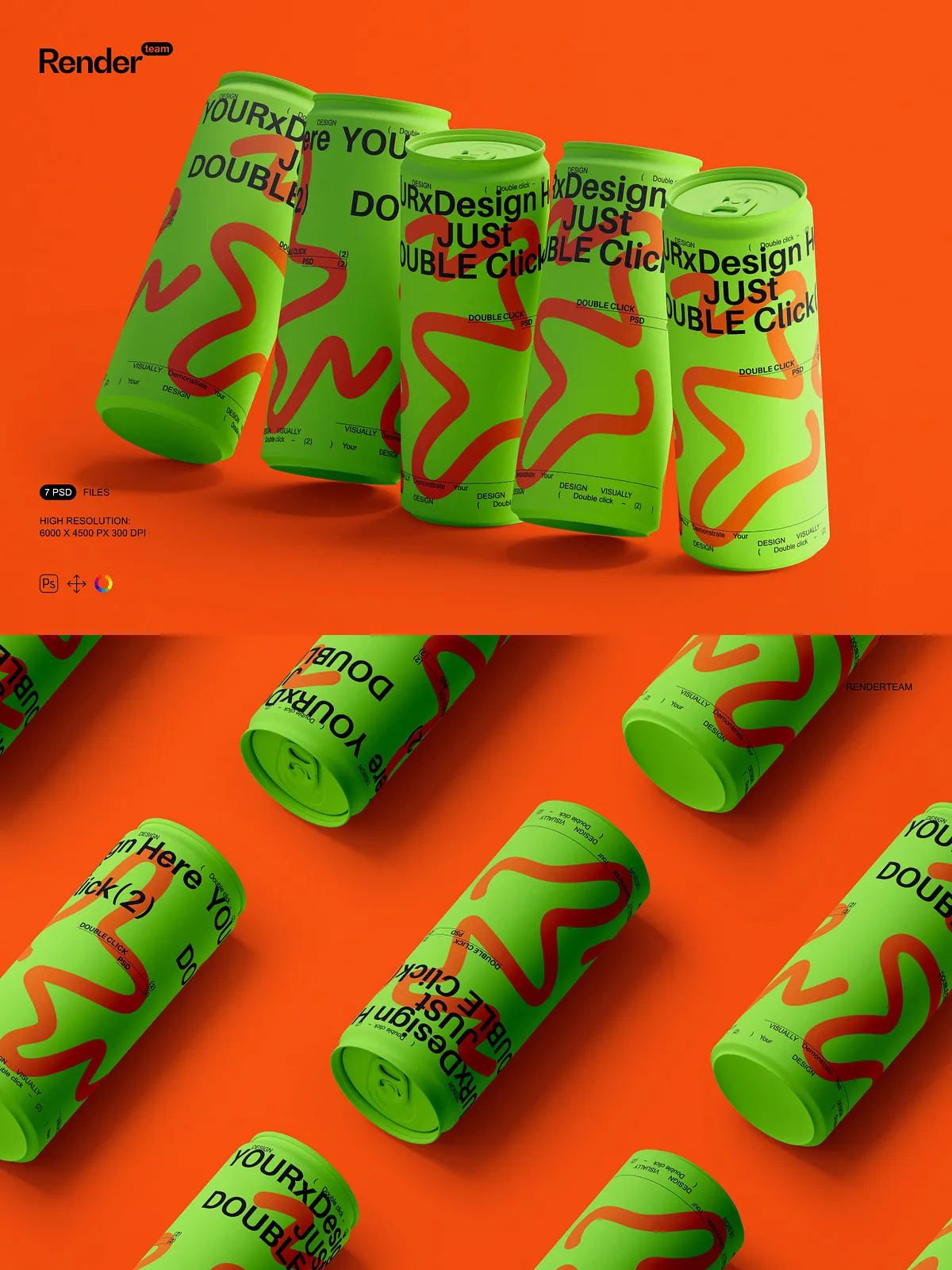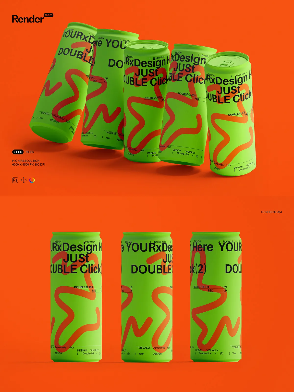 Explore a diverse range of presentation styles with seven distinct setups, each designed to highlight your product in a different setting. From single can displays to dynamic group arrangements, these scenes help you showcase your design from multiple angles, ensuring a compelling visual narrative.