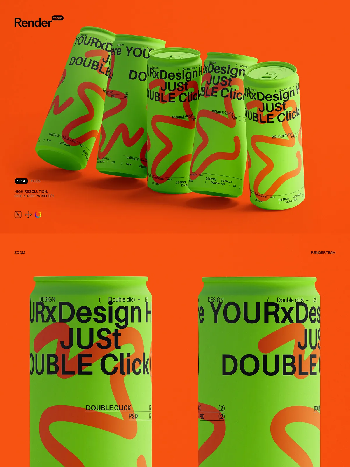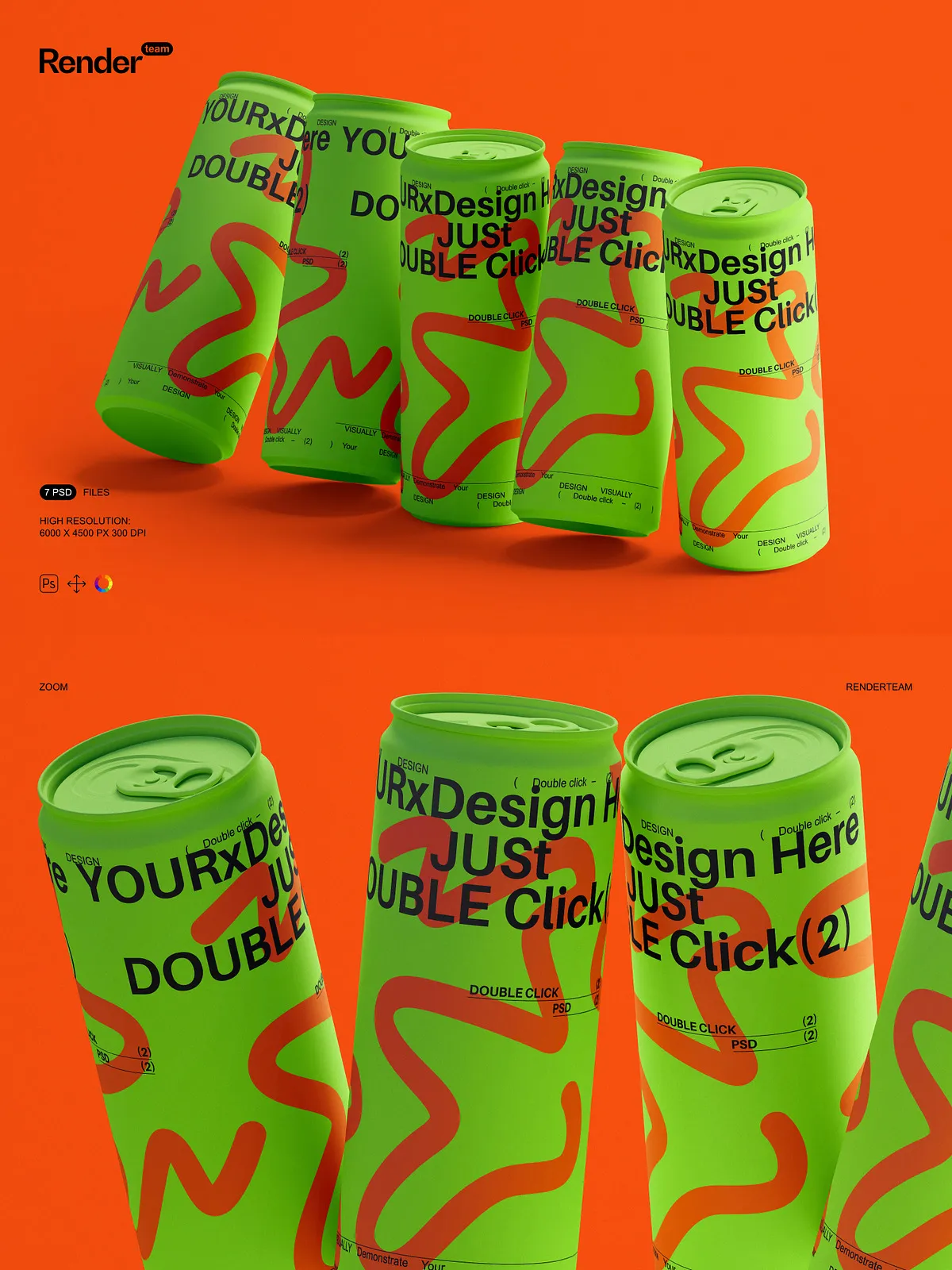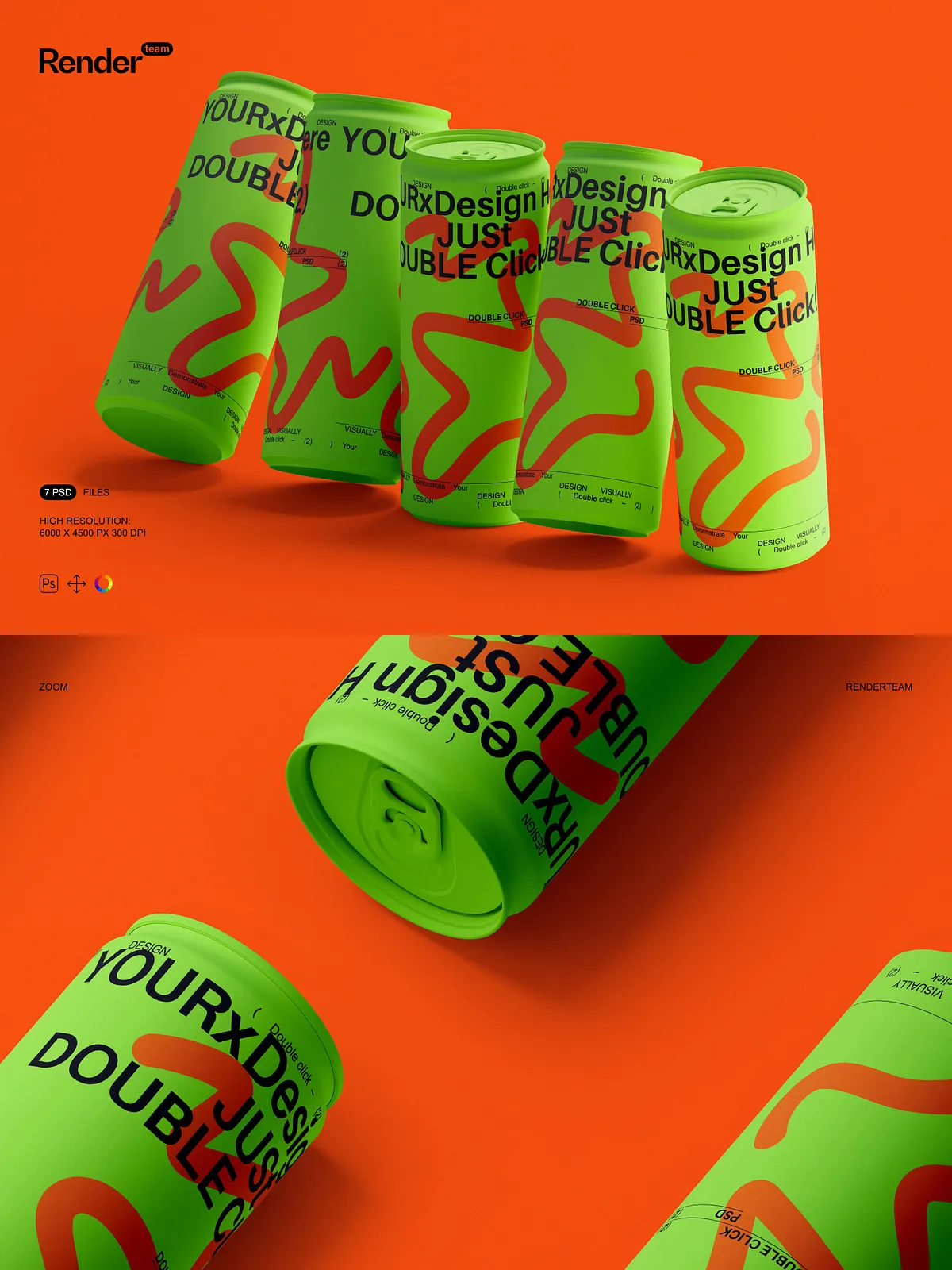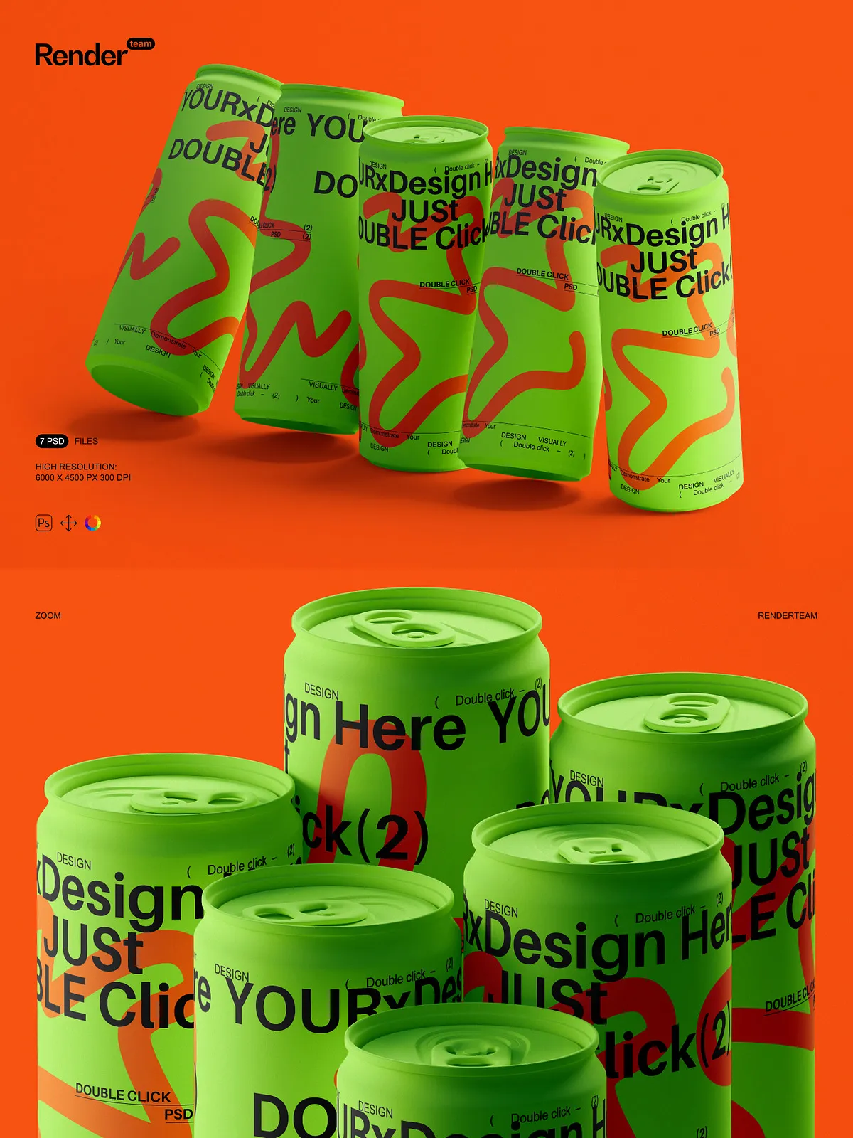 Explore a diverse range of presentation styles with seven distinct setups, each designed to highlight your product in a different setting. From single can displays to dynamic group arrangements, these scenes help you showcase your design from multiple angles, ensuring a compelling visual narrative.