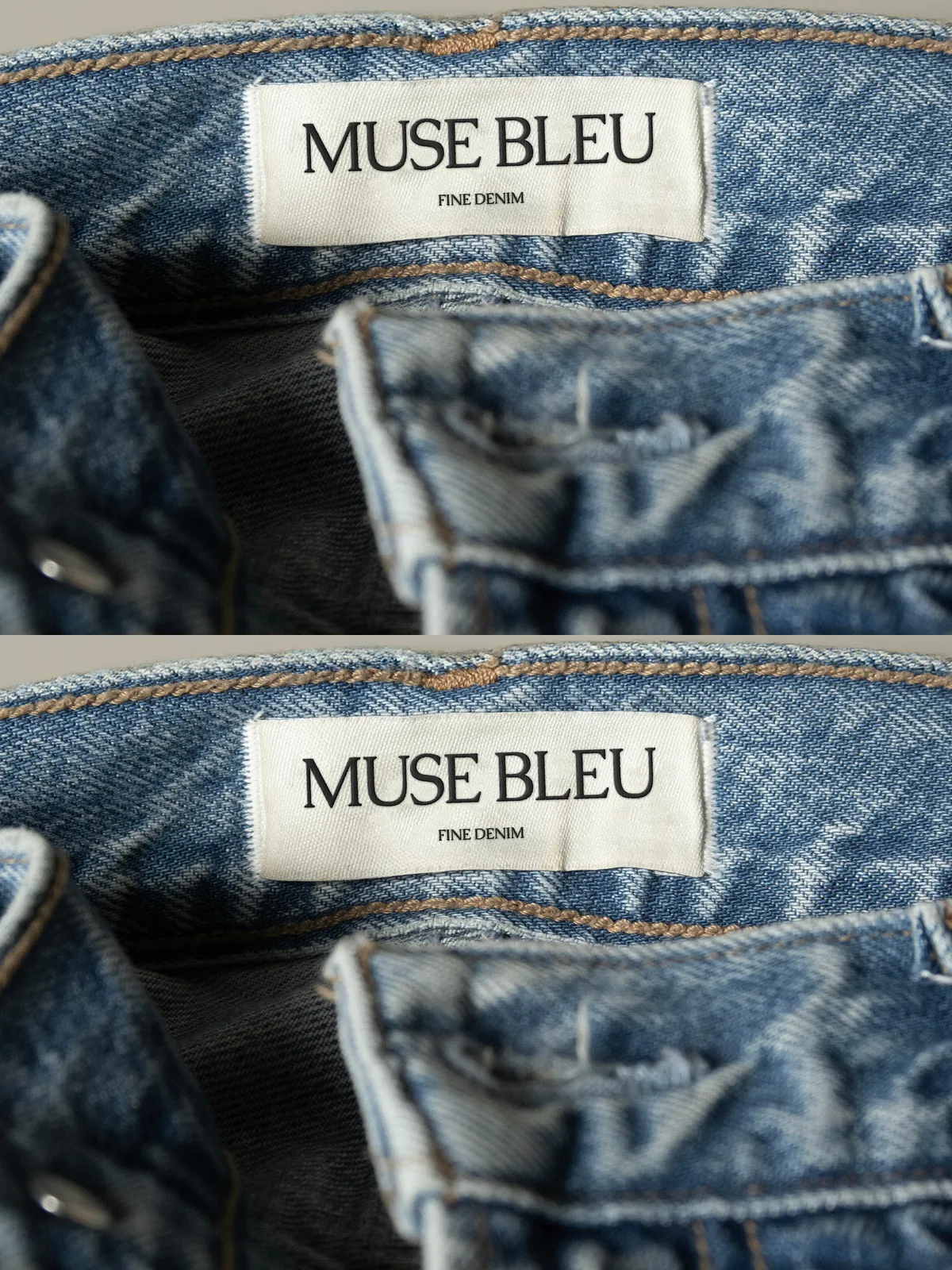 True to life, MUSE BLEU replicates the nuanced texture of actual denim embroidery. The mockups are built with attention to physical detail: