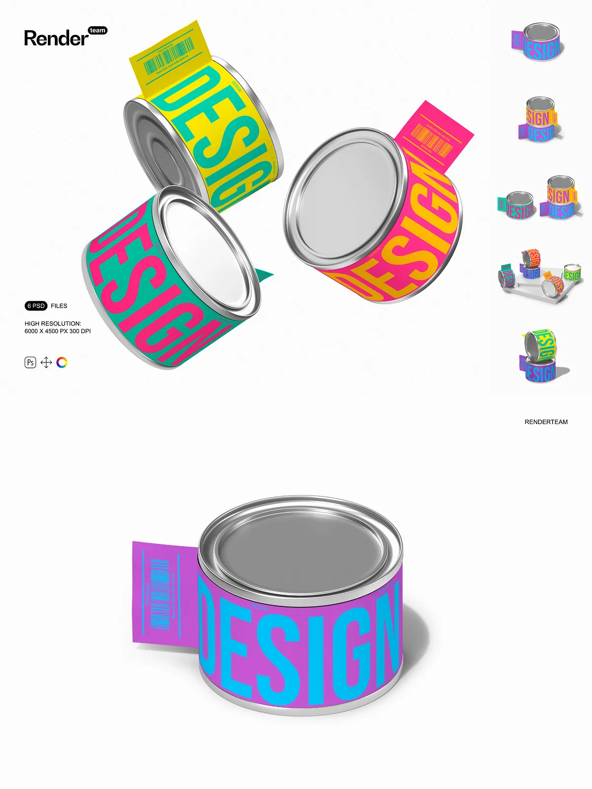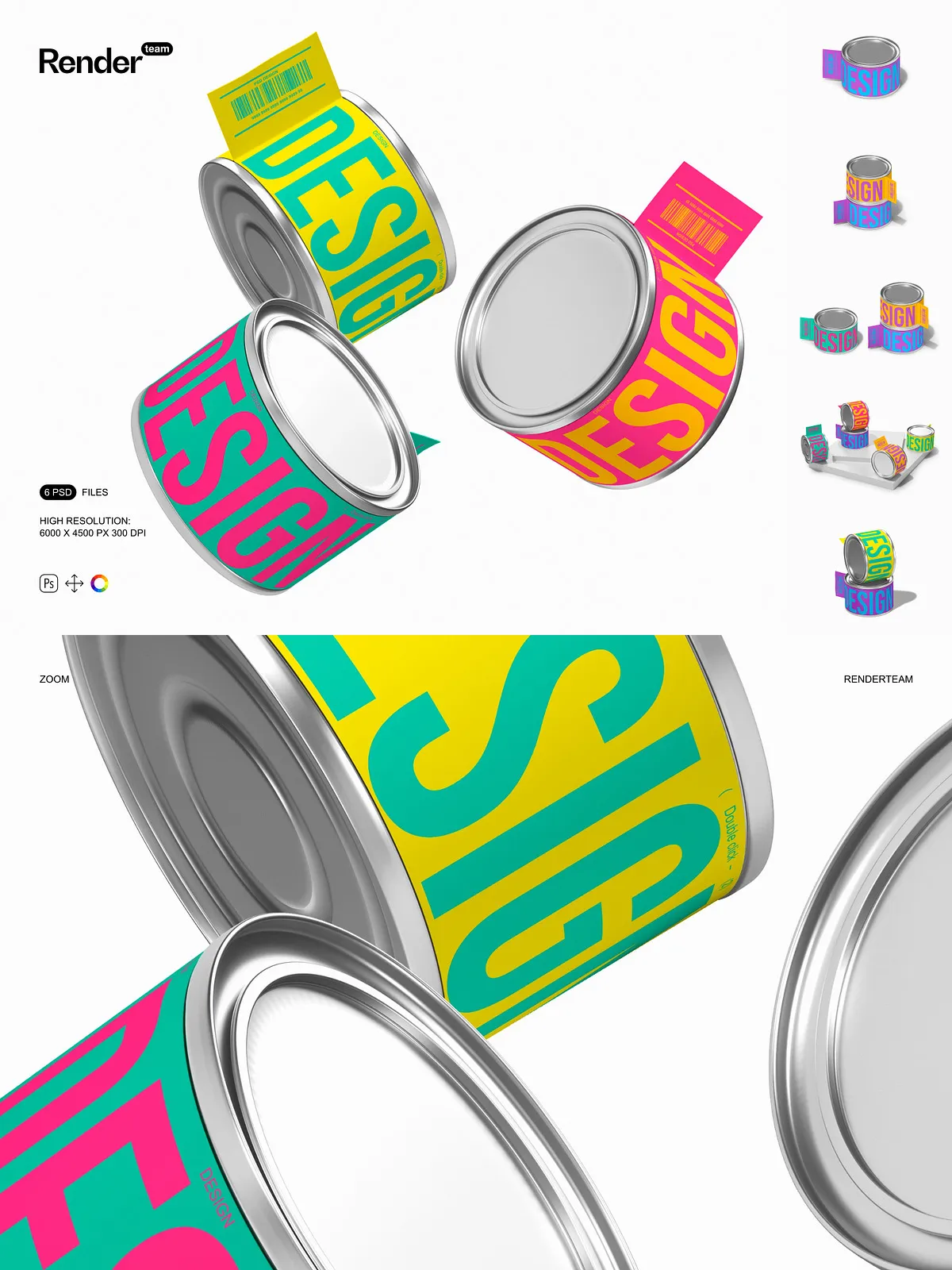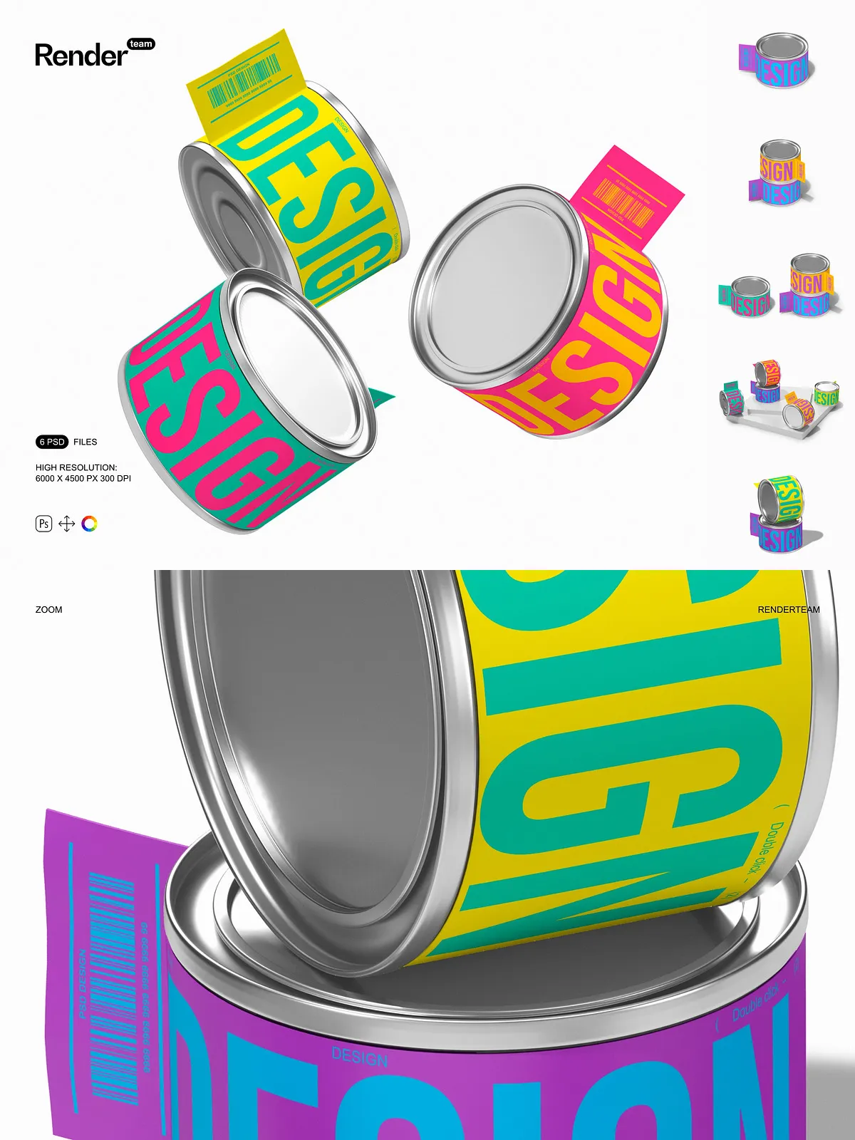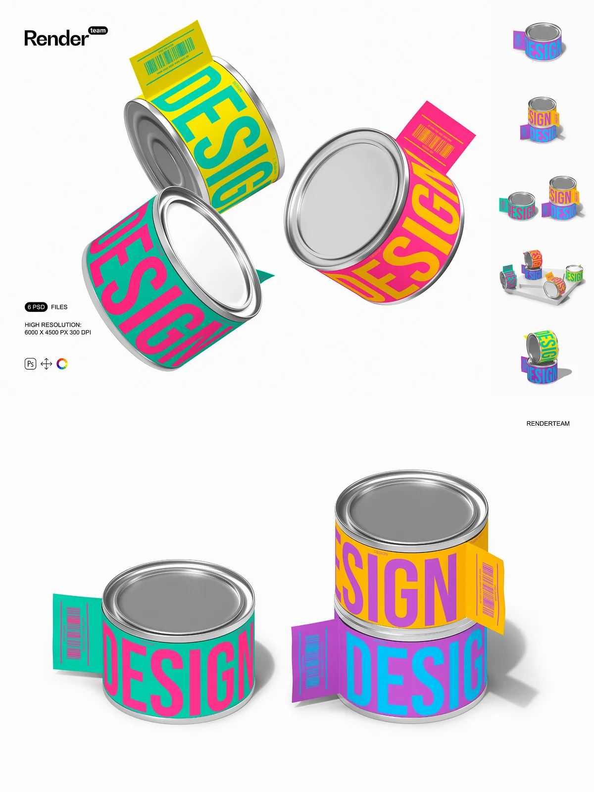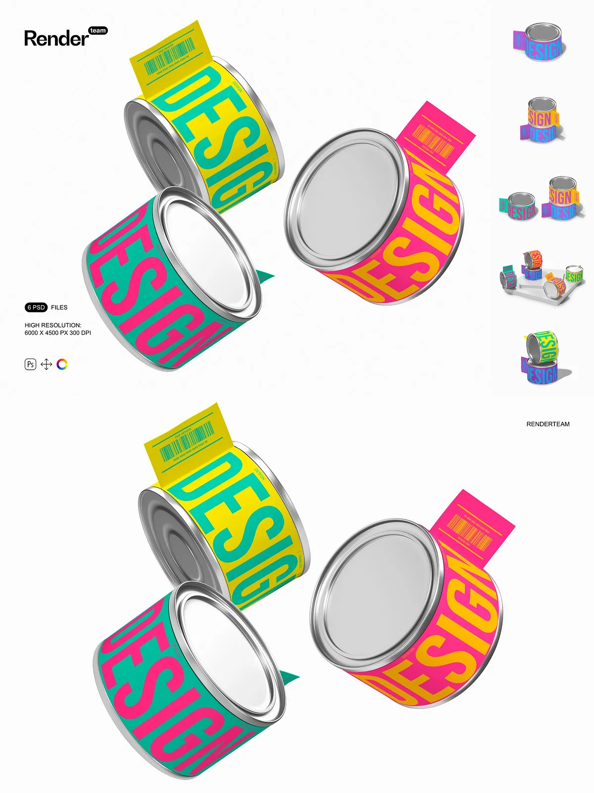 - 6 layered PSD mockup files featuring different paint can styles and display angles