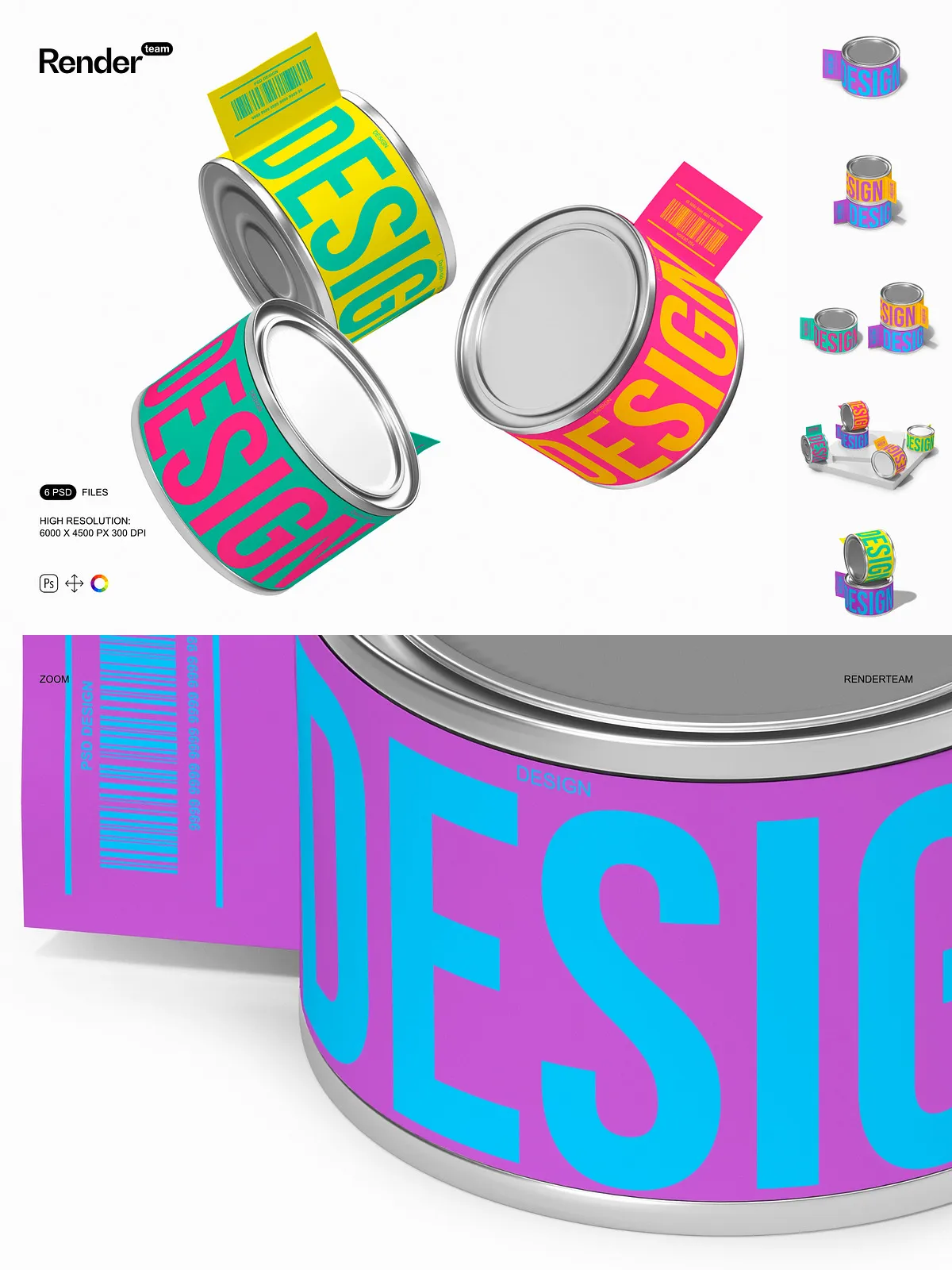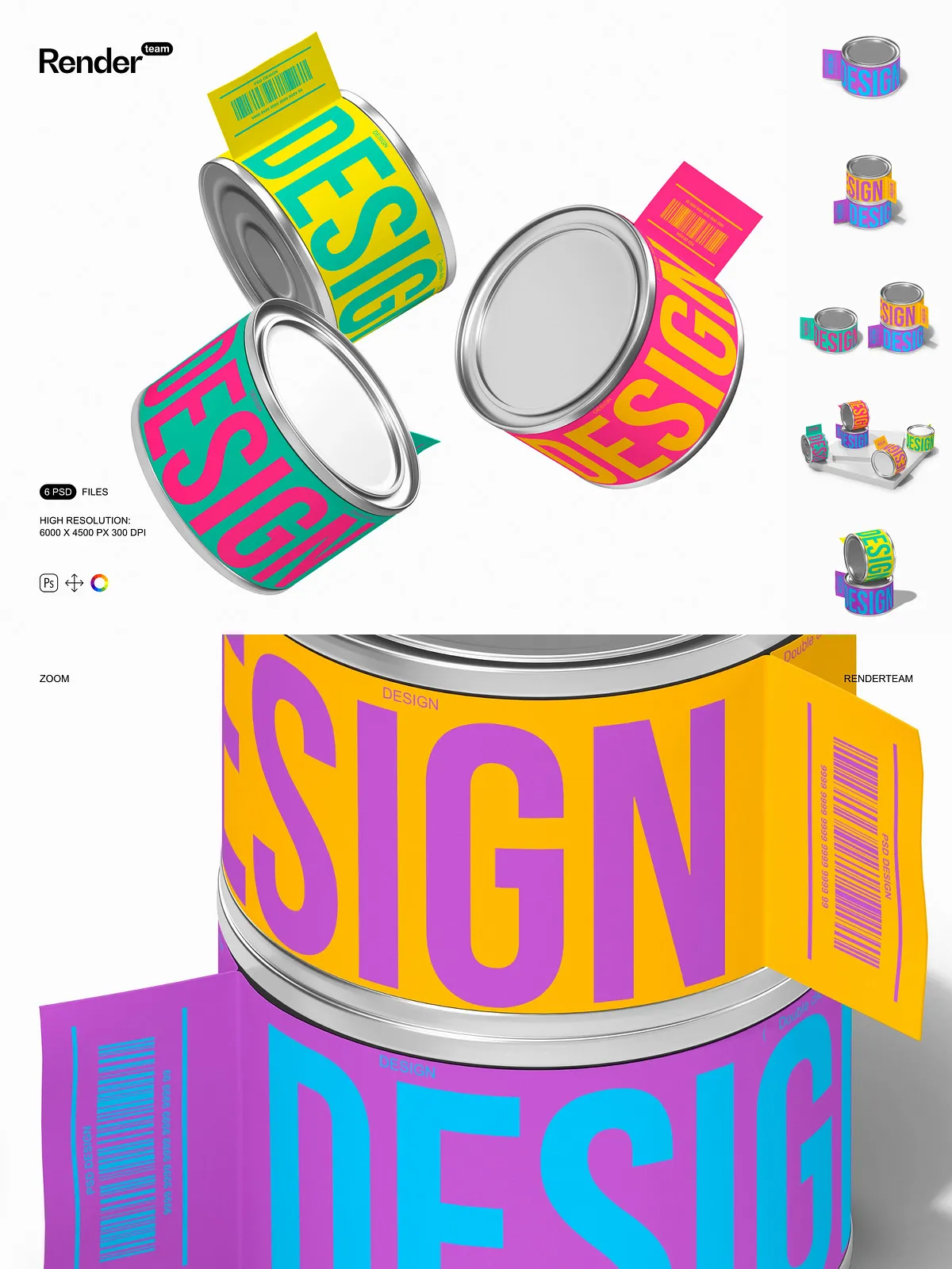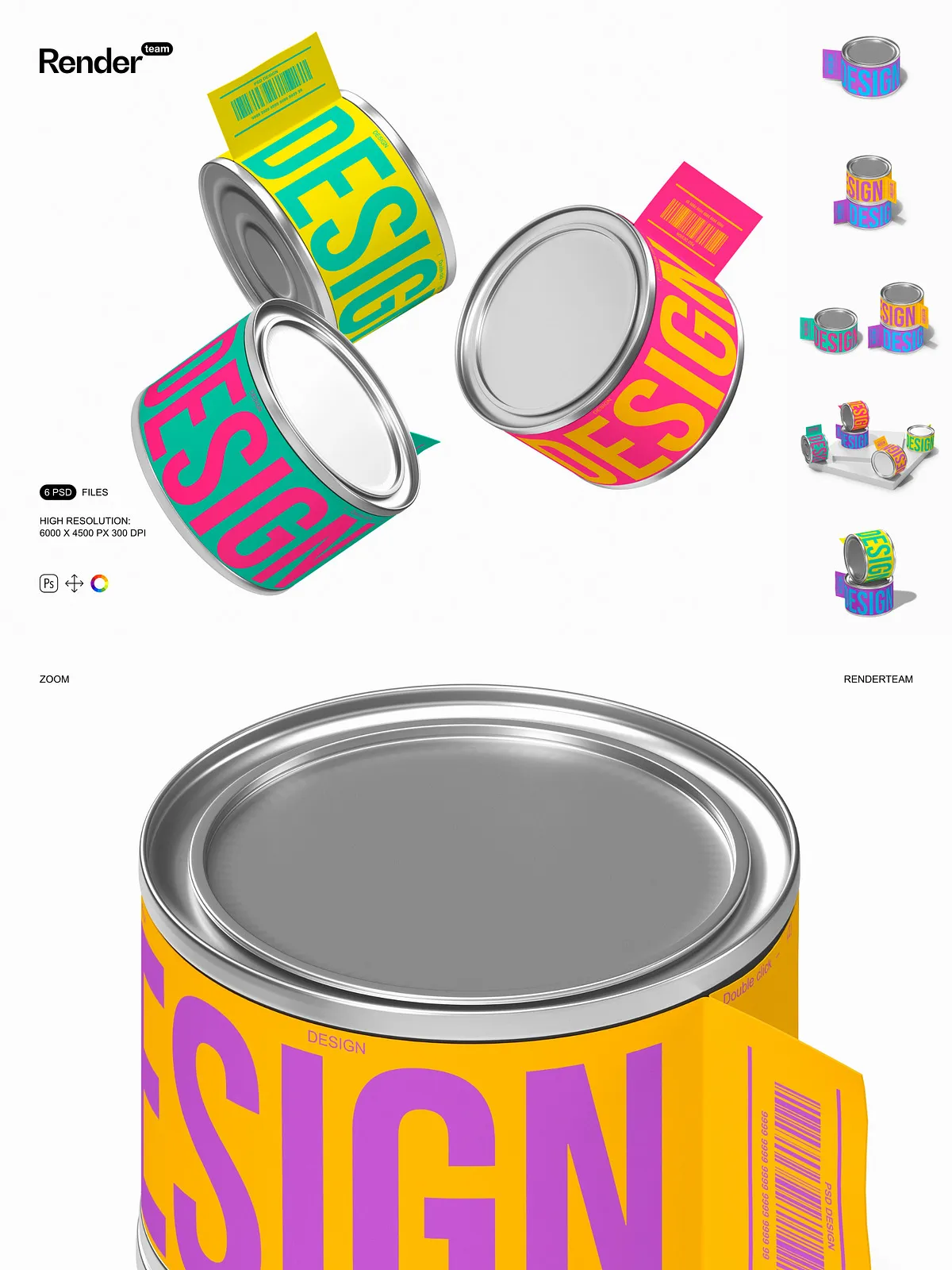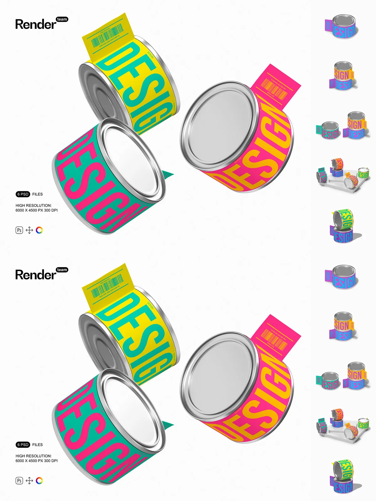 - 6 layered PSD mockup files featuring different paint can styles and display angles