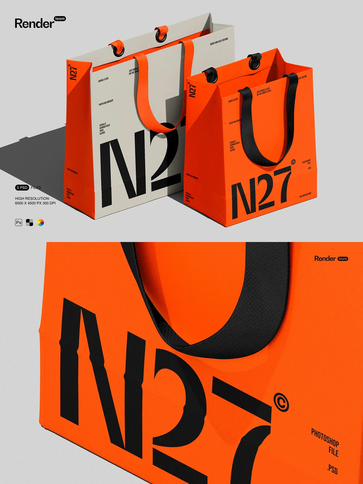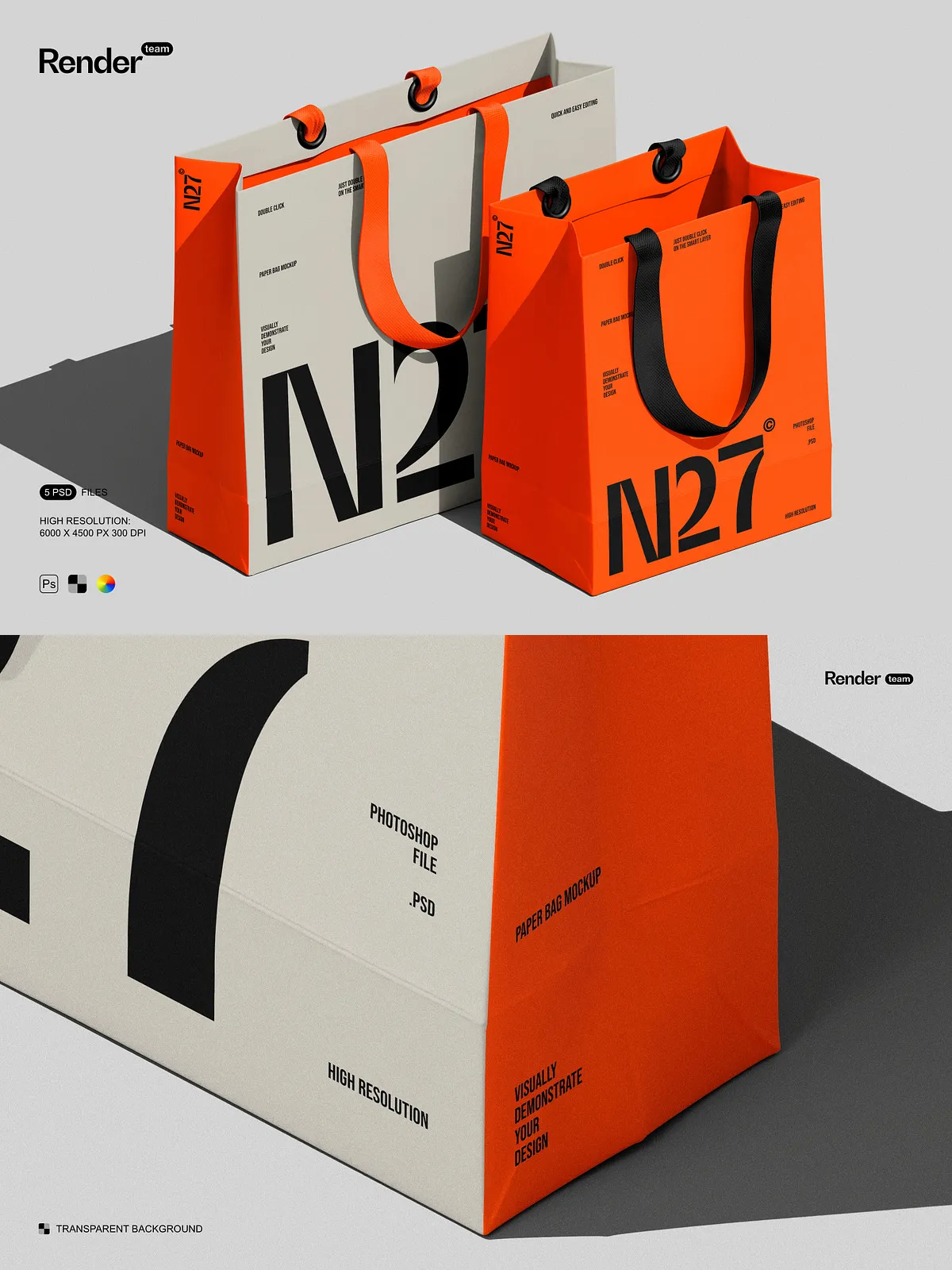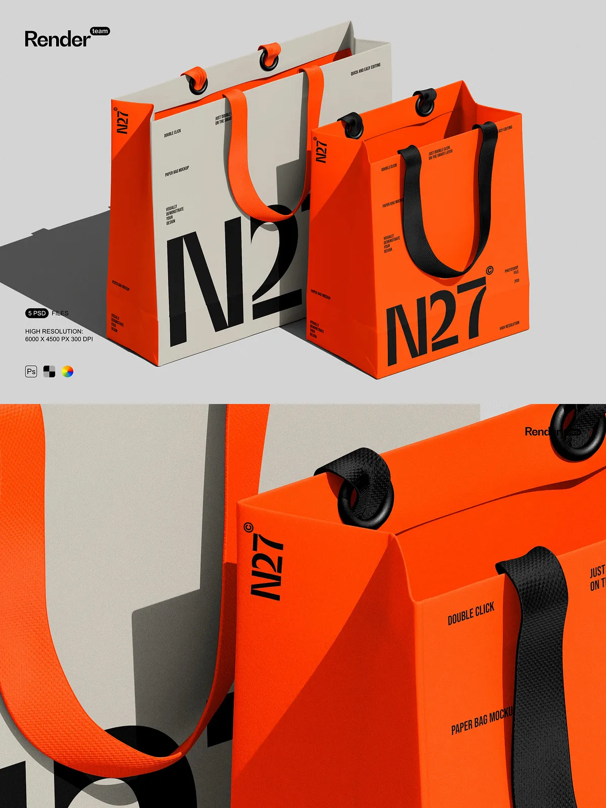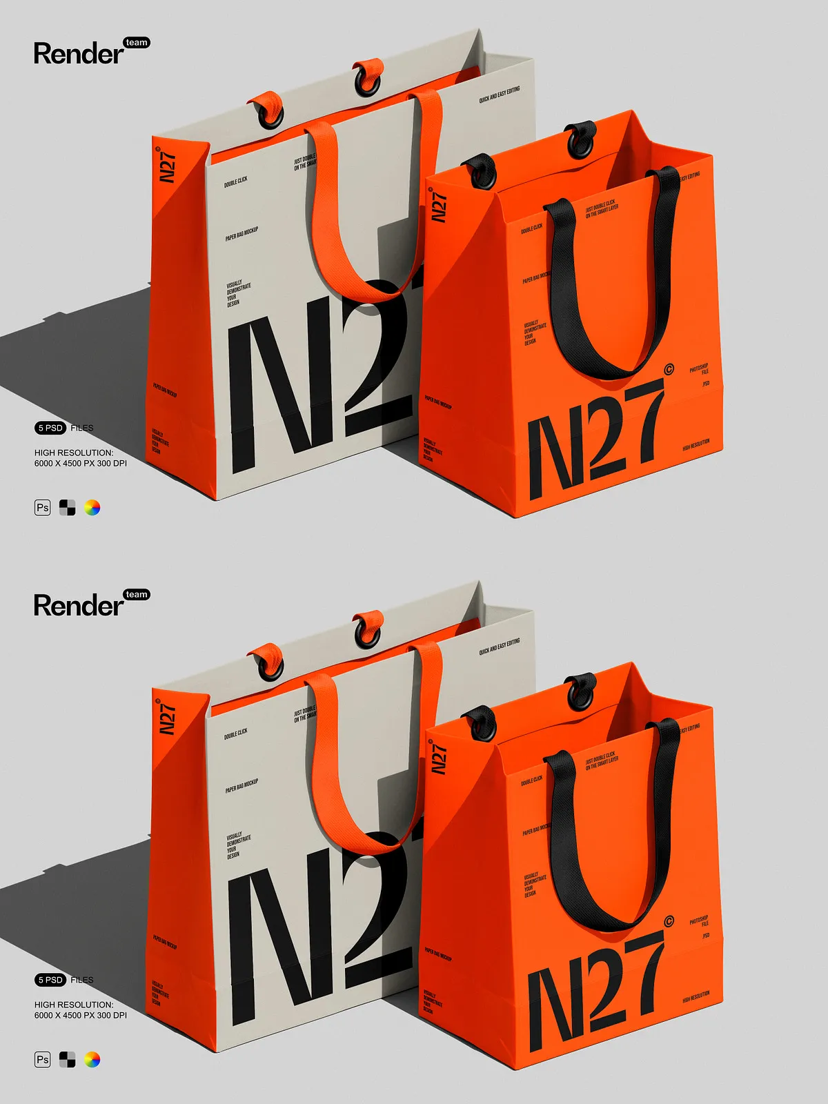 Take your branding efforts to the next level with the Paper Bag Mockup Set, a premium collection of five professionally crafted, layered PSD files designed to showcase your custom designs with realism and elegance. Perfect for fashion brands, retail stores, gift shops, and creative agencies, this set enables you to present your packaging concepts with exceptional clarity and visual sophistication. Each mockup is created at 6000 x 4500 pixels and 300 DPI—delivering print-ready quality suitable for portfolios, client presentations, website assets, and social media content.