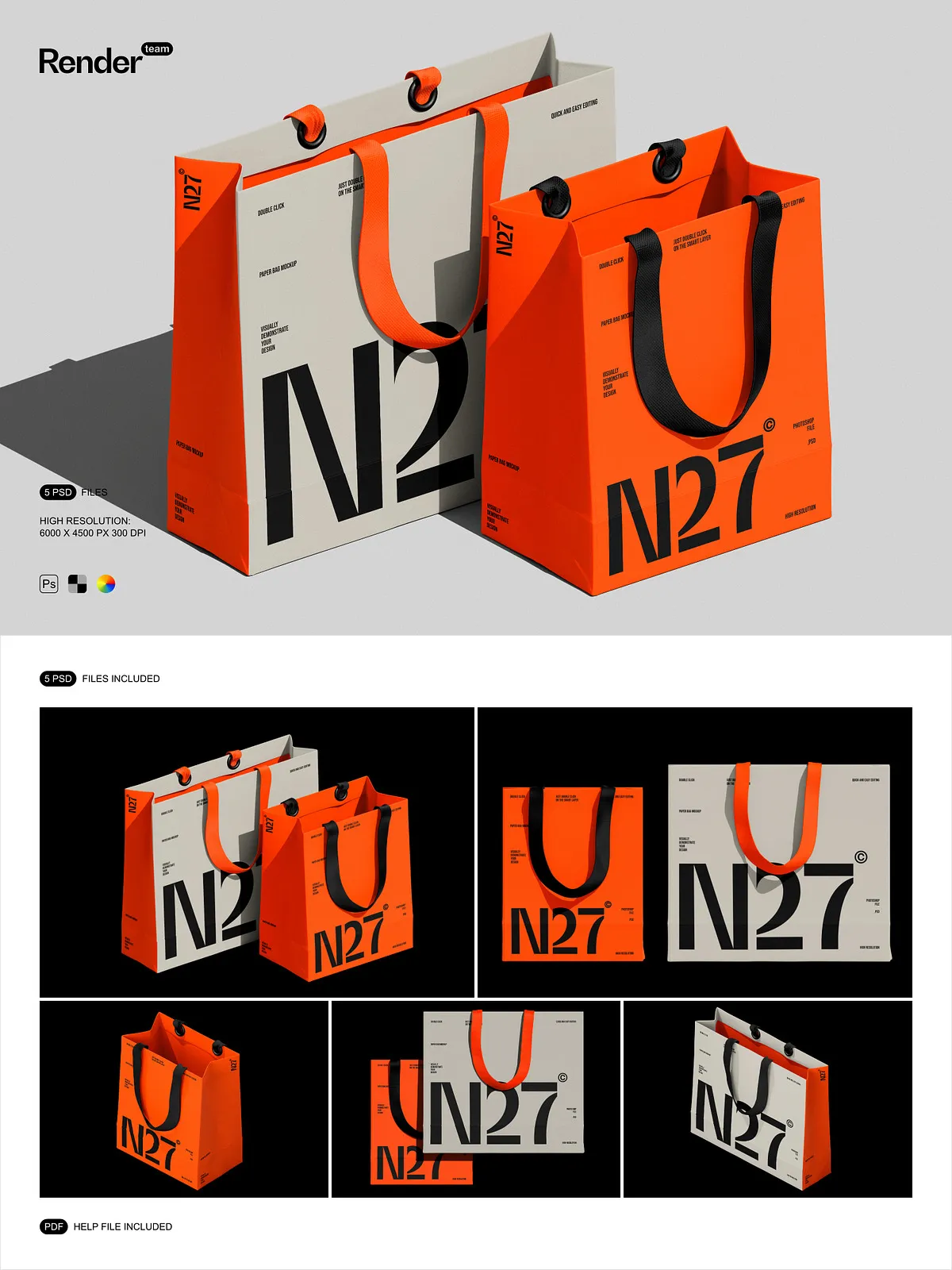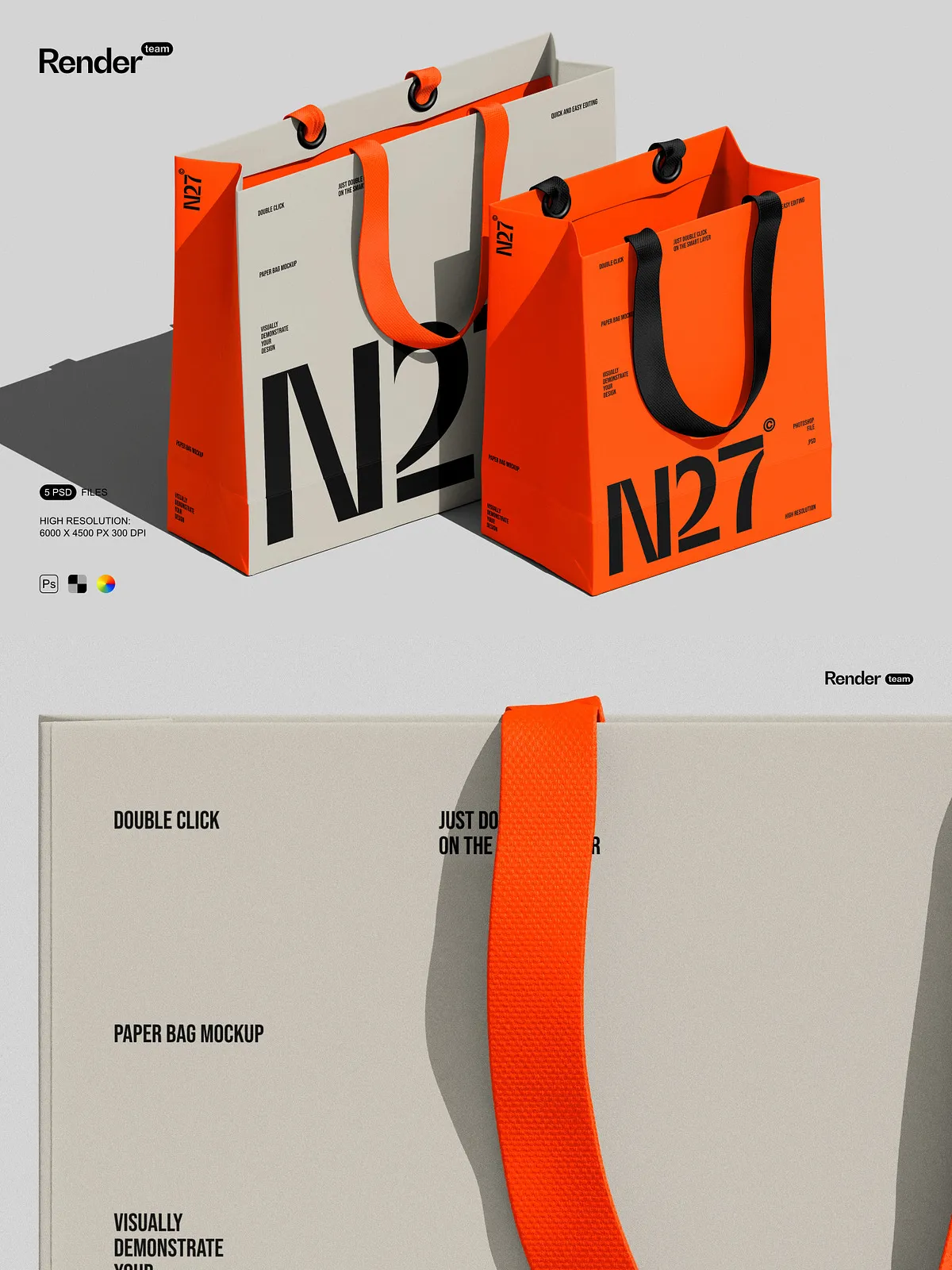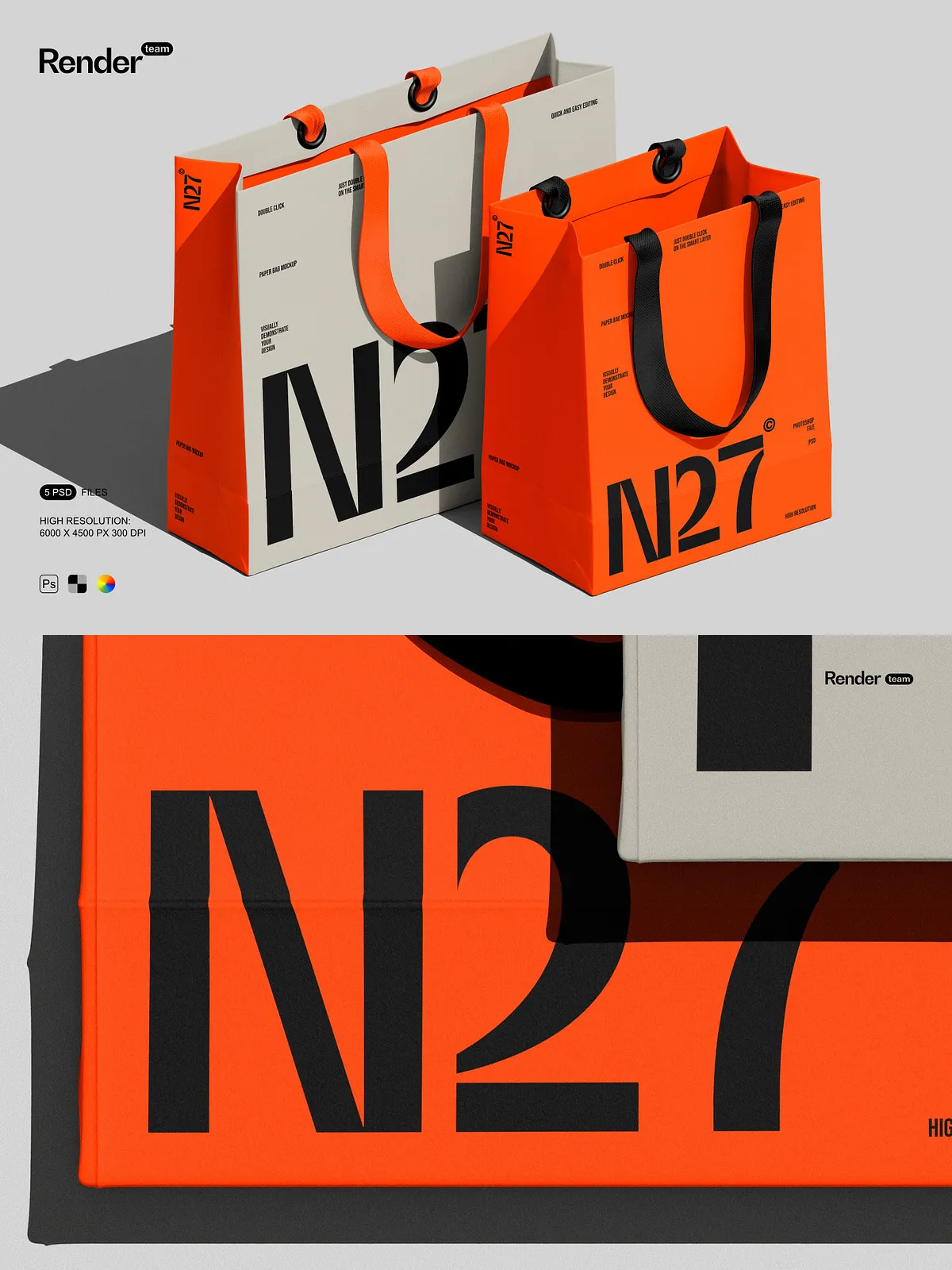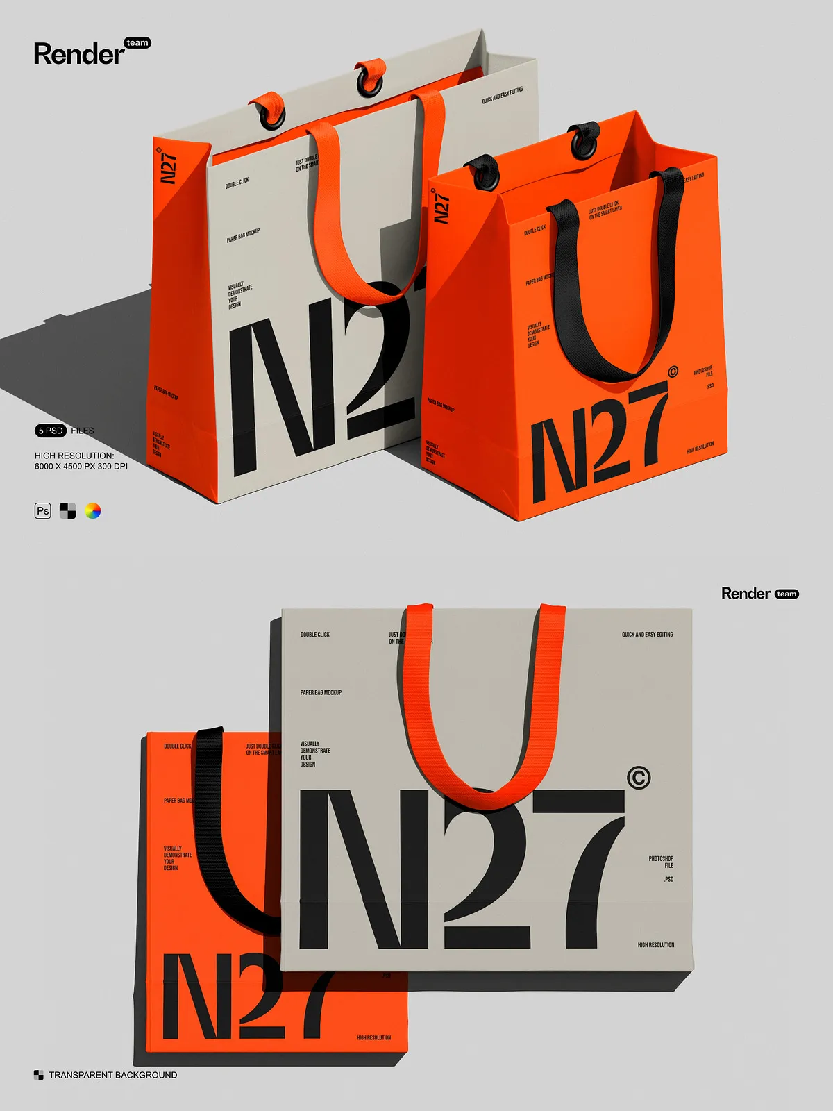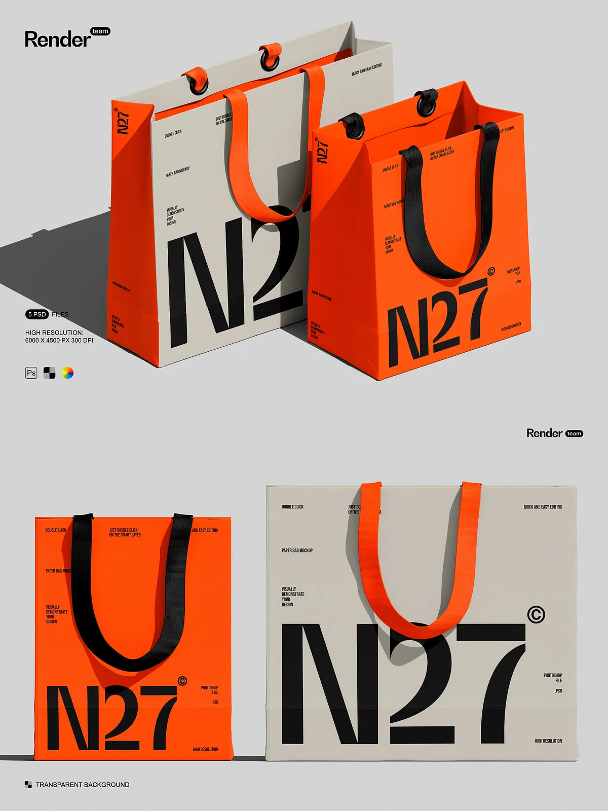 Take your branding efforts to the next level with the Paper Bag Mockup Set, a premium collection of five professionally crafted, layered PSD files designed to showcase your custom designs with realism and elegance. Perfect for fashion brands, retail stores, gift shops, and creative agencies, this set enables you to present your packaging concepts with exceptional clarity and visual sophistication. Each mockup is created at 6000 x 4500 pixels and 300 DPI—delivering print-ready quality suitable for portfolios, client presentations, website assets, and social media content.