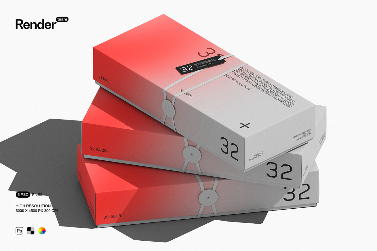 Every component—box, shadow, tag, ribbon, and environmental lighting—is carefully isolated into separate layers, enabling you to modify or remove elements without affecting the rest of the composition. Adjust shadow depth for dramatic effect, hide the ribbon for a sleeker look, or replace the box color with your brand palette in seconds. This structural independence ensures maximum adaptability, making the mockup set suitable for a wide range of brand styles, product types, and creative goals.
