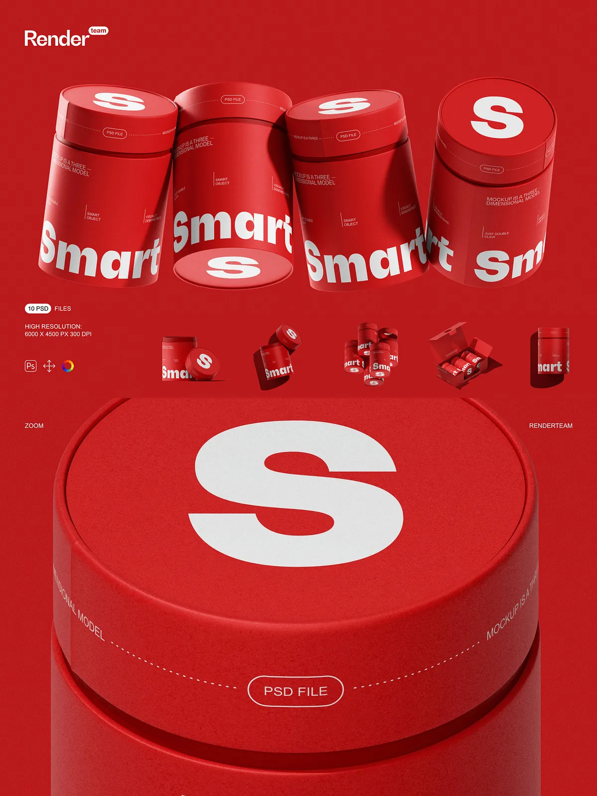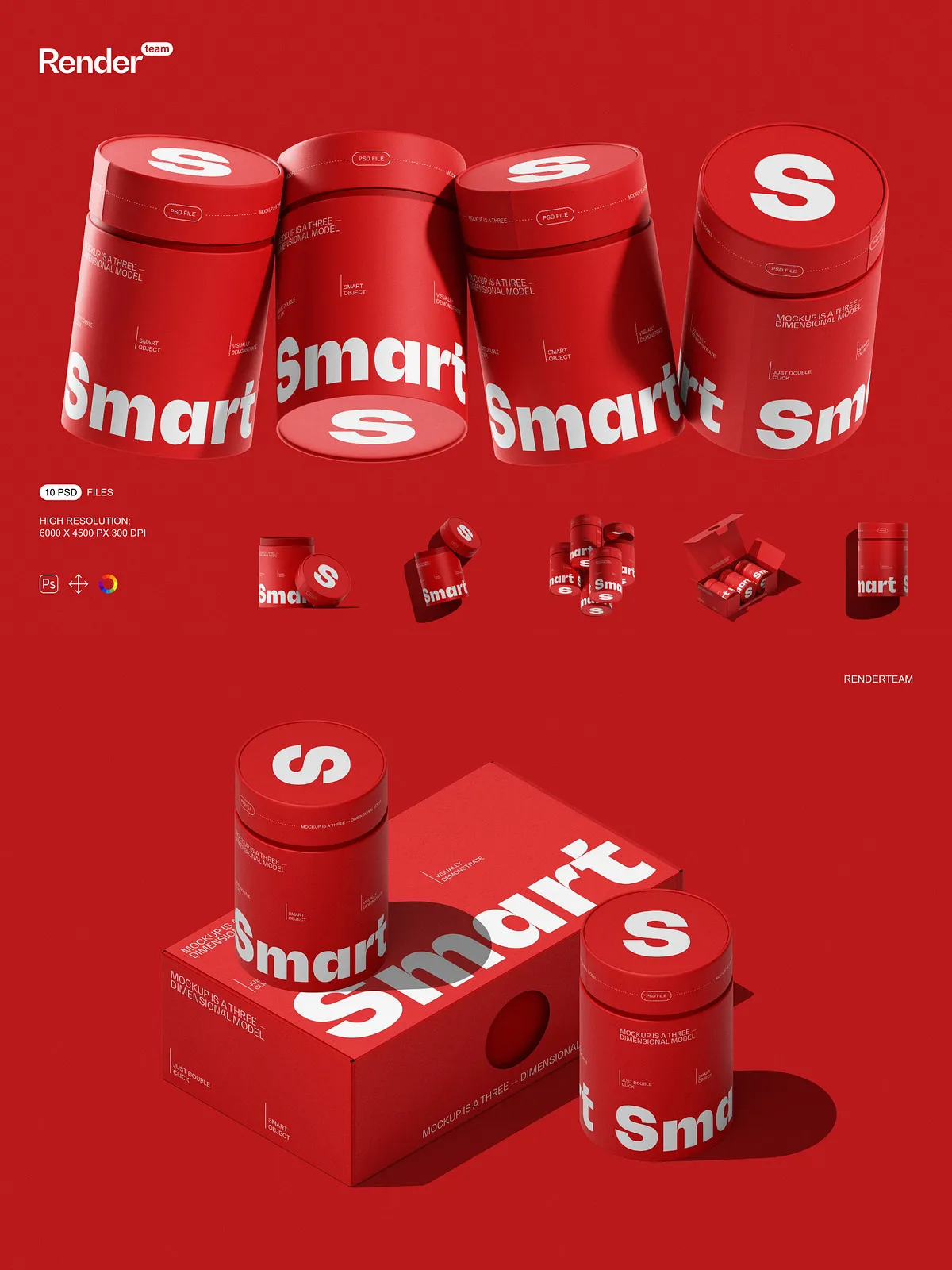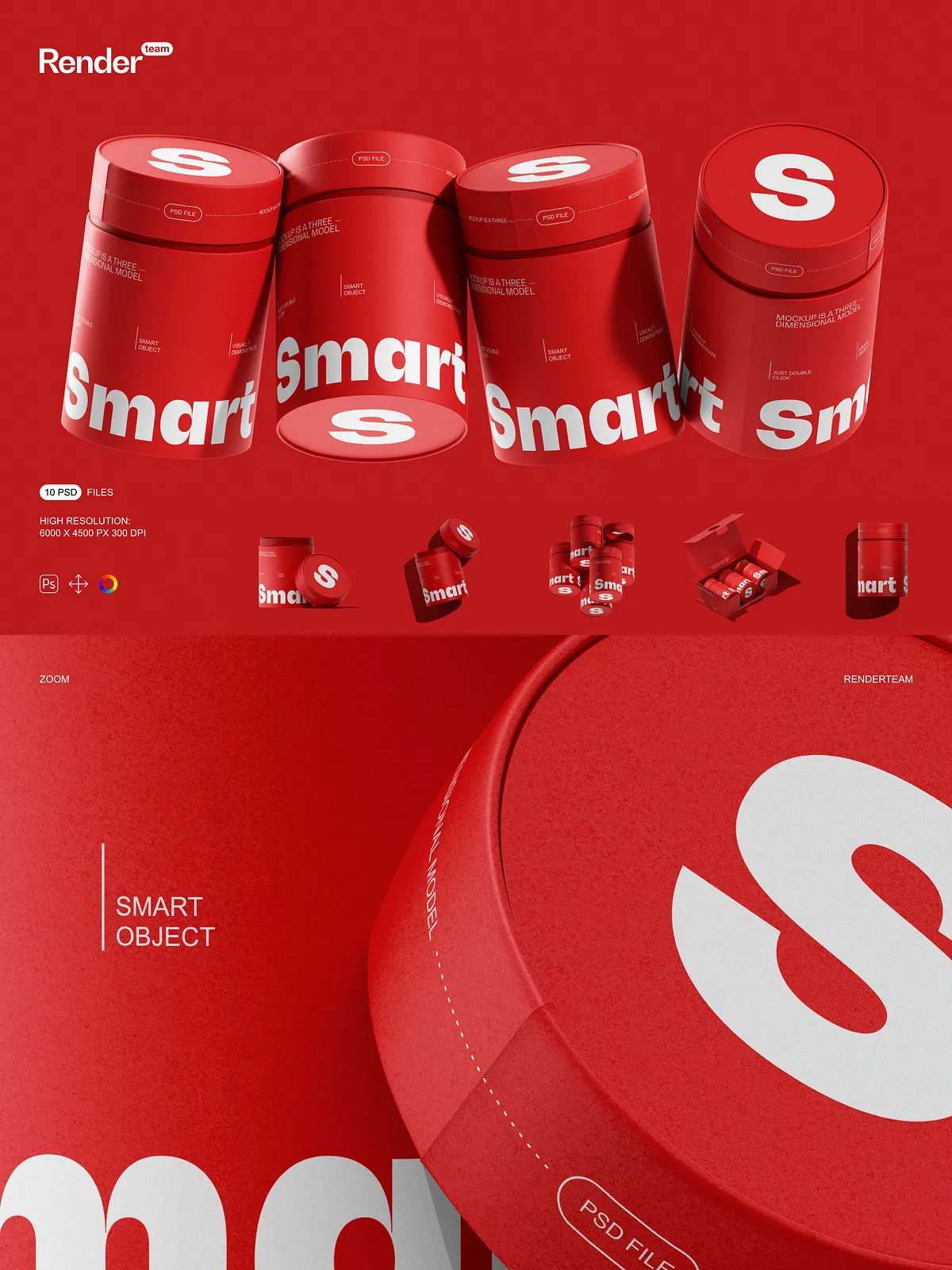 • Smart Object layers for rapid editing — simply double-click a layer, insert your design, and save—your changes appear instantly with no manual adjustments required