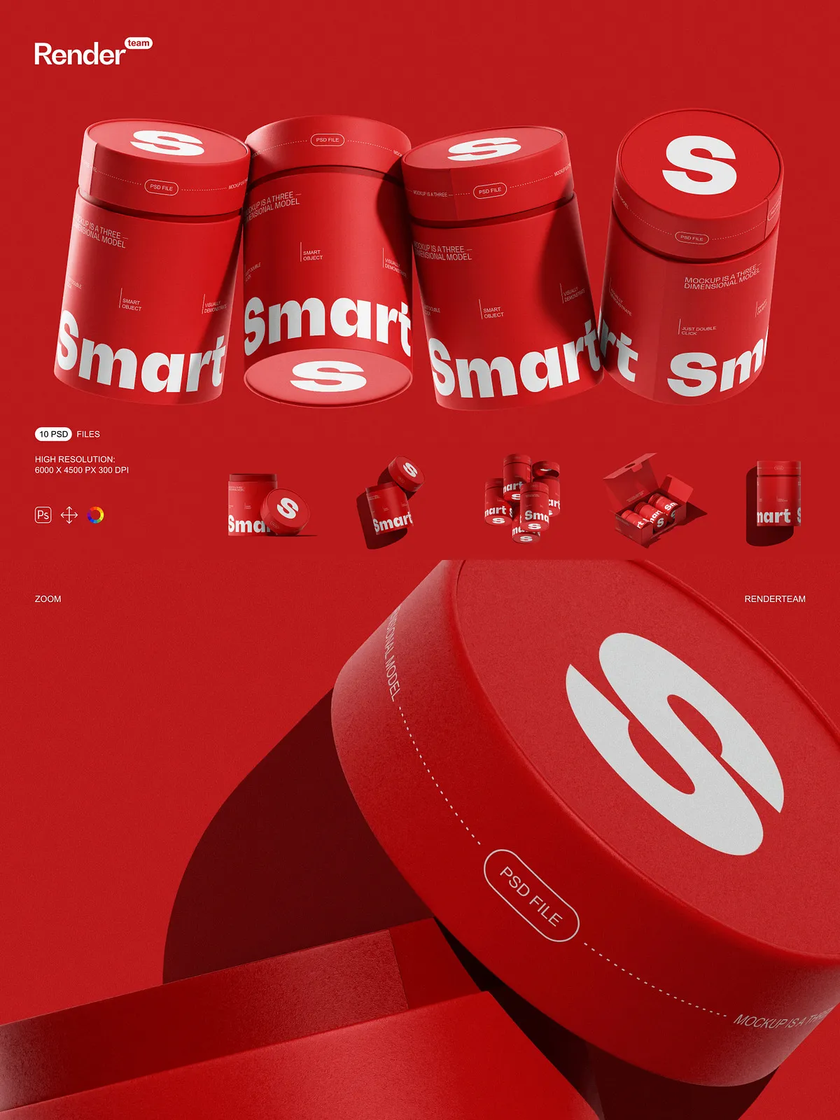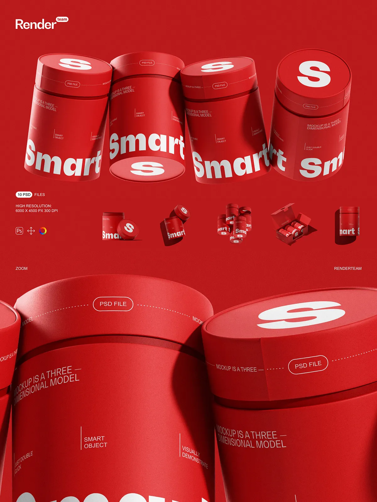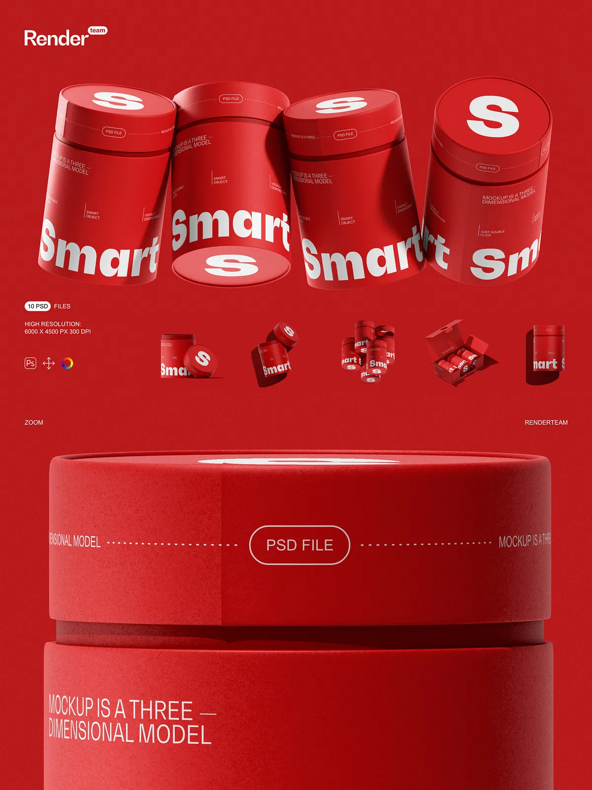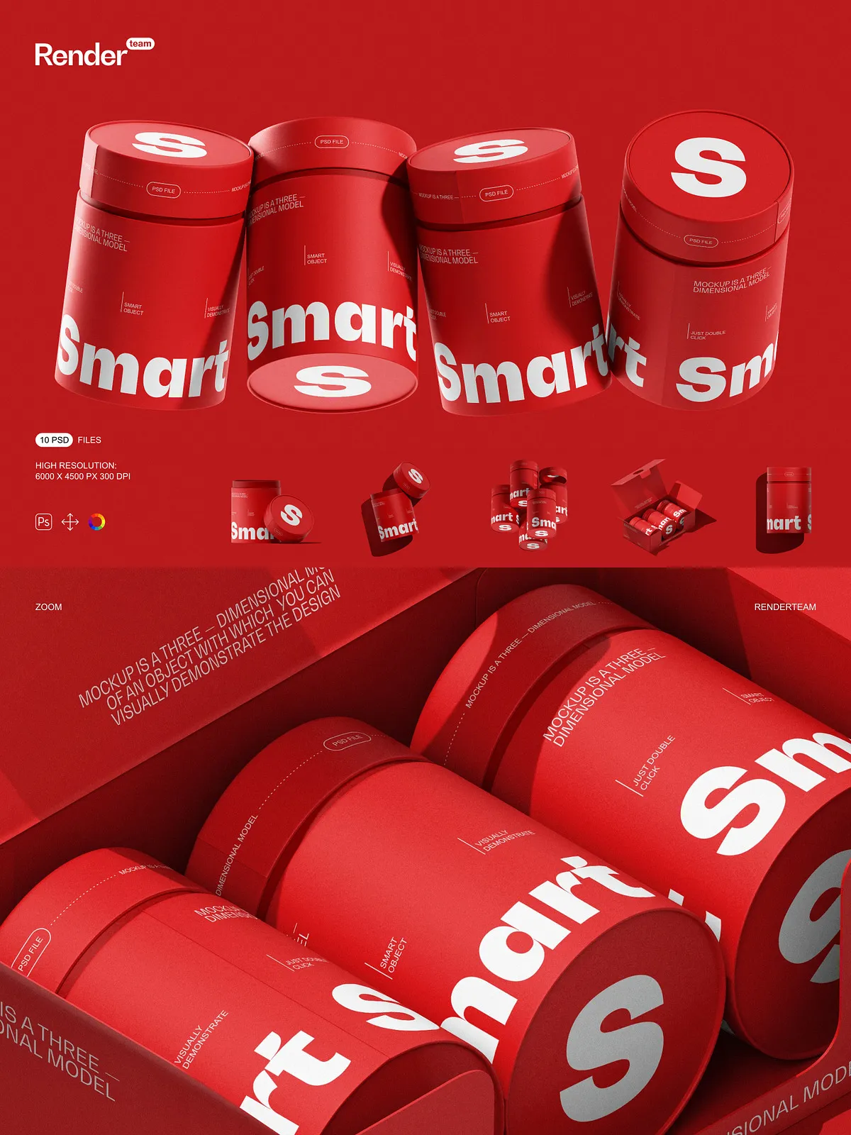• Smart Object layers for rapid editing — simply double-click a layer, insert your design, and save—your changes appear instantly with no manual adjustments required