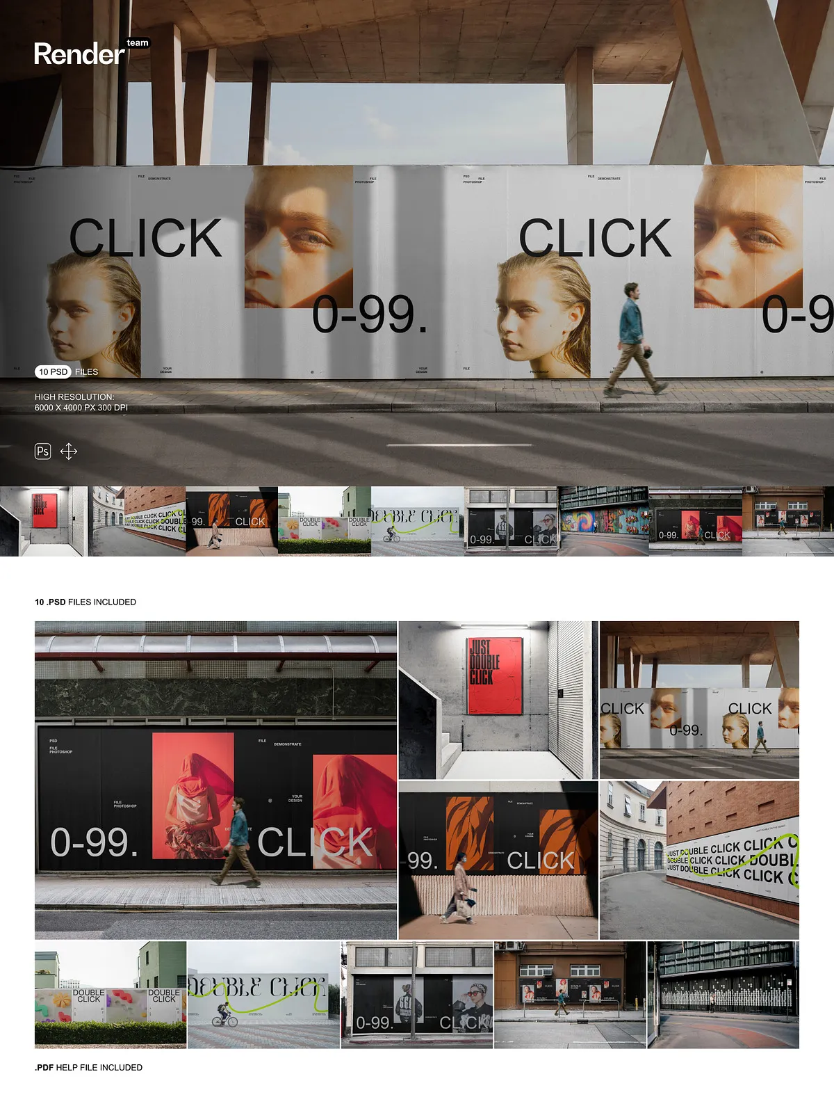 This Poster and Billboard Mockup Set helps you move from concept to presentation faster. The combination of Smart Objects, organized layers, isolated shadows, and editable lighting gives you full control over visual output while keeping the workflow efficient and repeatable. The included PDF help file guides you through common tasks so you or your team can produce consistent, professional assets without reconstructing scenes from scratch.