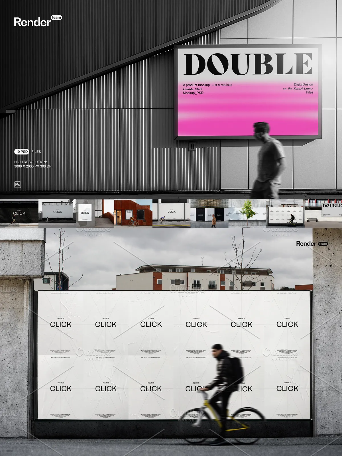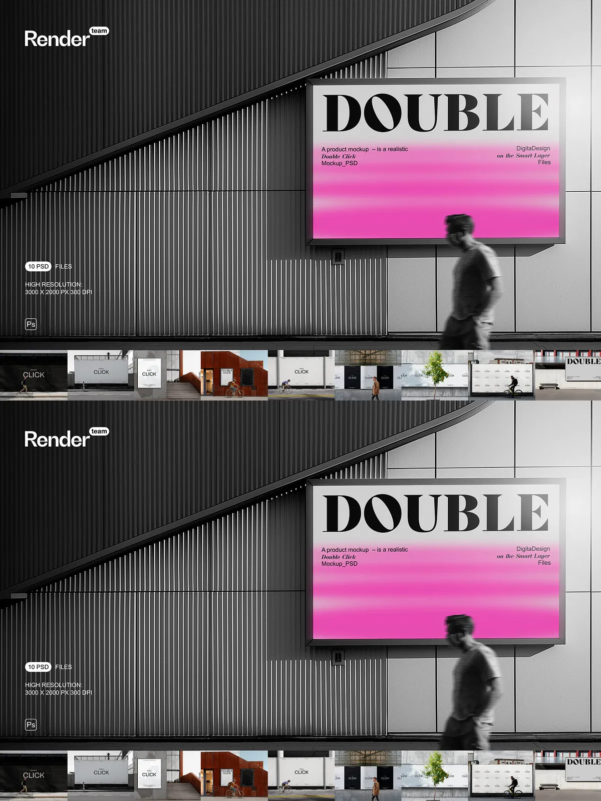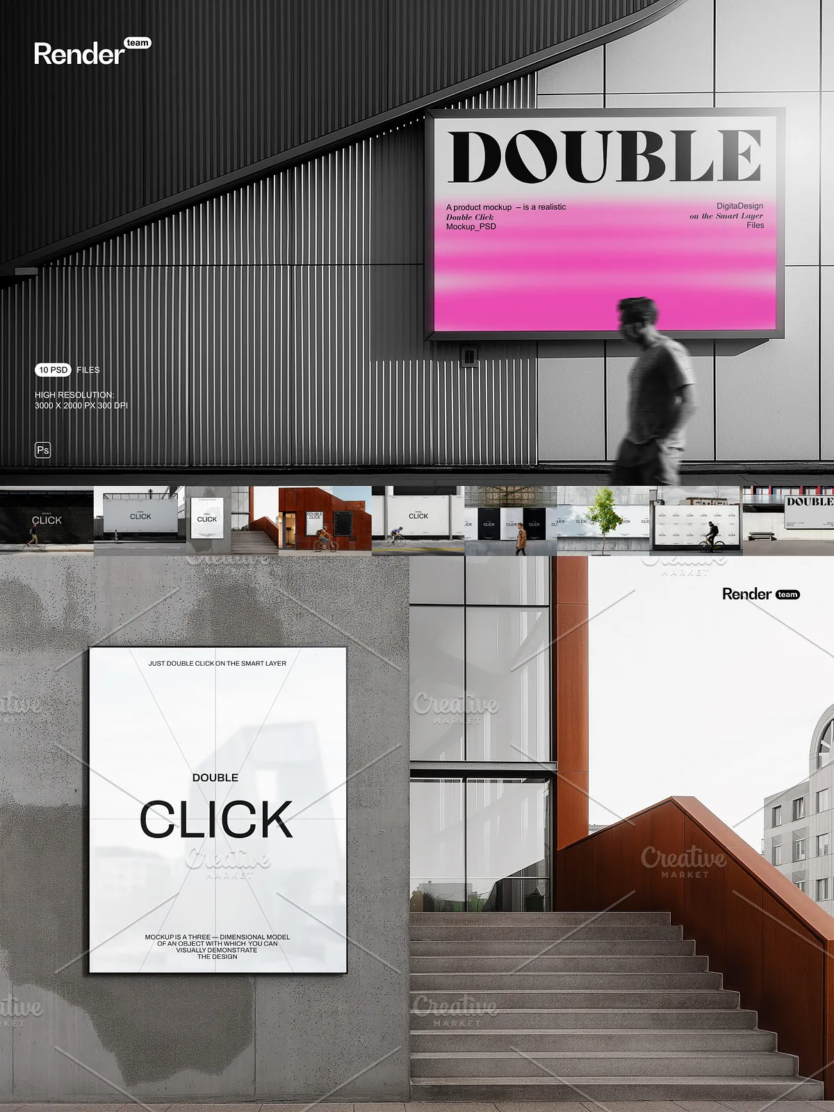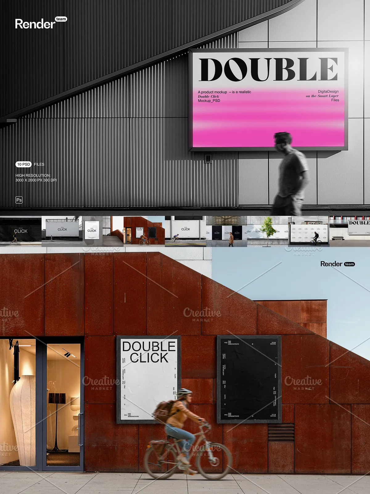 - 10 unique poster and billboard mockup variations — including upright, angled, urban street, and multi-panel billboard formats to suit diverse campaign needs