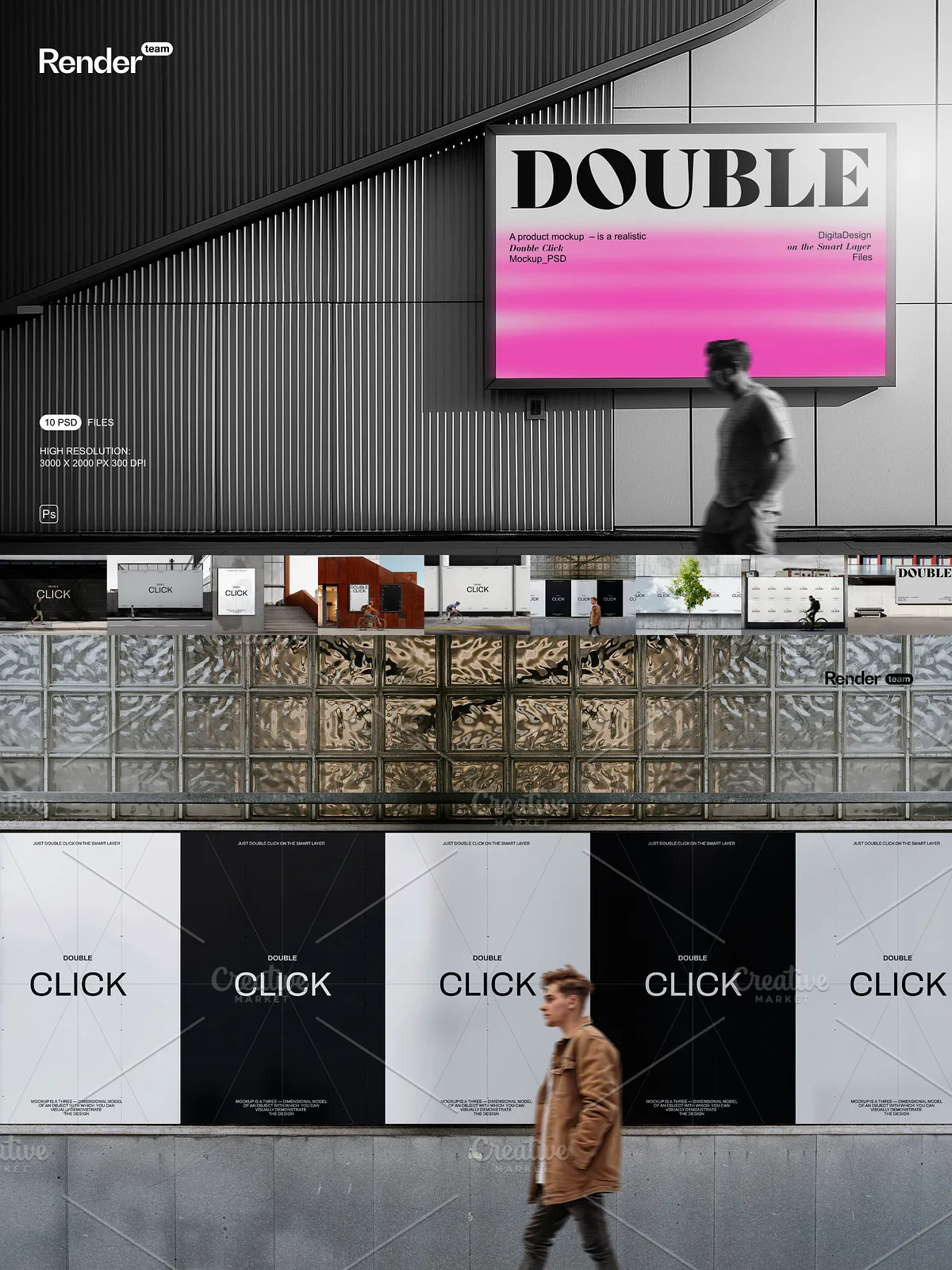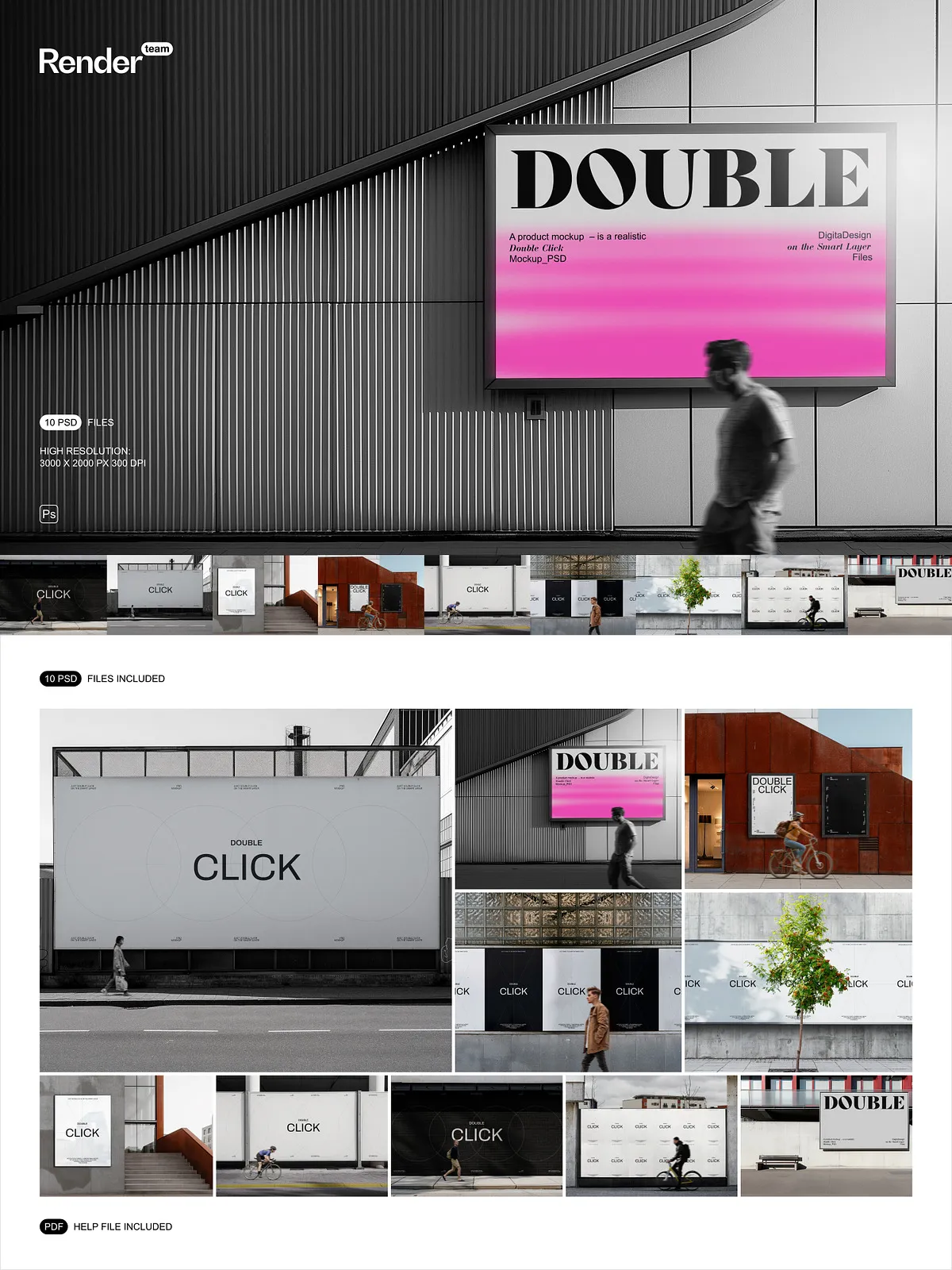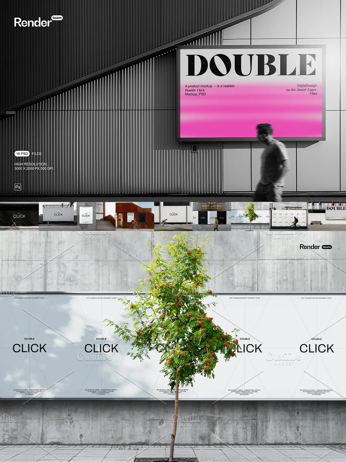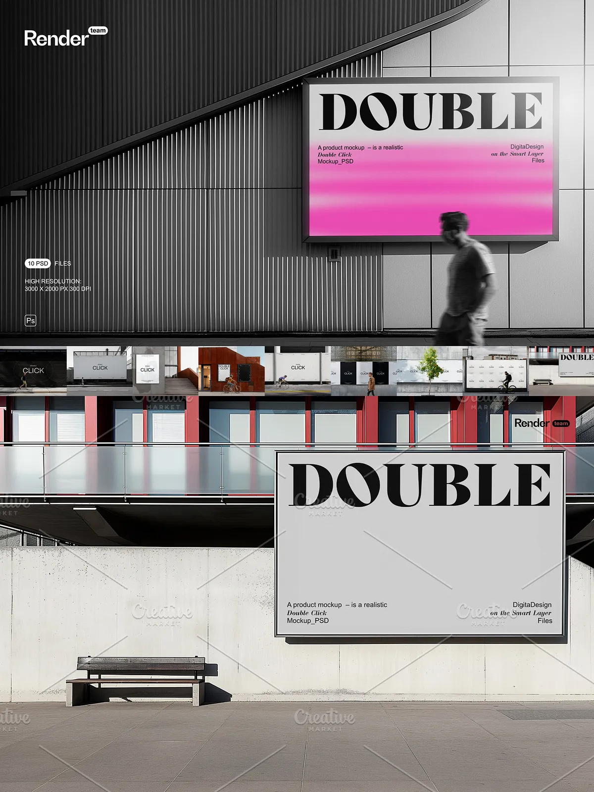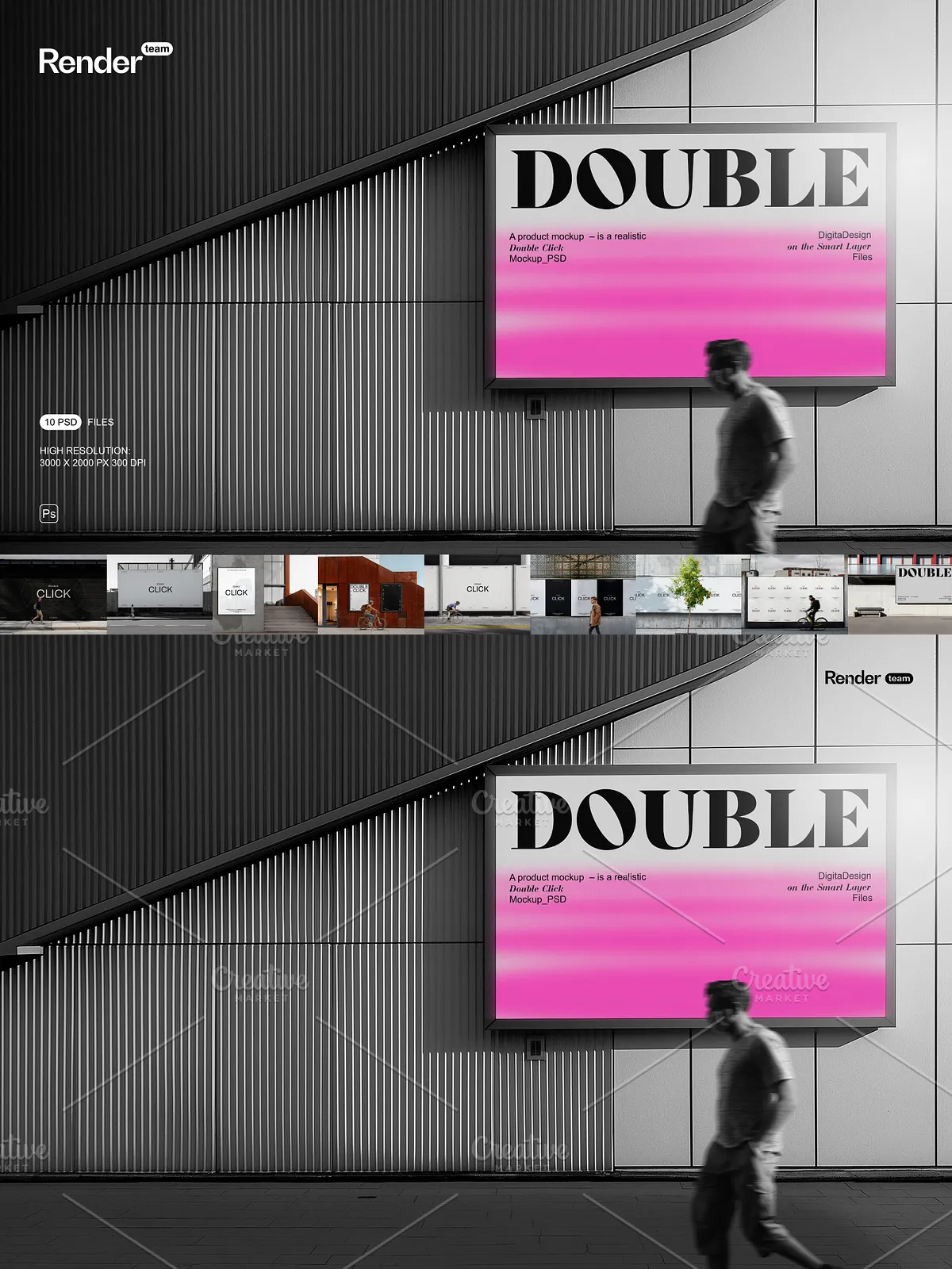 - 10 unique poster and billboard mockup variations — including upright, angled, urban street, and multi-panel billboard formats to suit diverse campaign needs