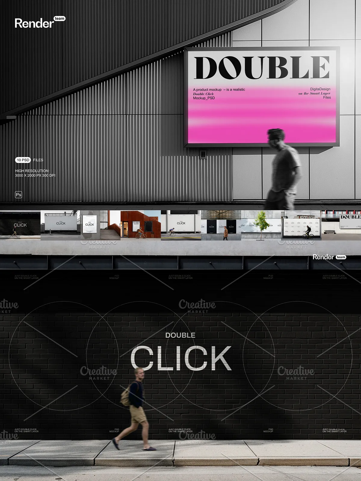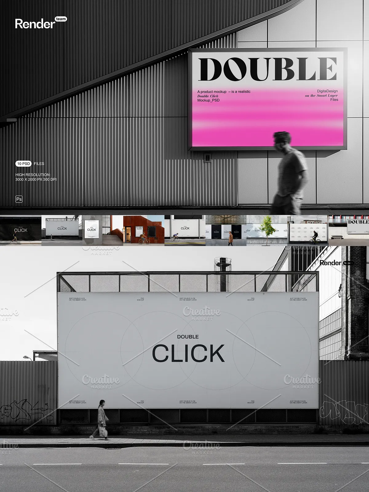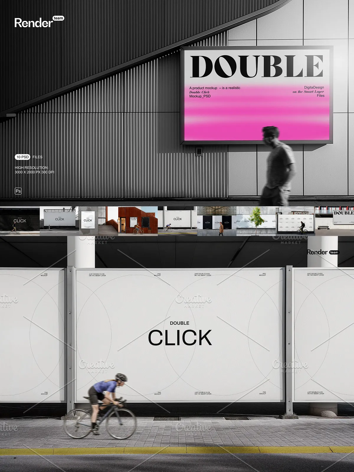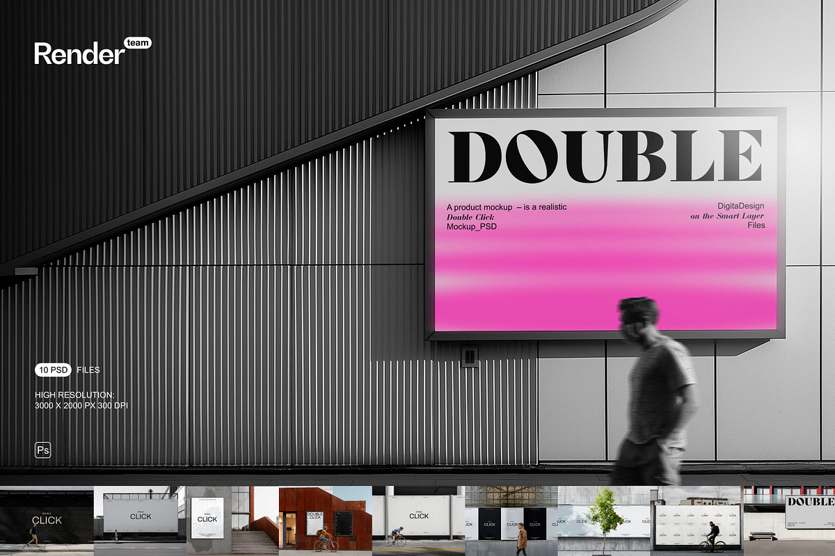 - 10 unique poster and billboard mockup variations — including upright, angled, urban street, and multi-panel billboard formats to suit diverse campaign needs