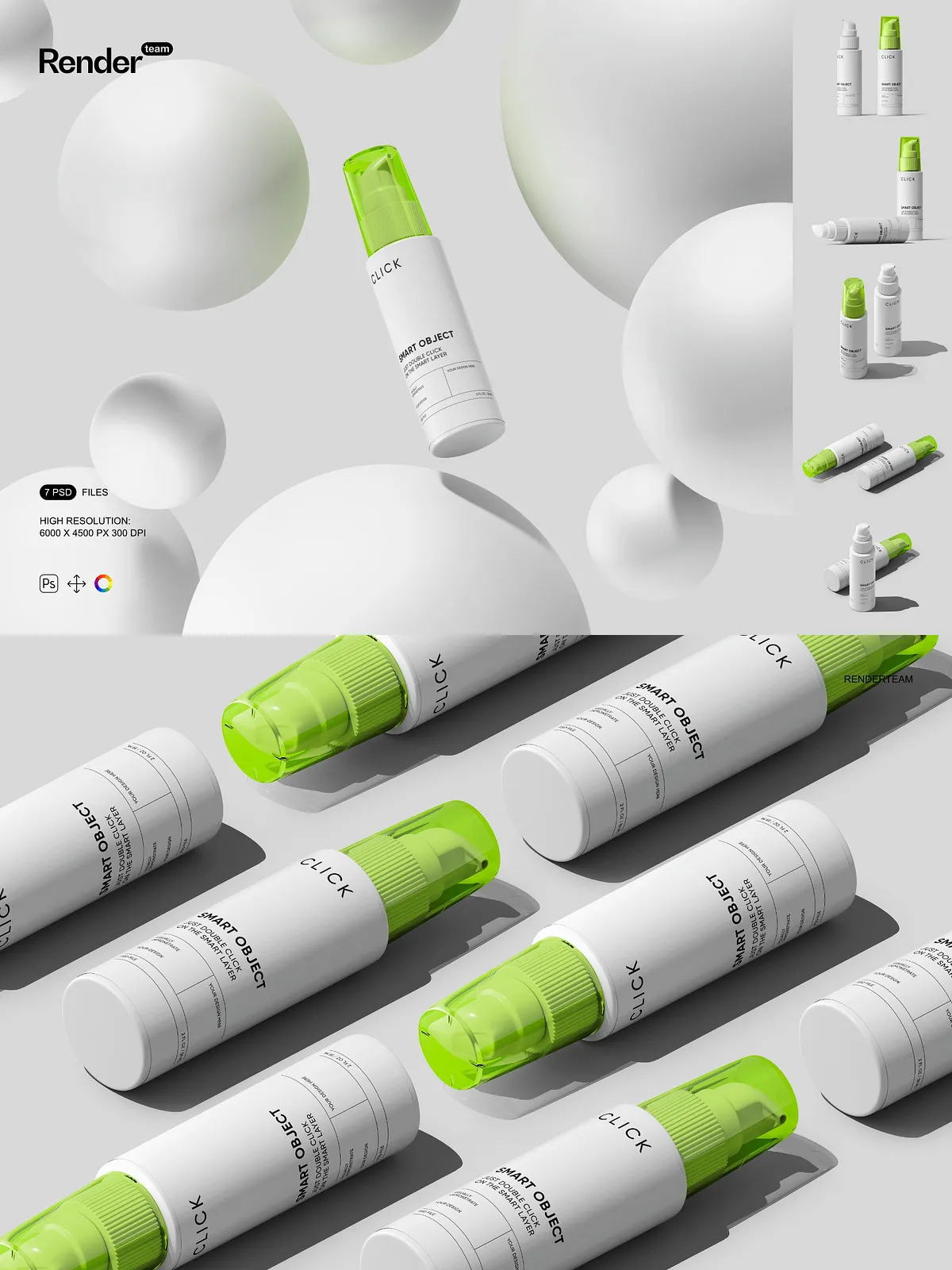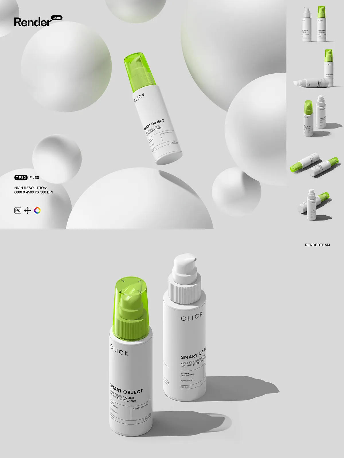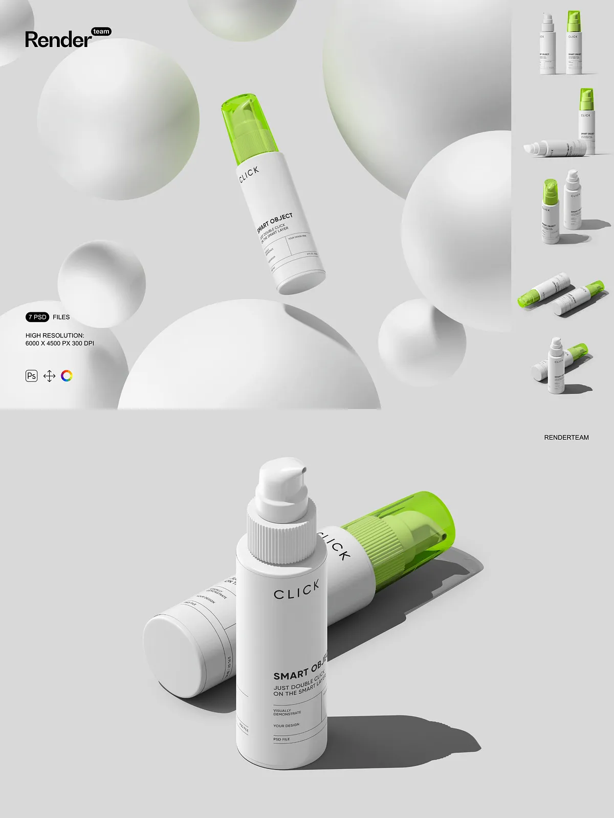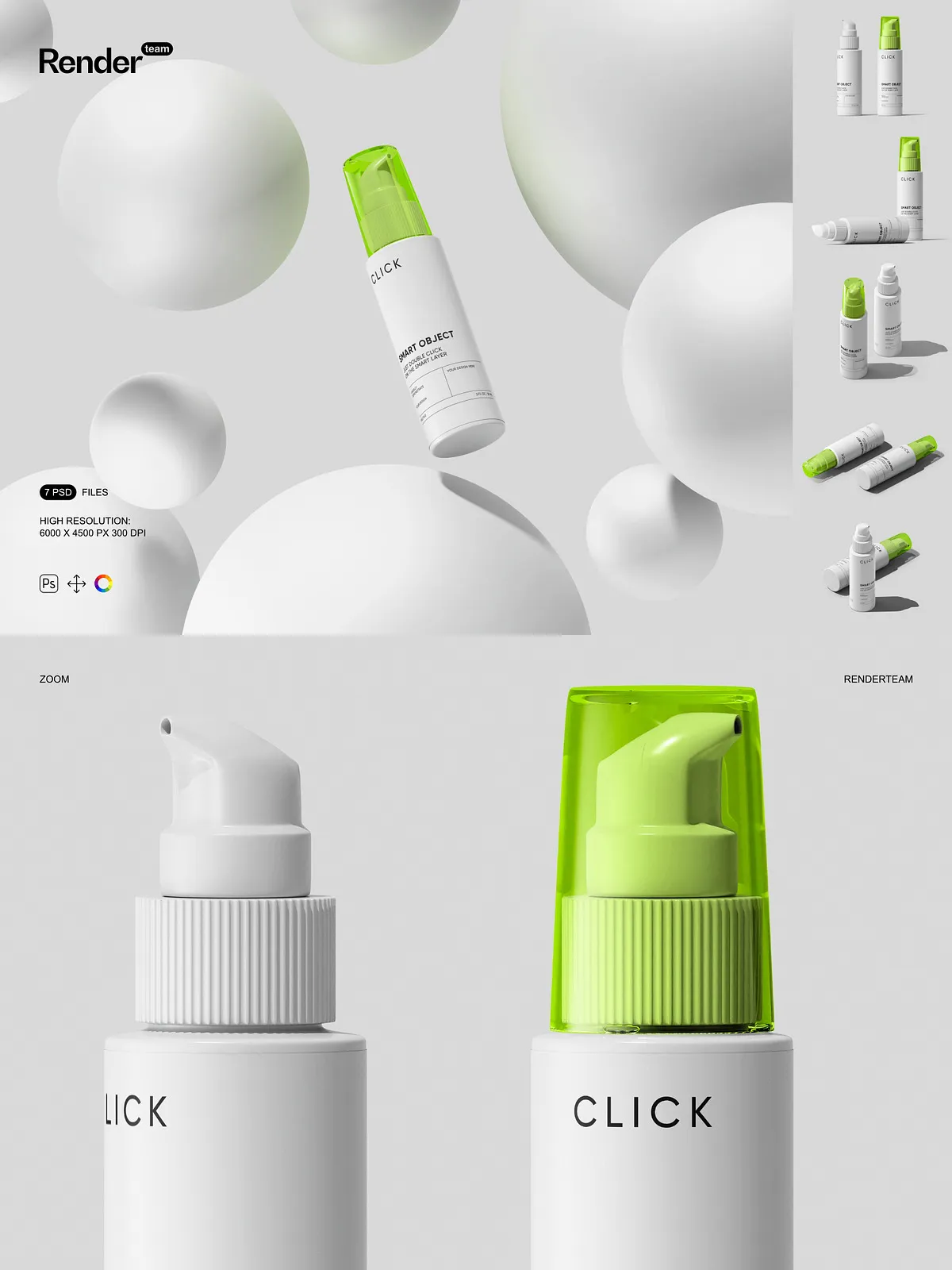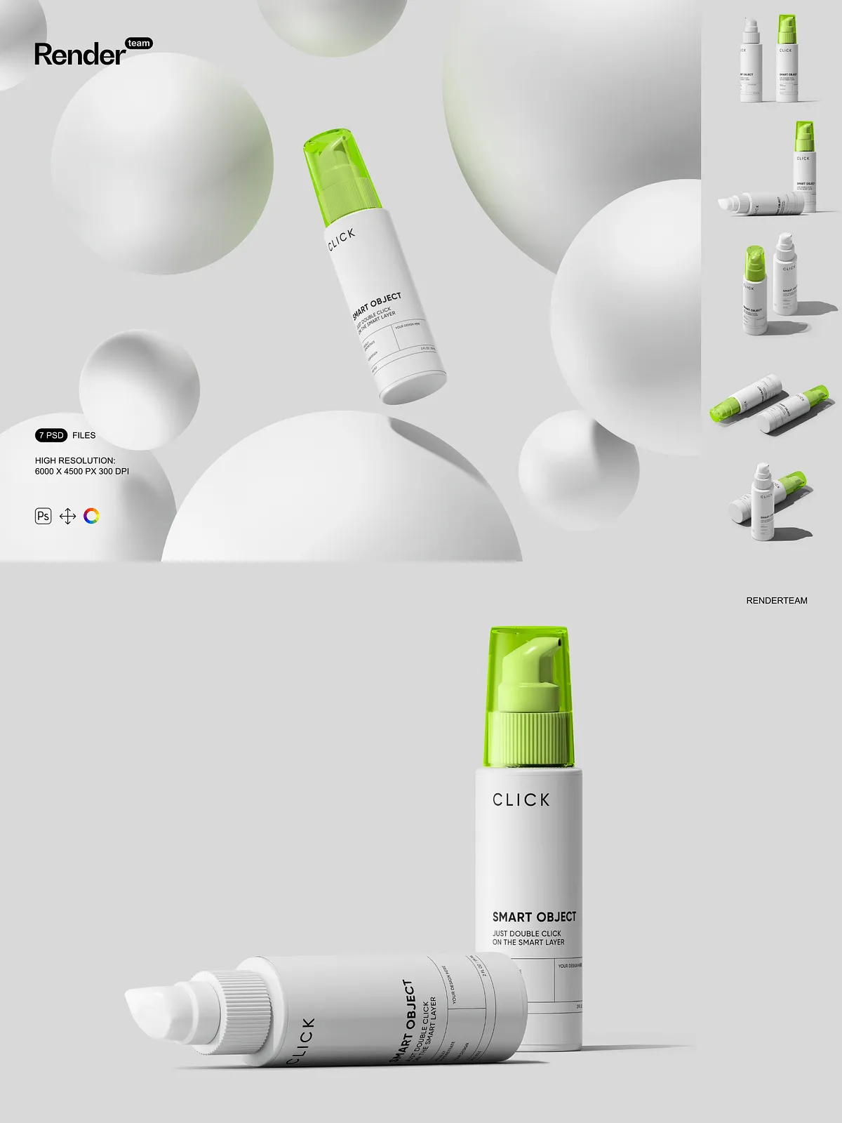- 7 layered PSD mockup files showing multiple pump bottle angles and presentation styles