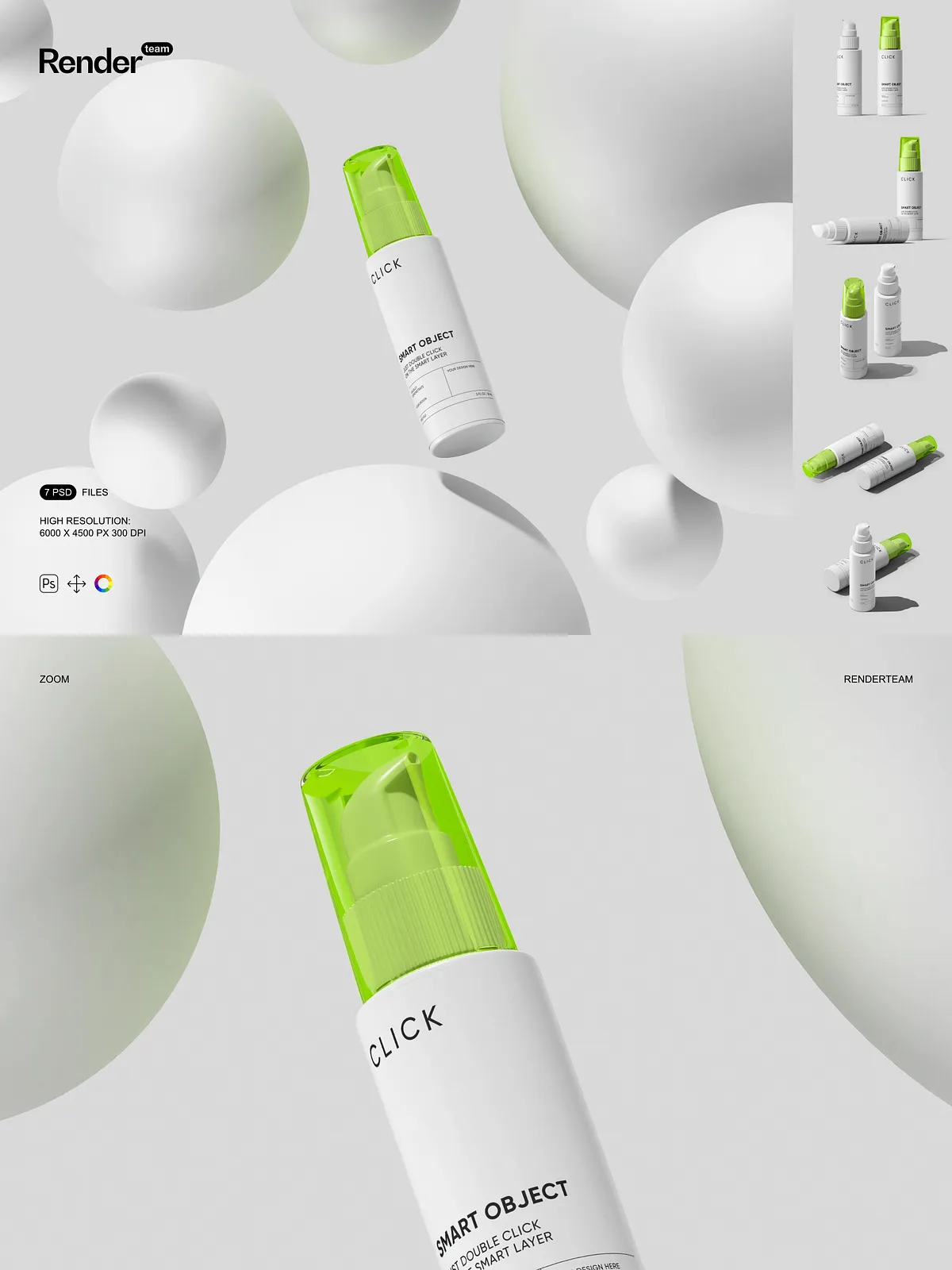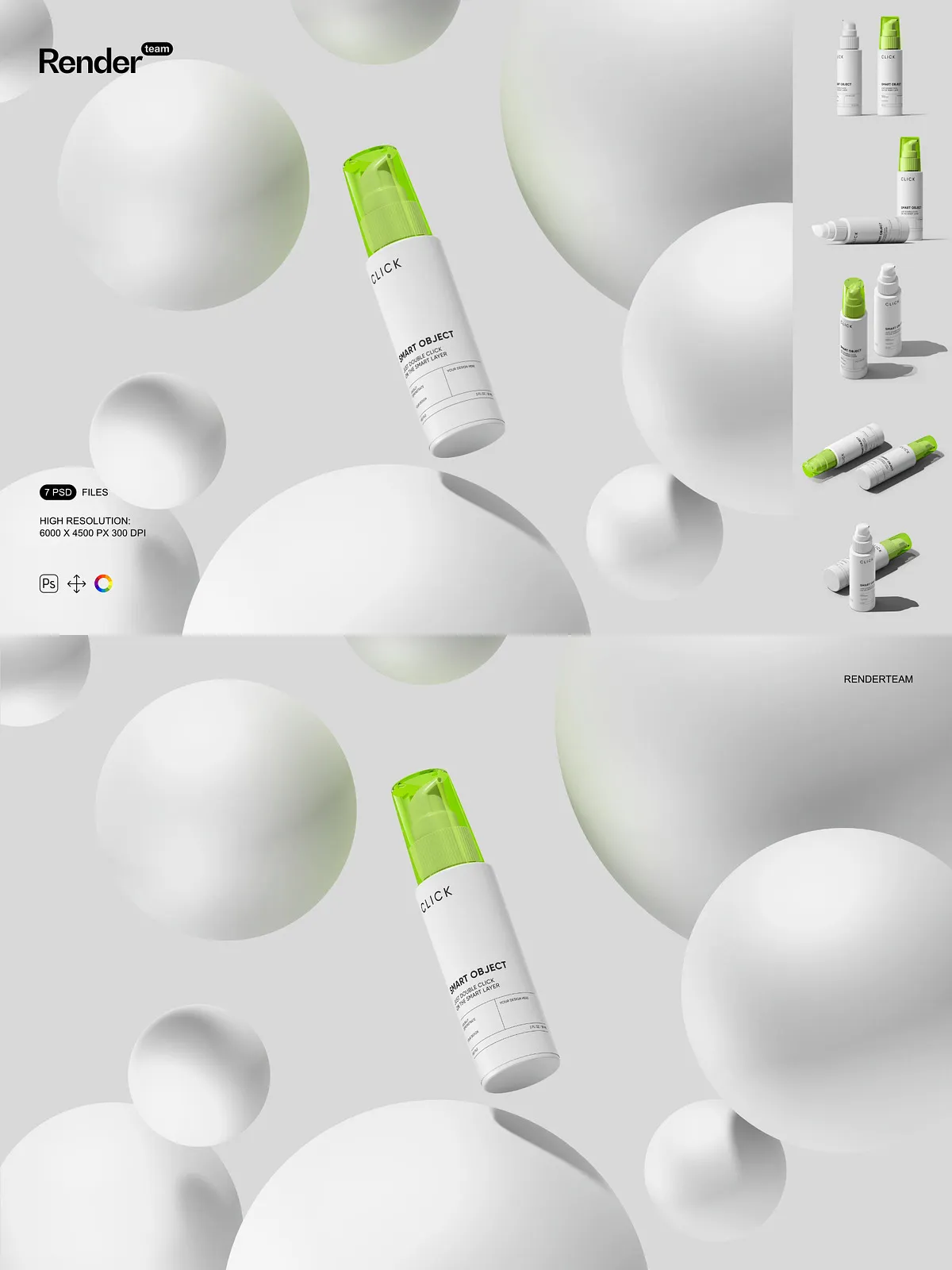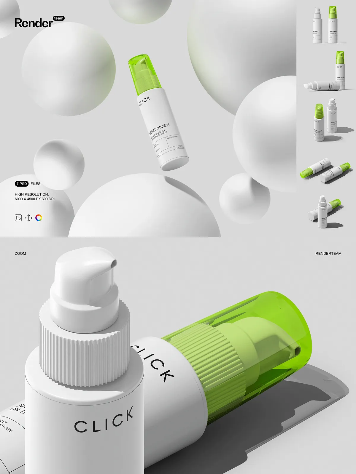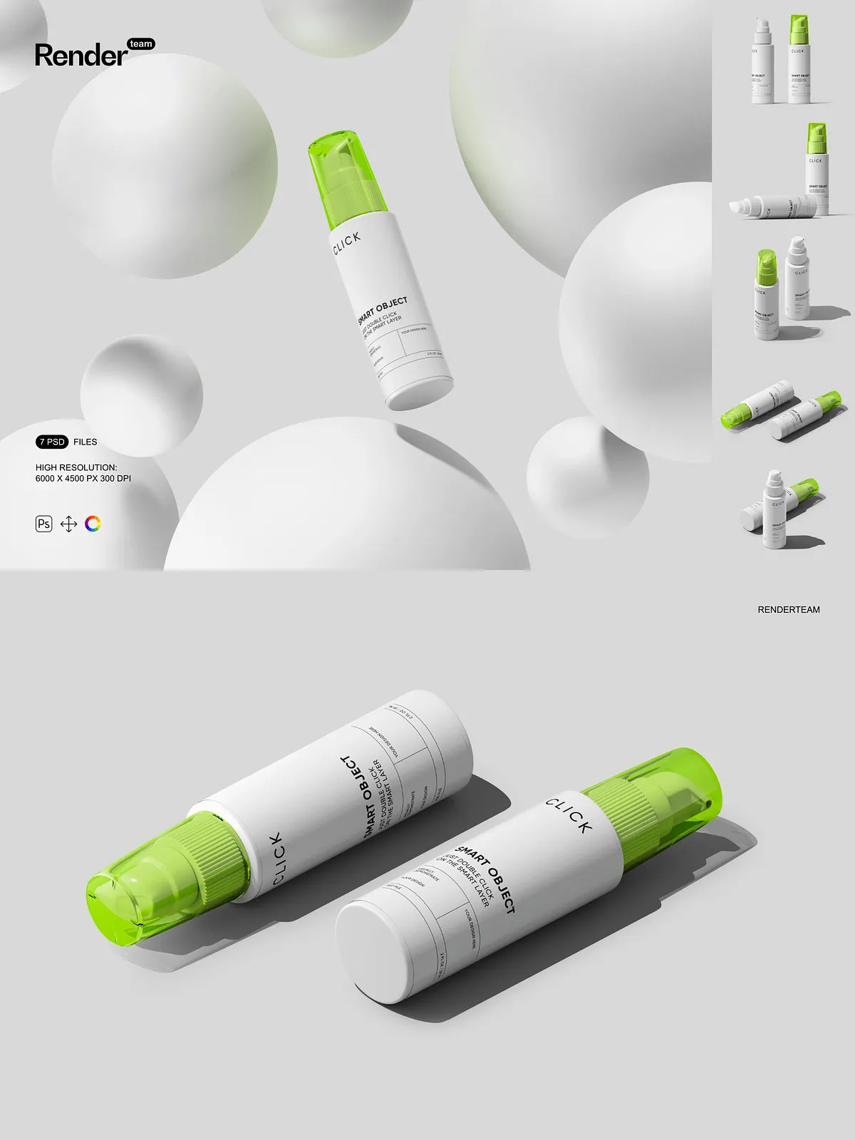 - 7 layered PSD mockup files showing multiple pump bottle angles and presentation styles