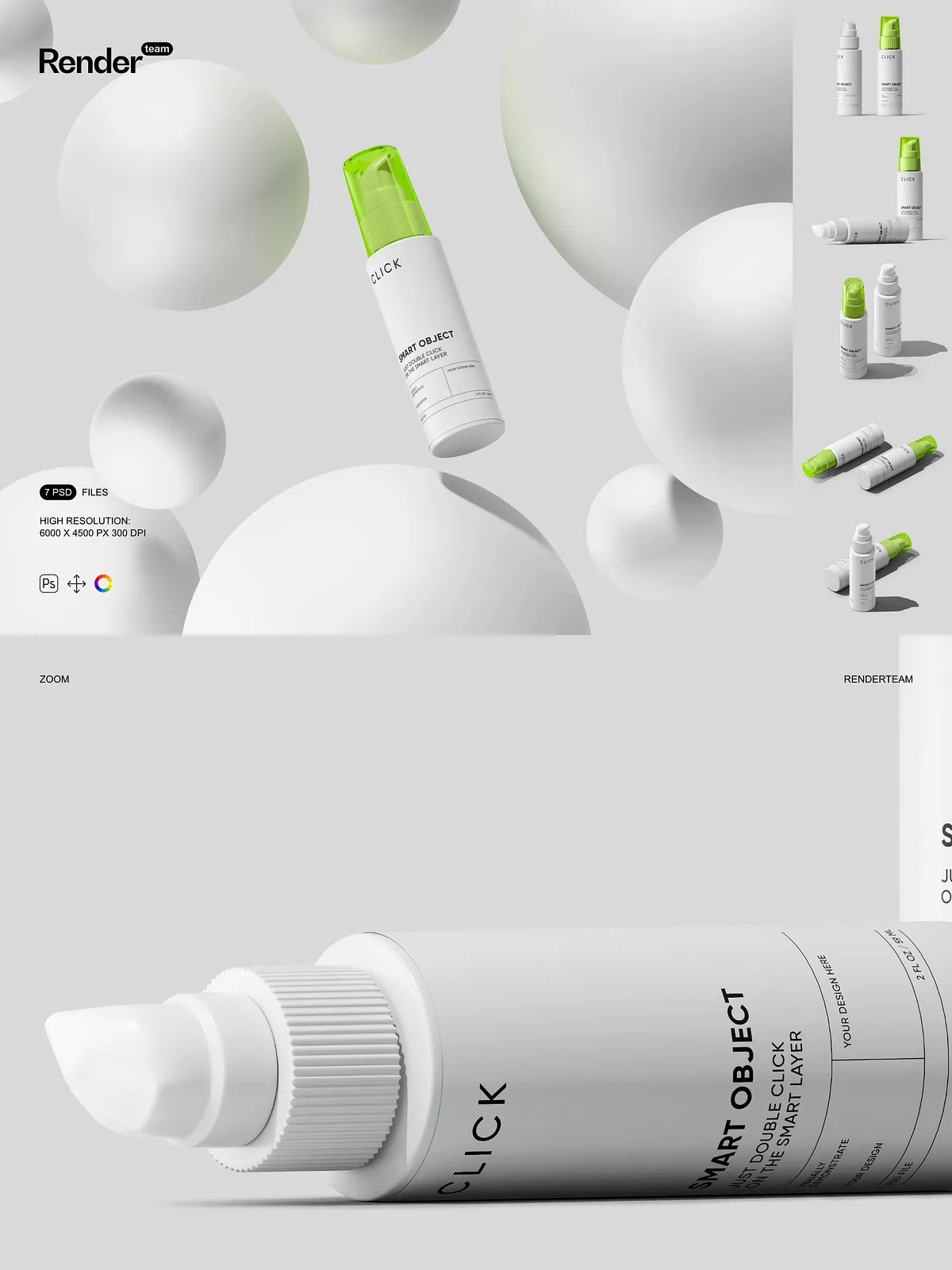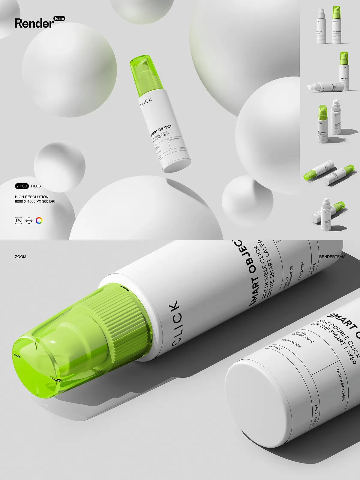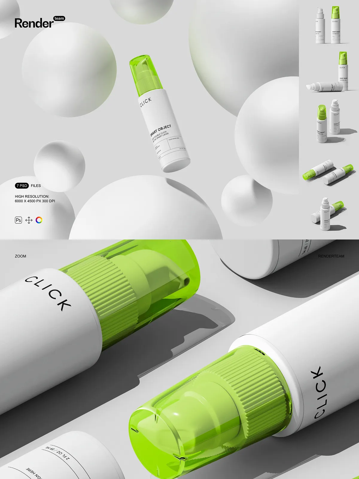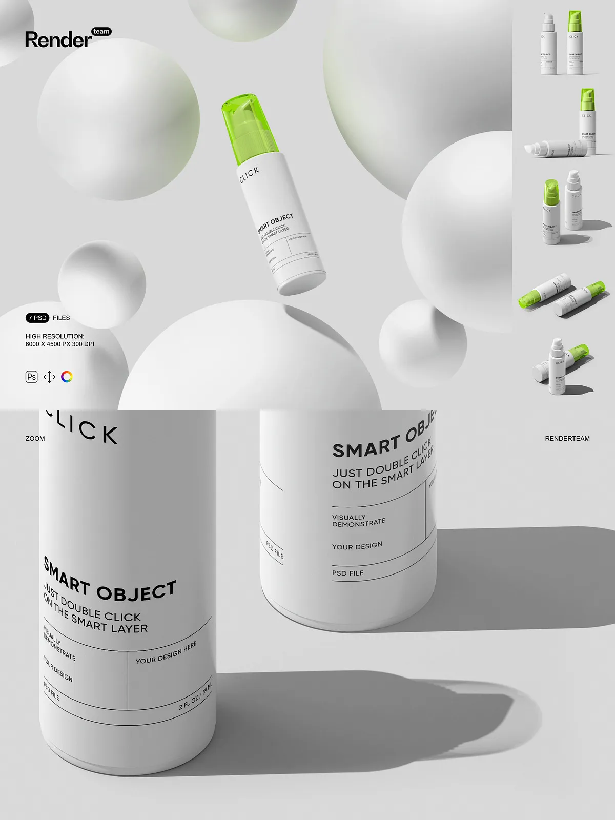 - 7 layered PSD mockup files showing multiple pump bottle angles and presentation styles