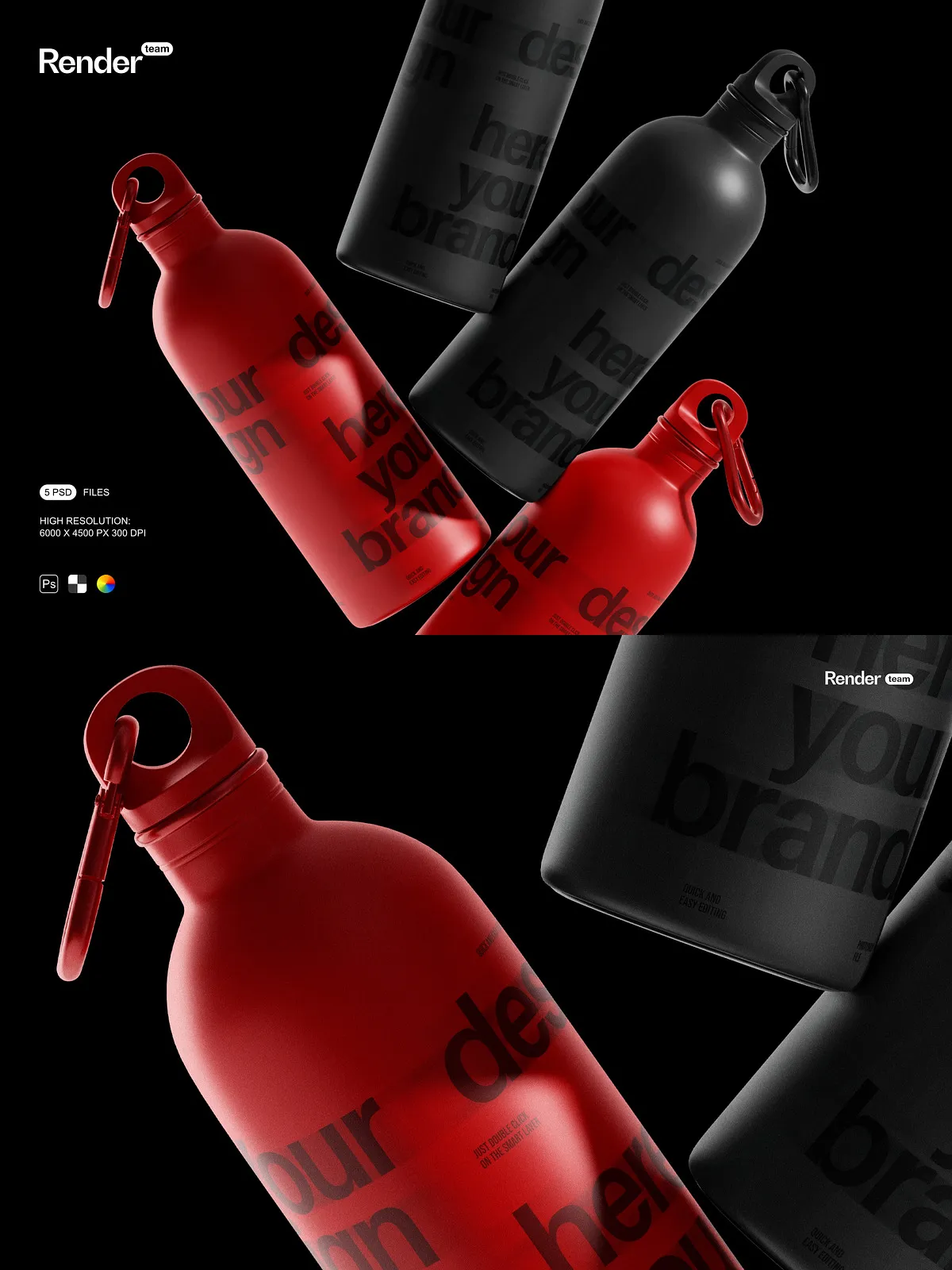 Rendered at 6000 x 4500 pixels and optimized at 300 dpi, these mockups deliver print-ready clarity and screen-filling detail. Micro-textures like rubber grips, matte coatings, condensation droplets, and surface scratches emerge with lifelike precision. From the slight sheen on a high-gloss label to the faint grip marks on a silicone strap, every element reinforces authenticity. Ideal for campaign materials, e-commerce product pages, social media ads, influencer partnerships, and portfolio presentations, these visuals command attention and build trust.