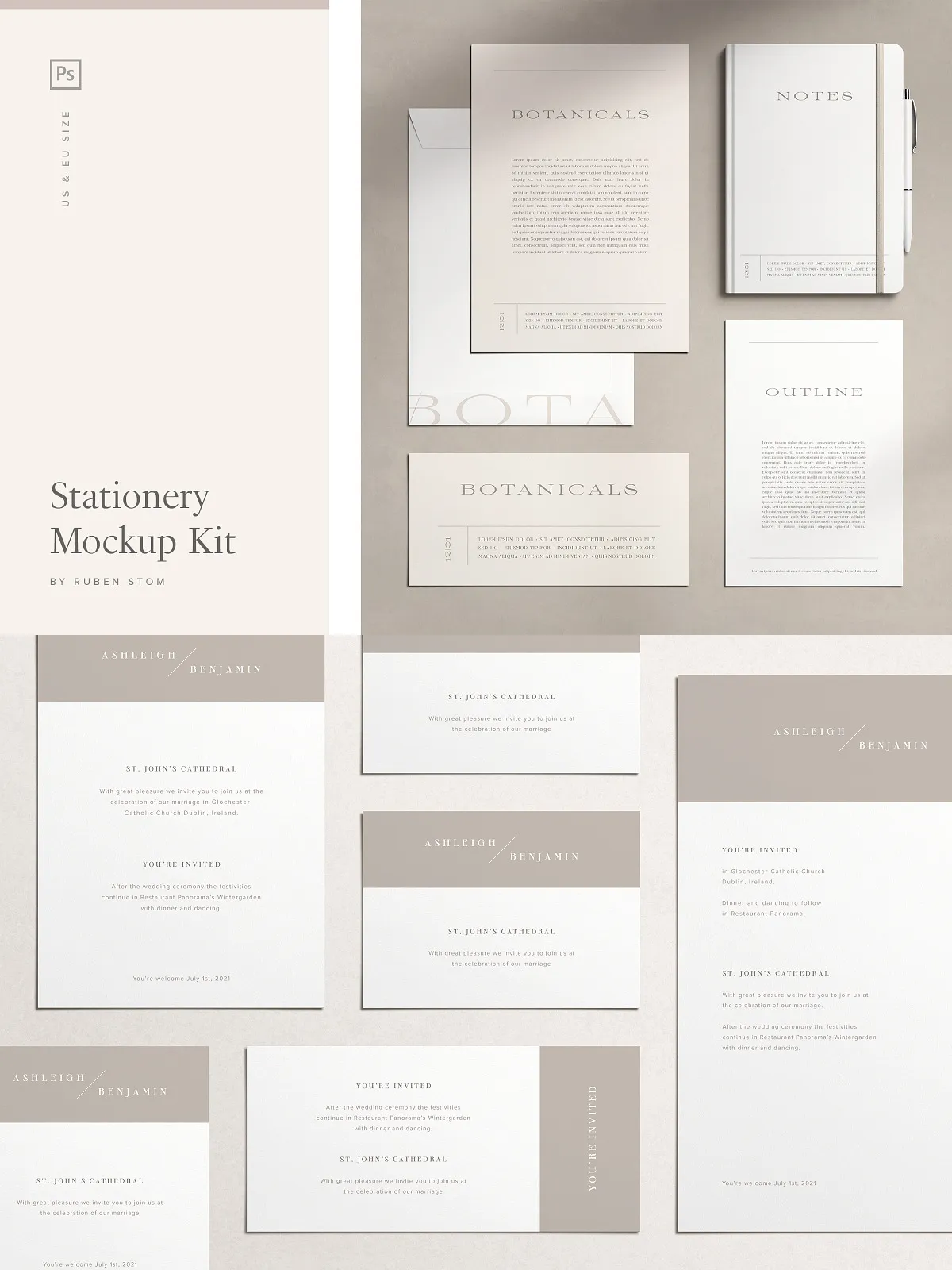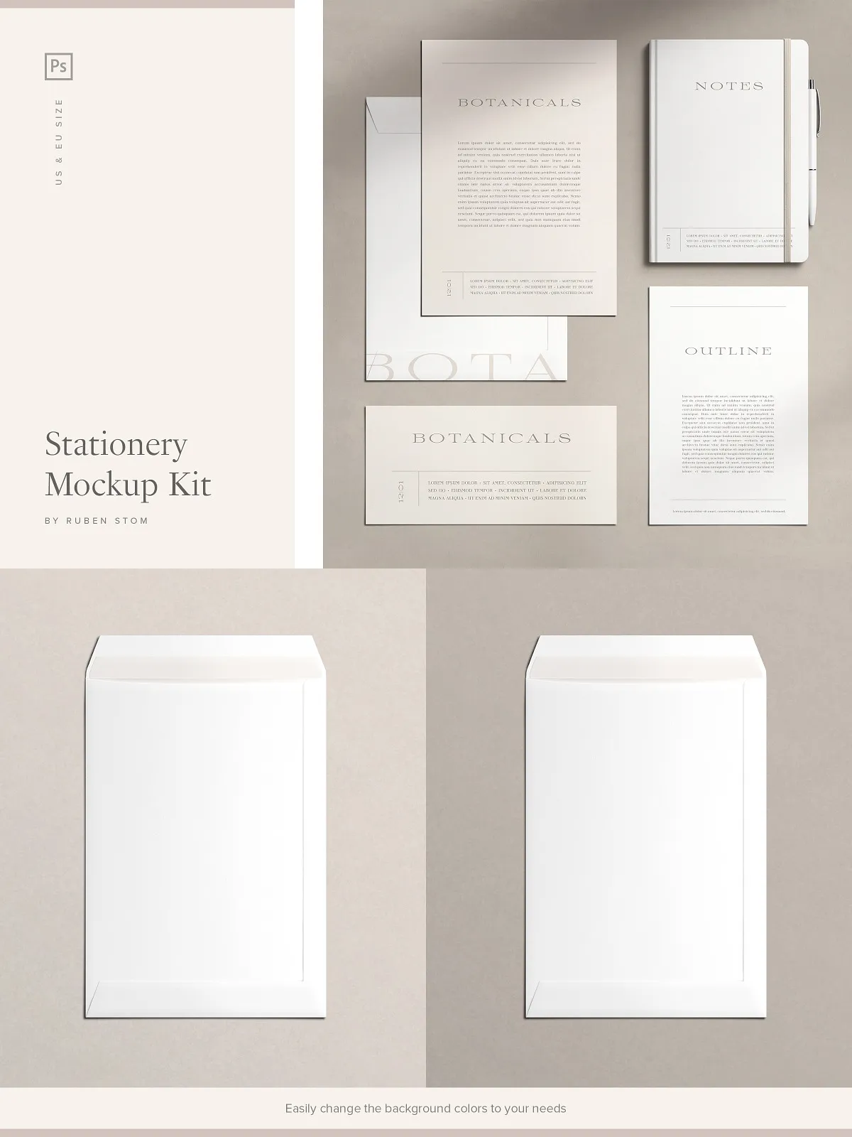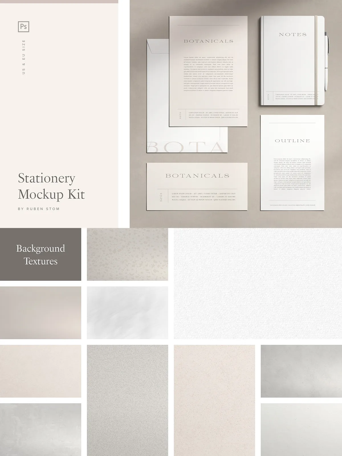 Anchor your stationery in a believable environment with 10 handcrafted, high-fidelity background textures that enhance realism and versatility. Choose from: