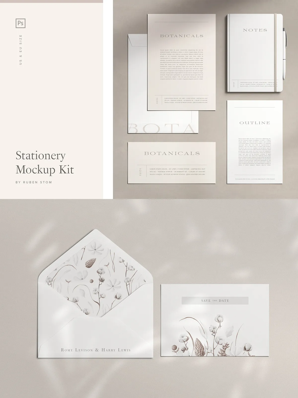 - Envelope & Note Card Pairings – Show off packaging and correspondence design with lifelike positioning.