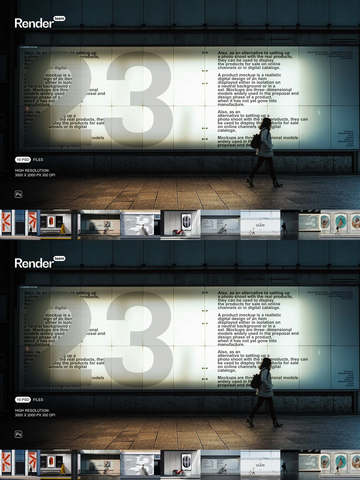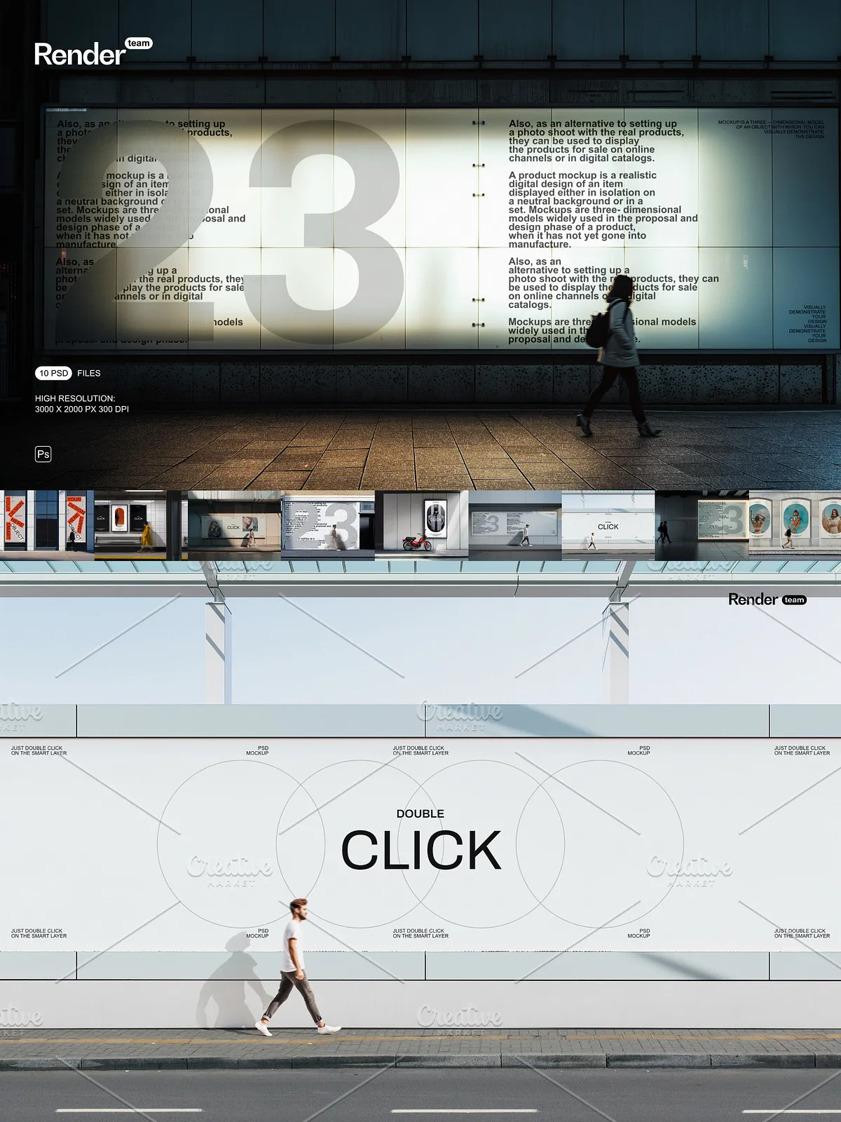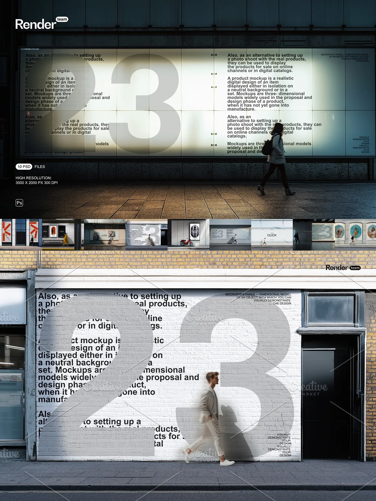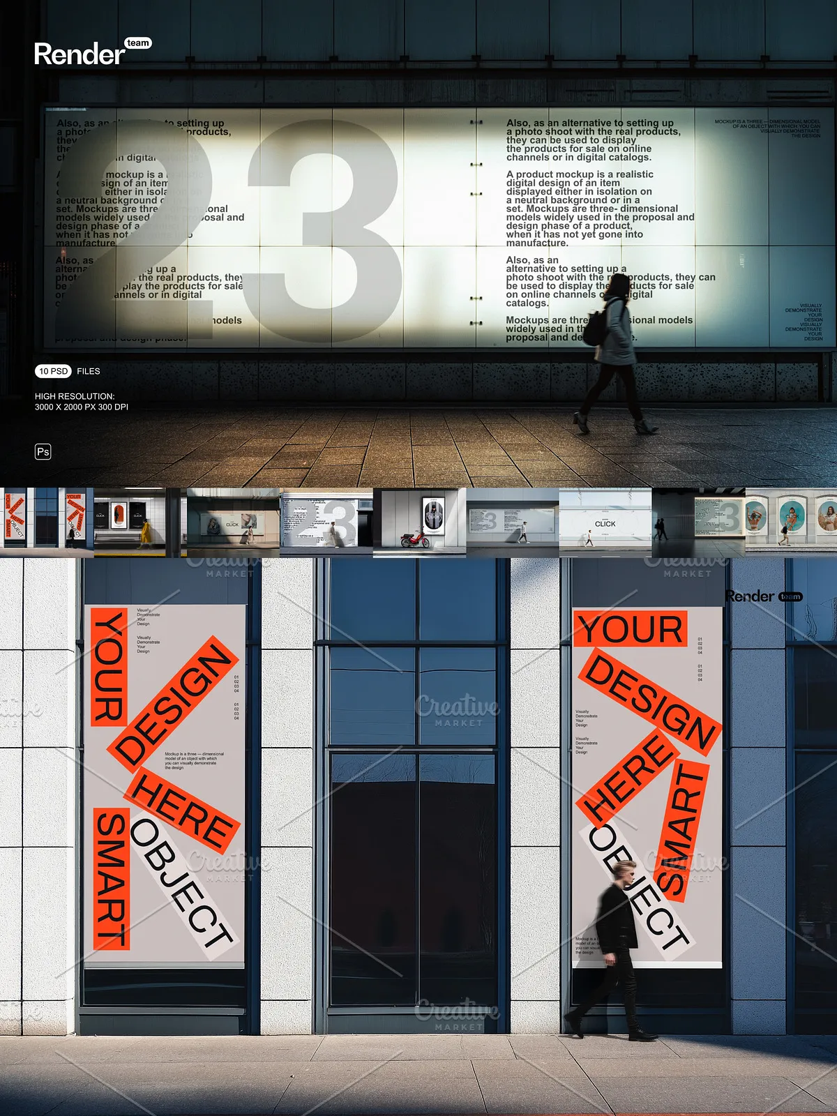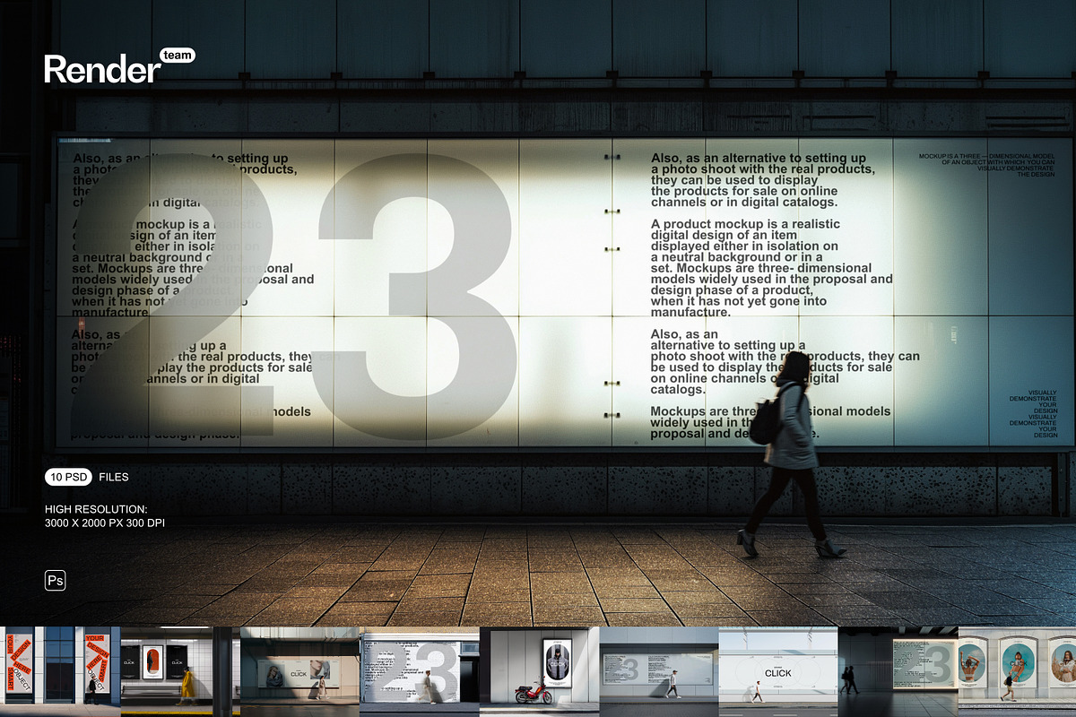 - 10 fully layered PSD mockup files designed for diverse urban contexts