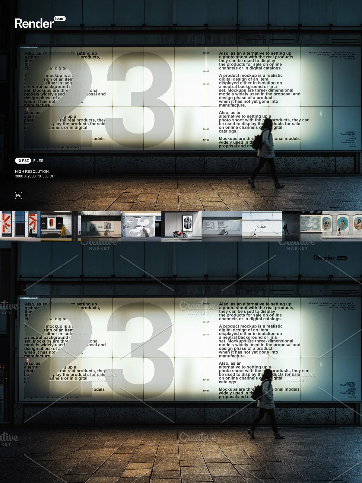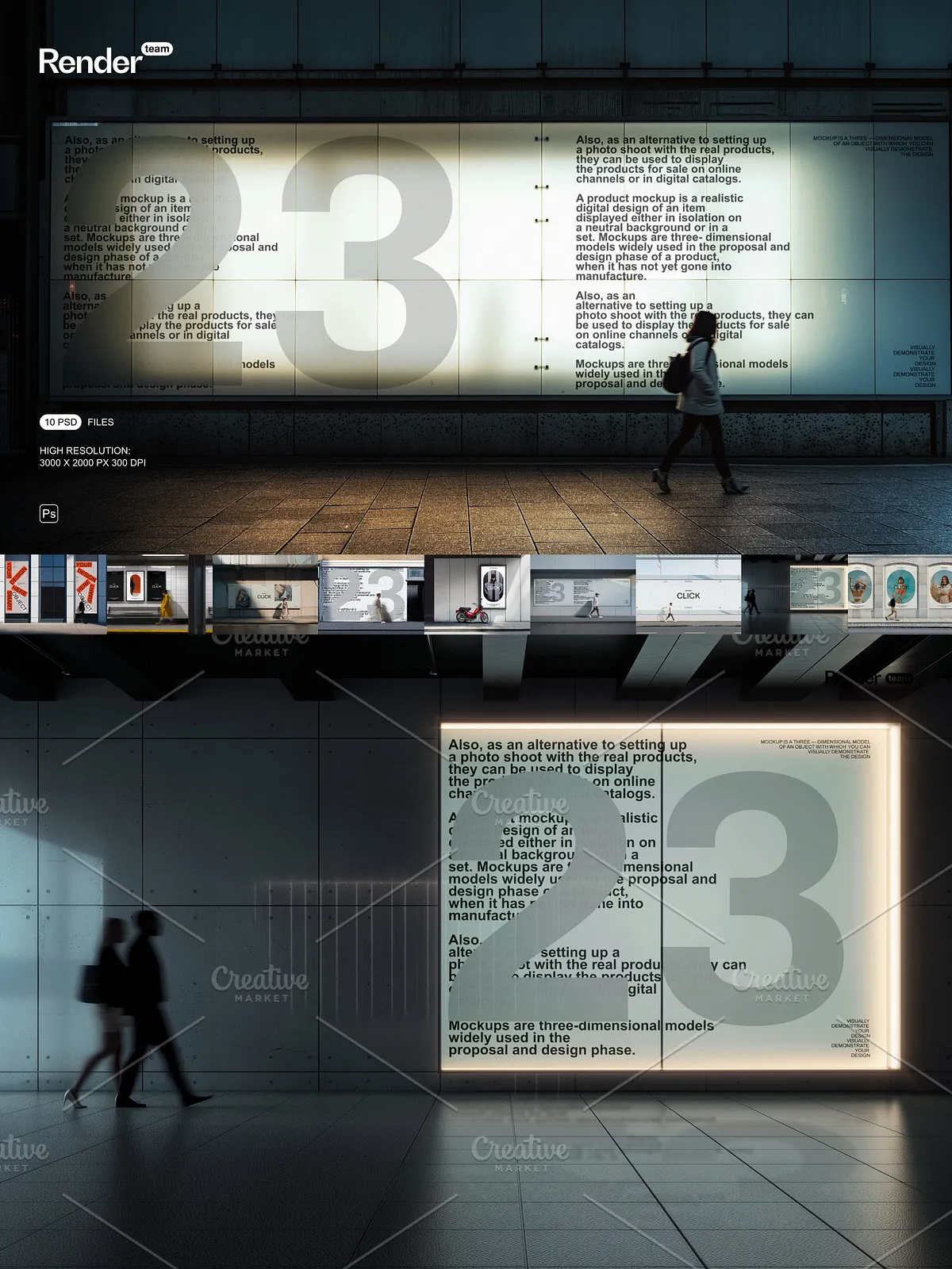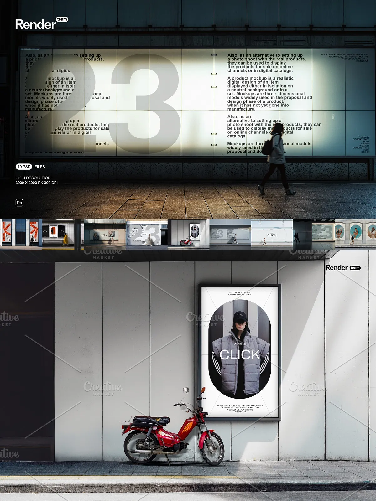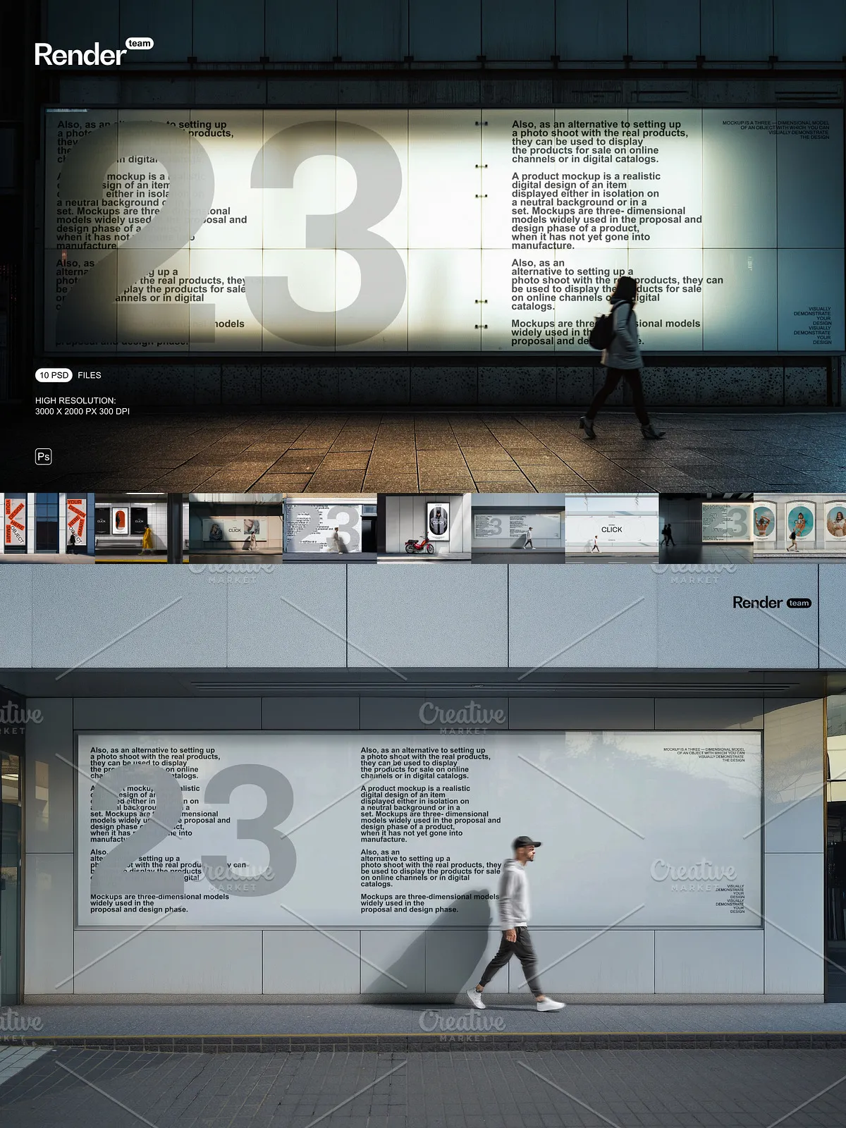 - 10 fully layered PSD mockup files designed for diverse urban contexts